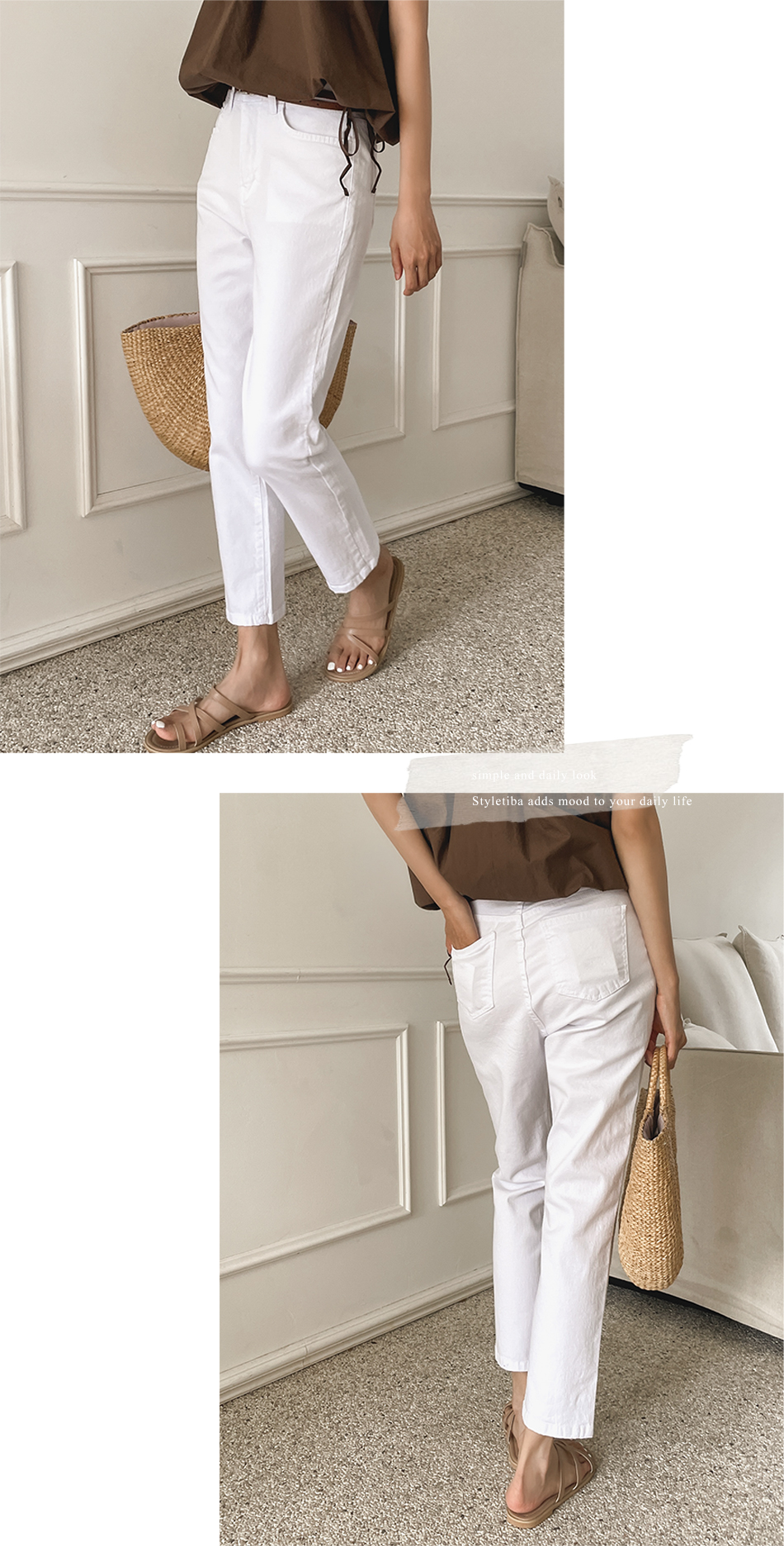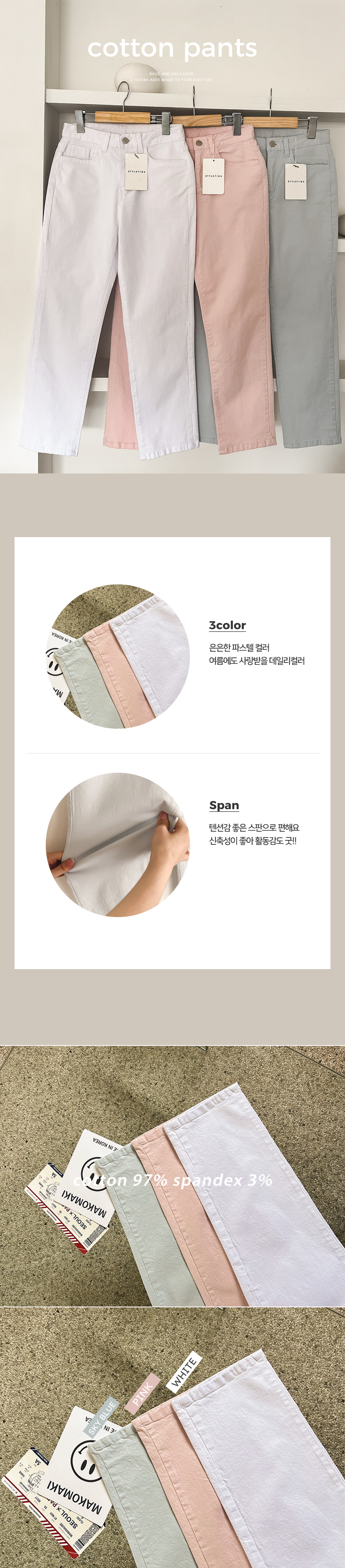 폴드 스판 크롭코튼팬츠_S,M,L,XL-3color, 산뜻 프레쉬한 무드-경쾌한 크롭 스판면팬츠-텐션감 좋은 스판으로 편해요 - 스타일티바