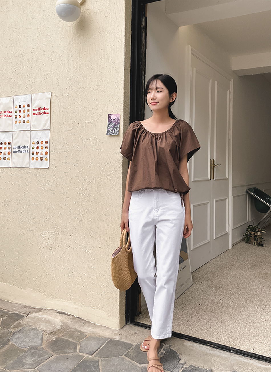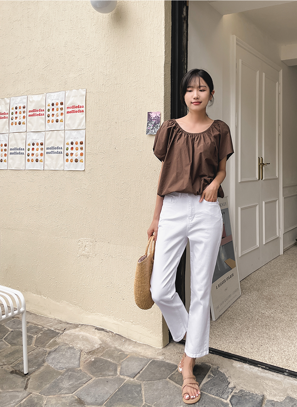 #폴드 스판 크롭코튼팬츠