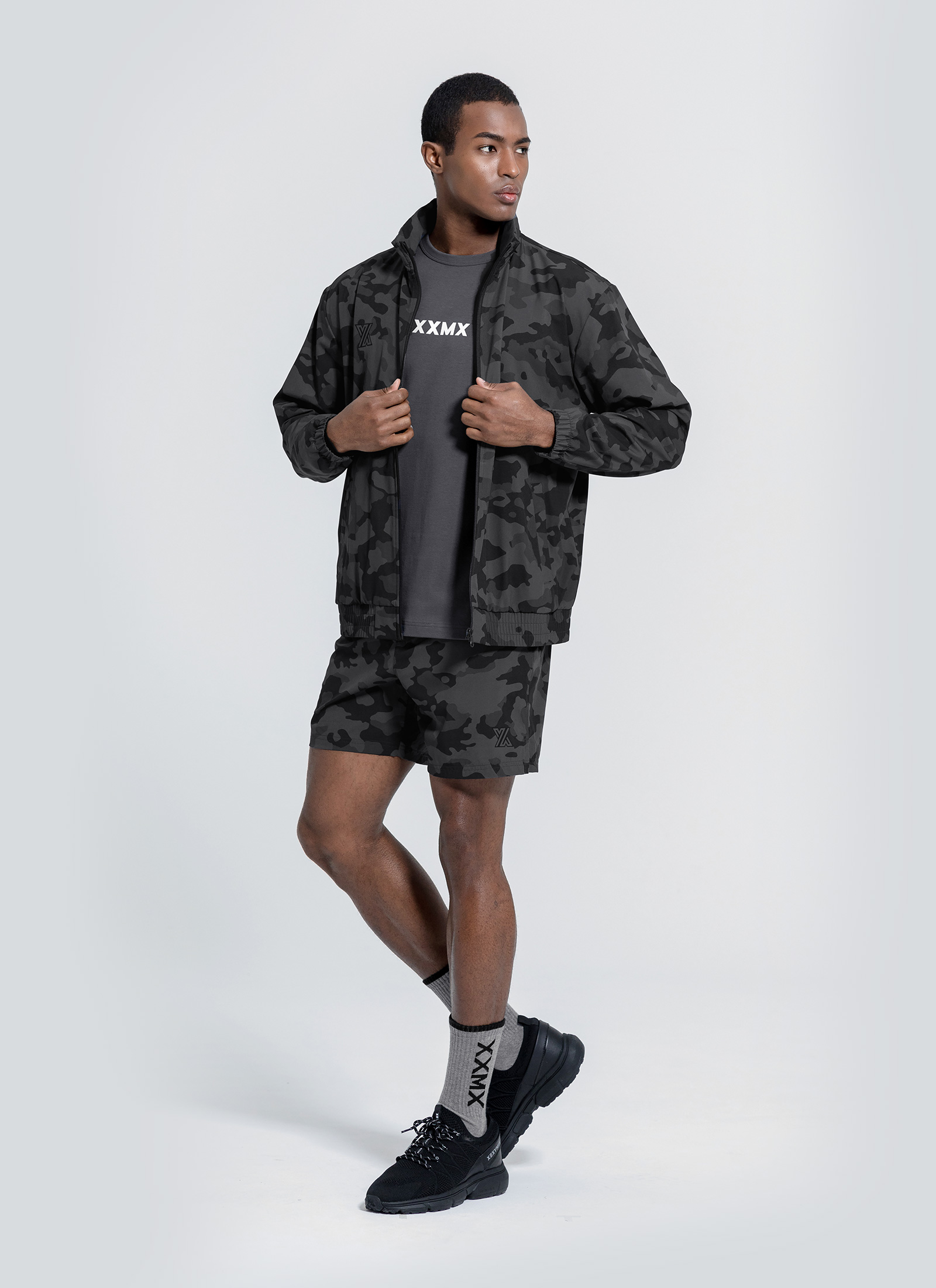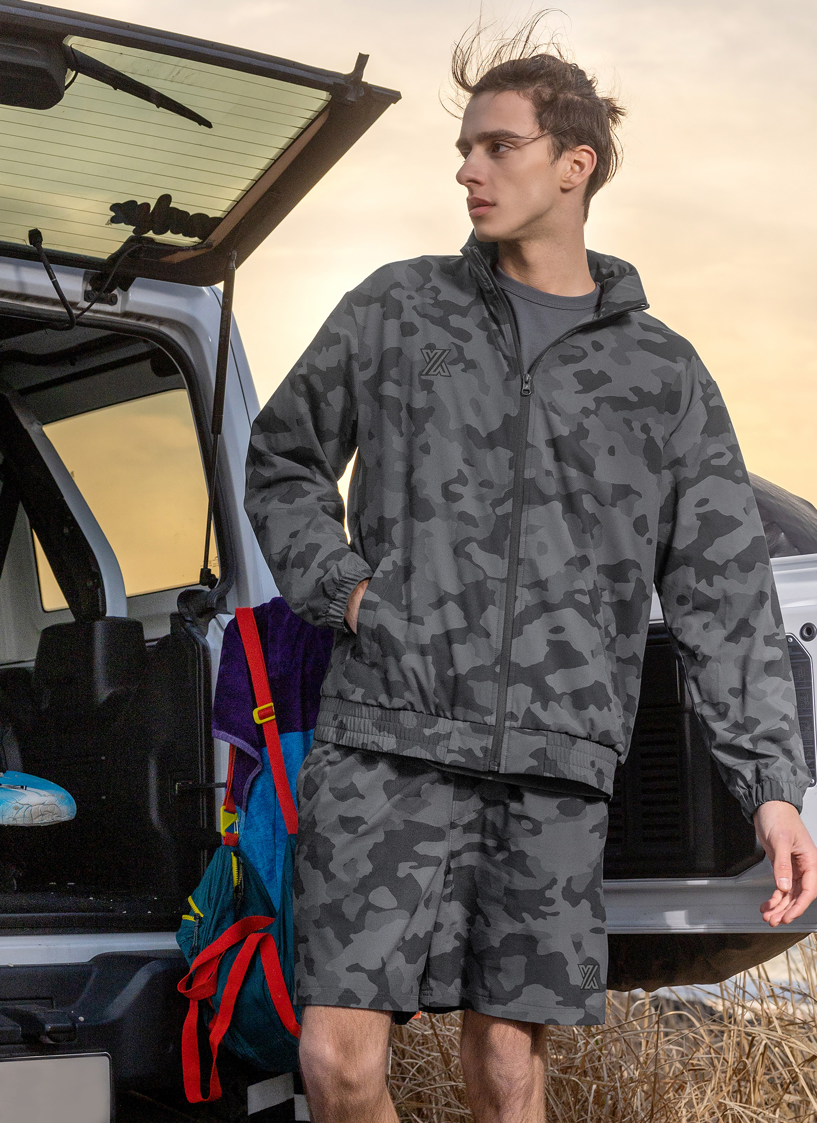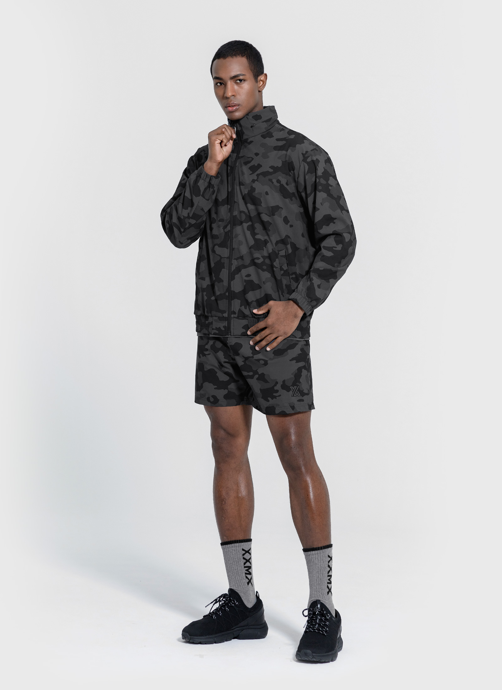톤온톤 배색의 카모 패턴을 올 오버 프린트로 넣어