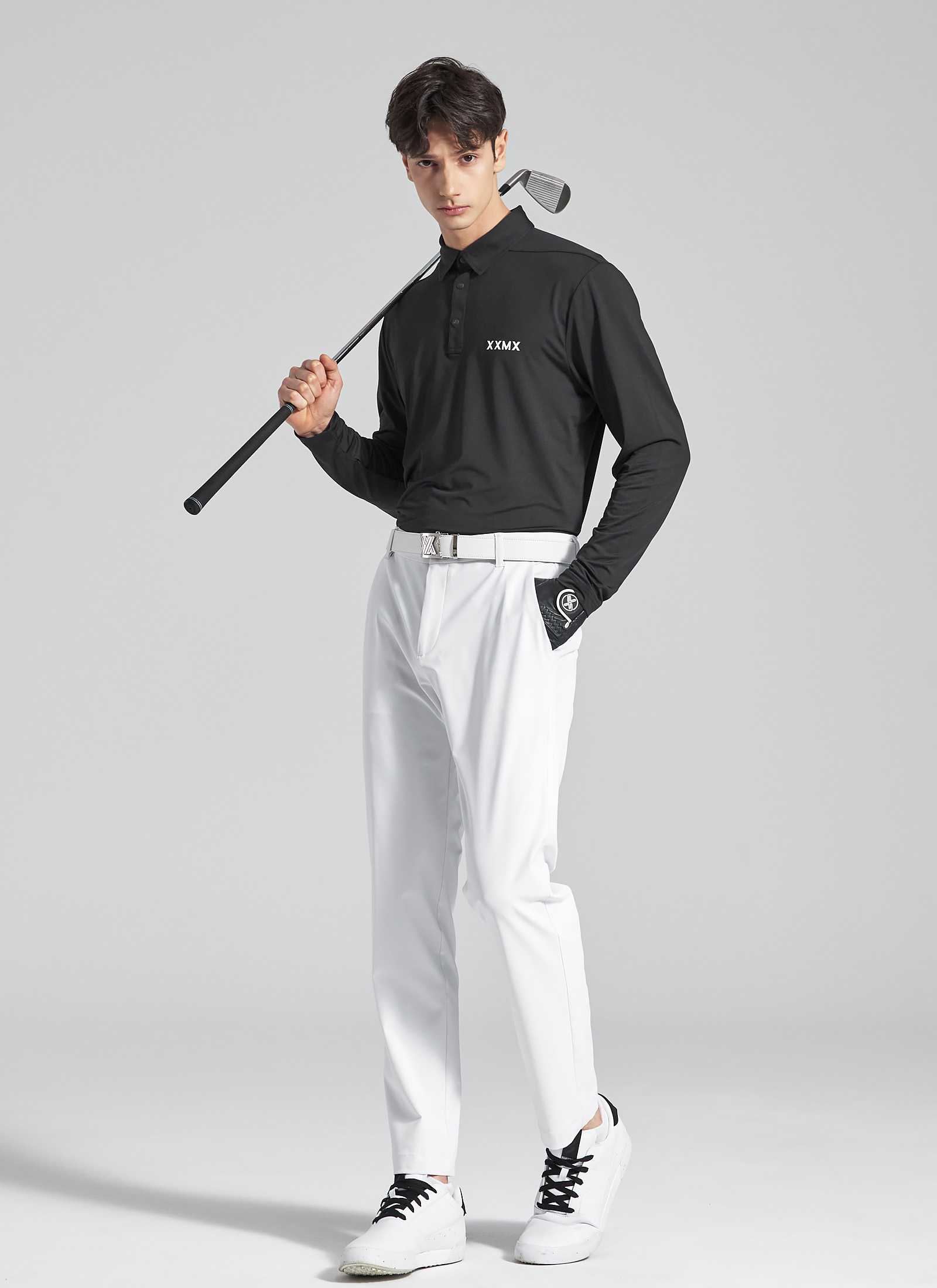 앞 여밈에 XXMX GOLF 레터링이 각인된 스냅 버튼을 사용하여