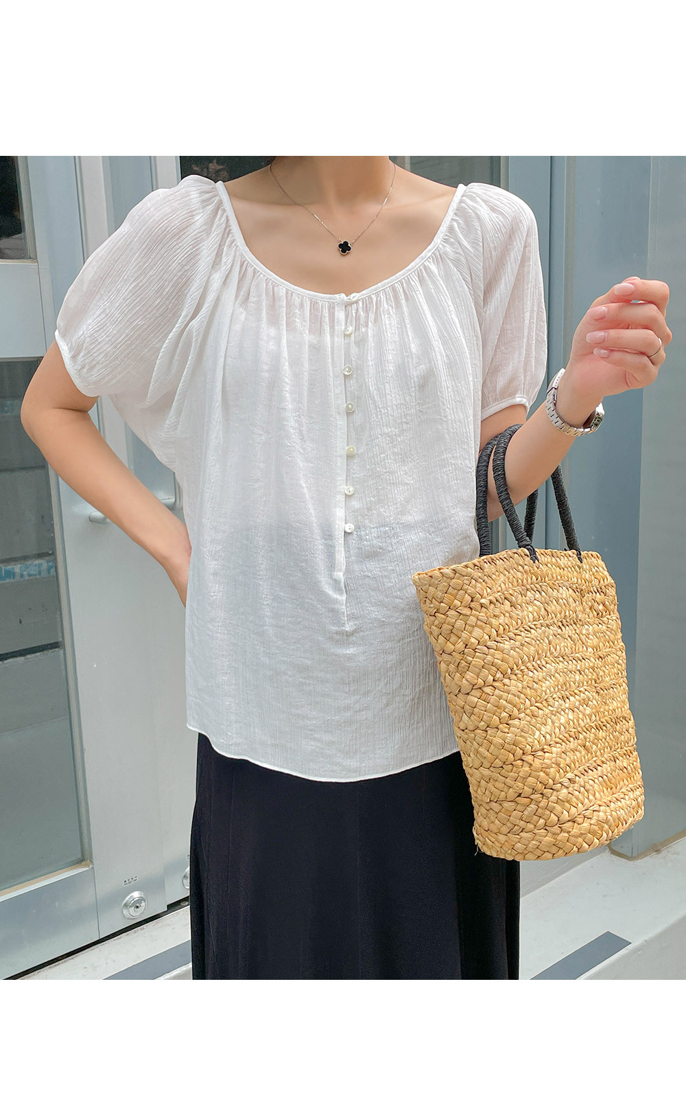 셔링이 잡혀 입체감 있게 포인트를 주면서