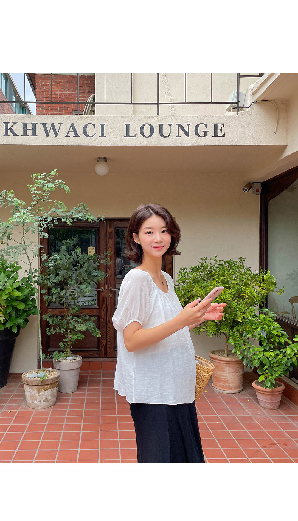 U넥 라인으로 목선과 쇄골라인을 은은하게 드러내