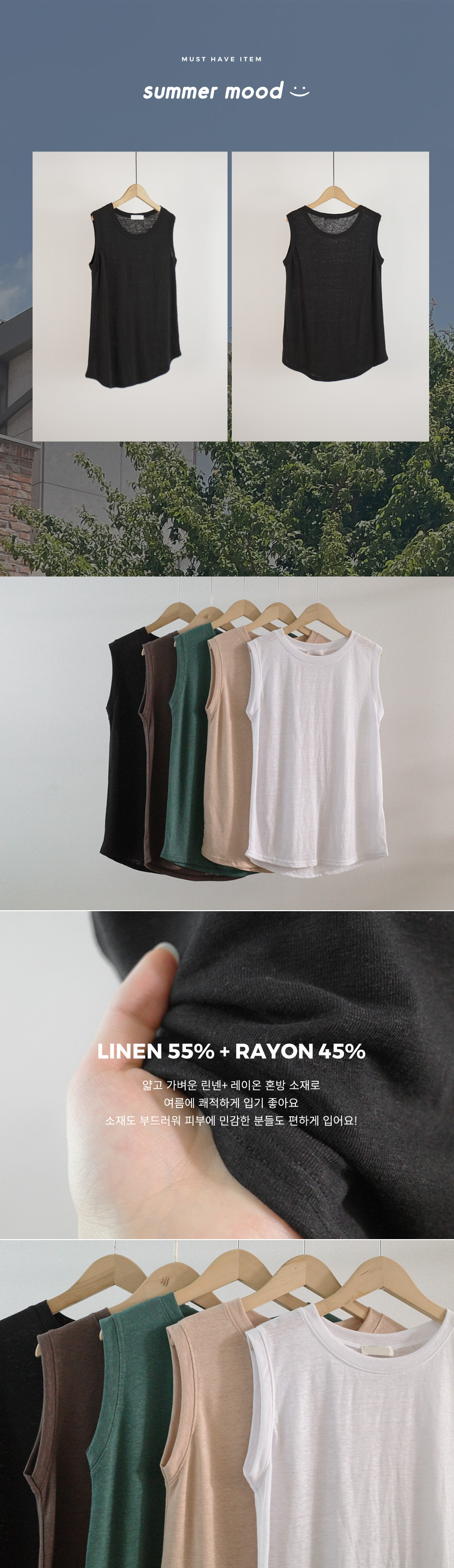 벨리아 린넨나시티-5color, 데일리 린넨나시-편한 어깨선으로 데일리하게 - 스타일티바