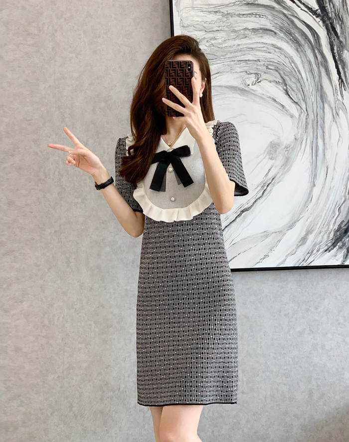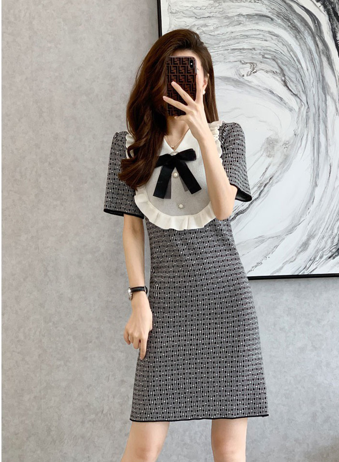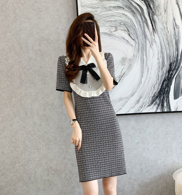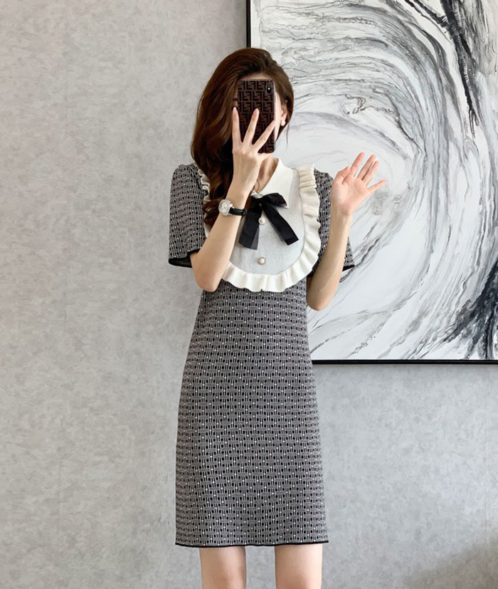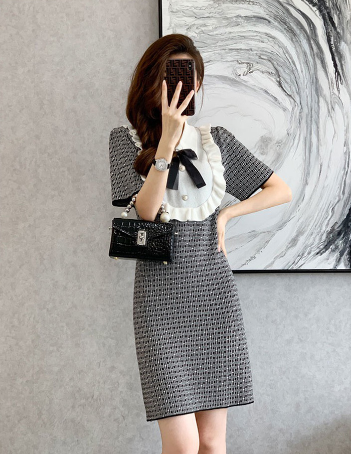 엘리사 프릴 리본 여름니트 원피스