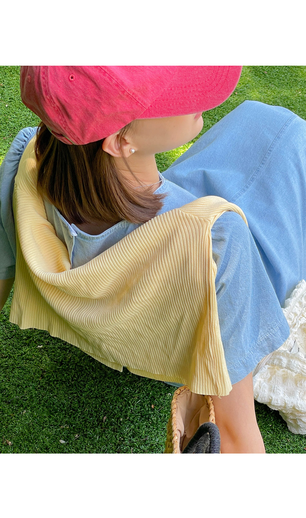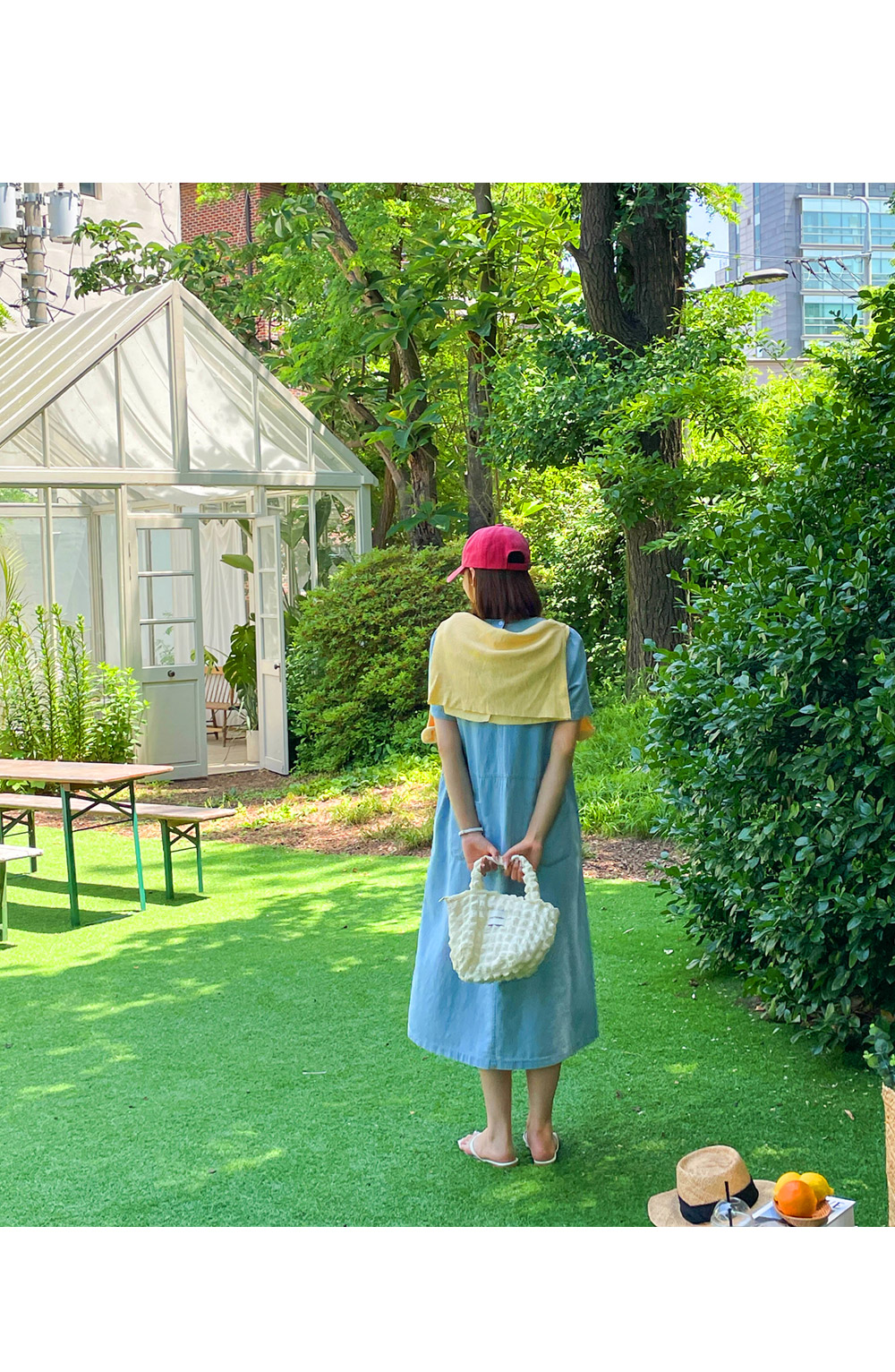 어깨라인에 셔링이 잡혀 발랄한 분위기를 선사해드리며