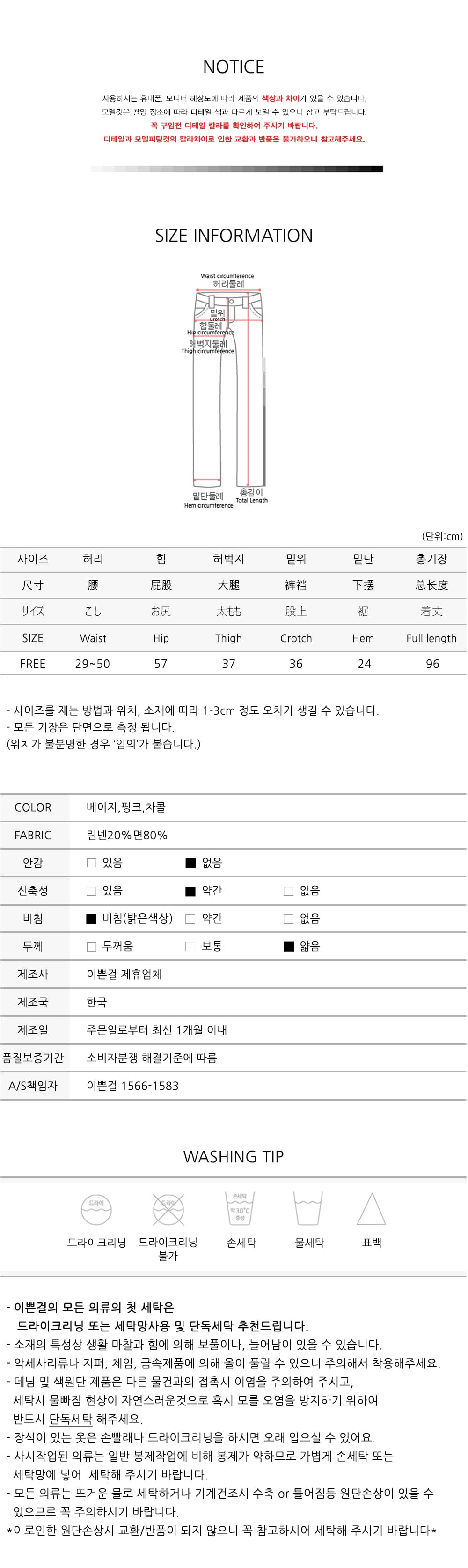 사이즈는 FREE로 44~77까지 준비되어 있습니다