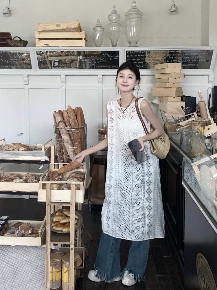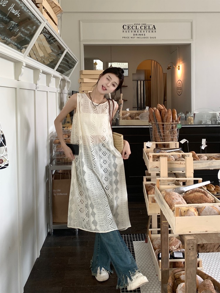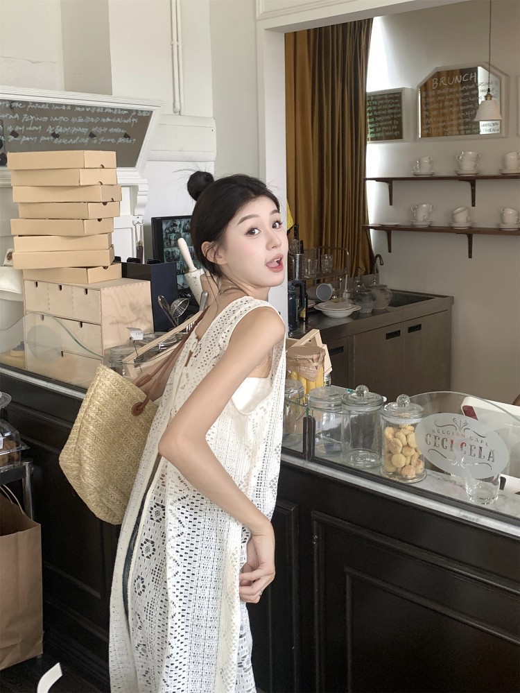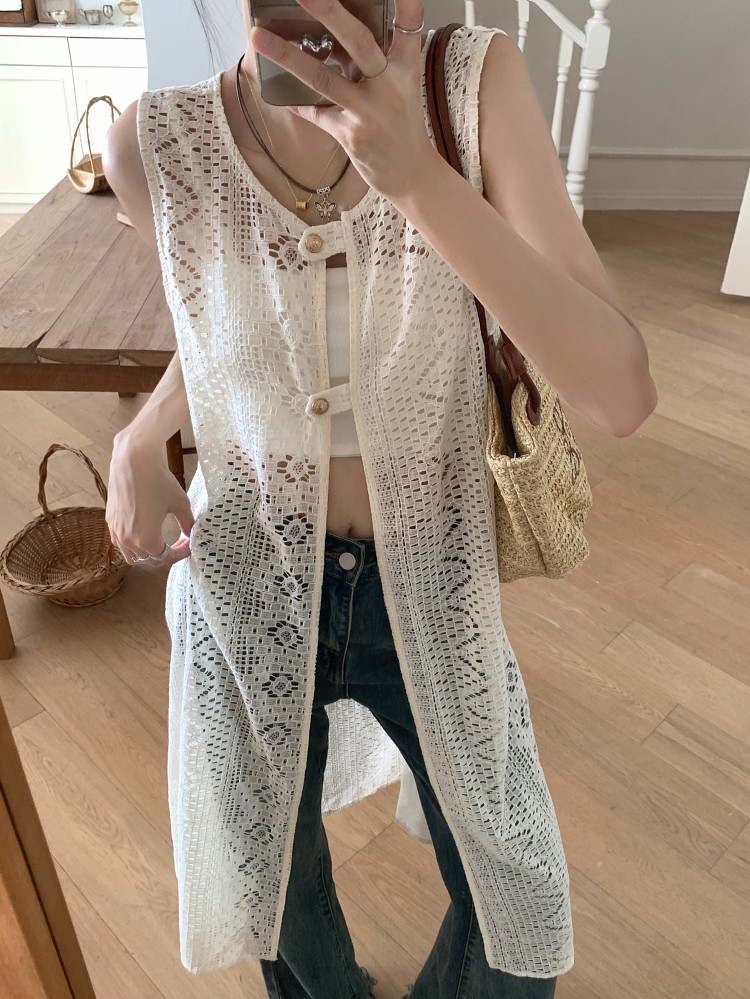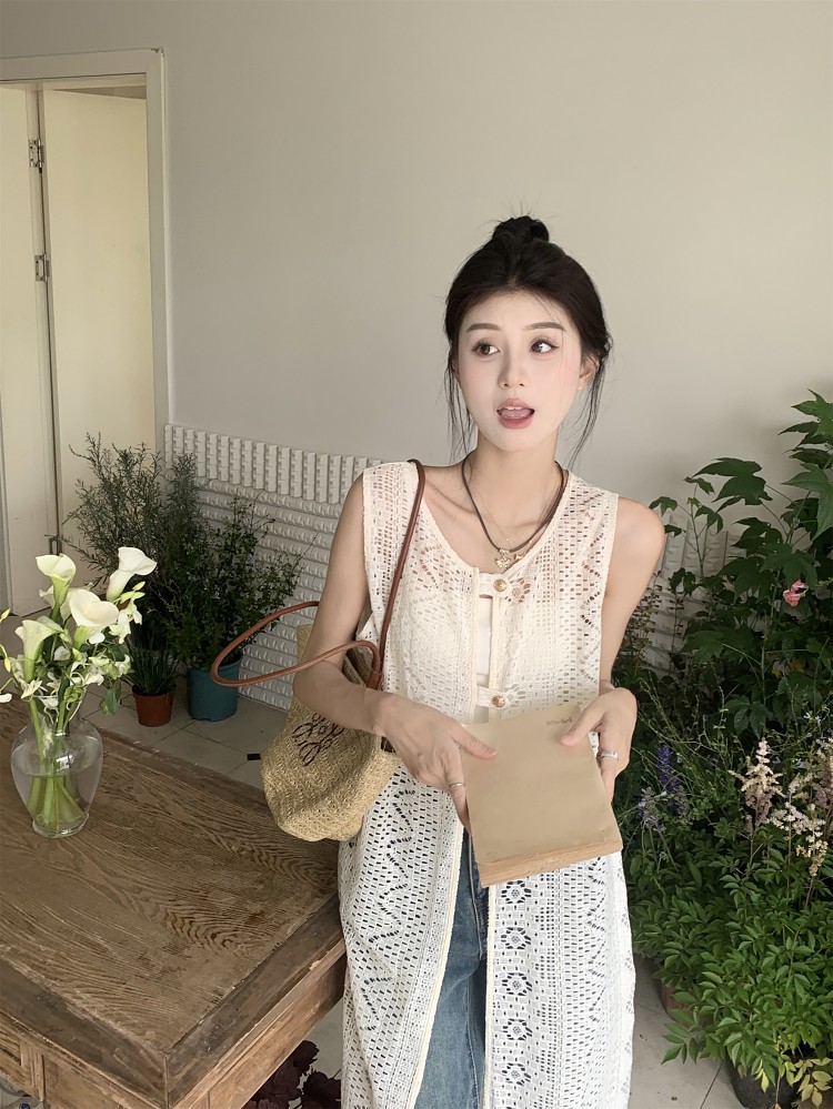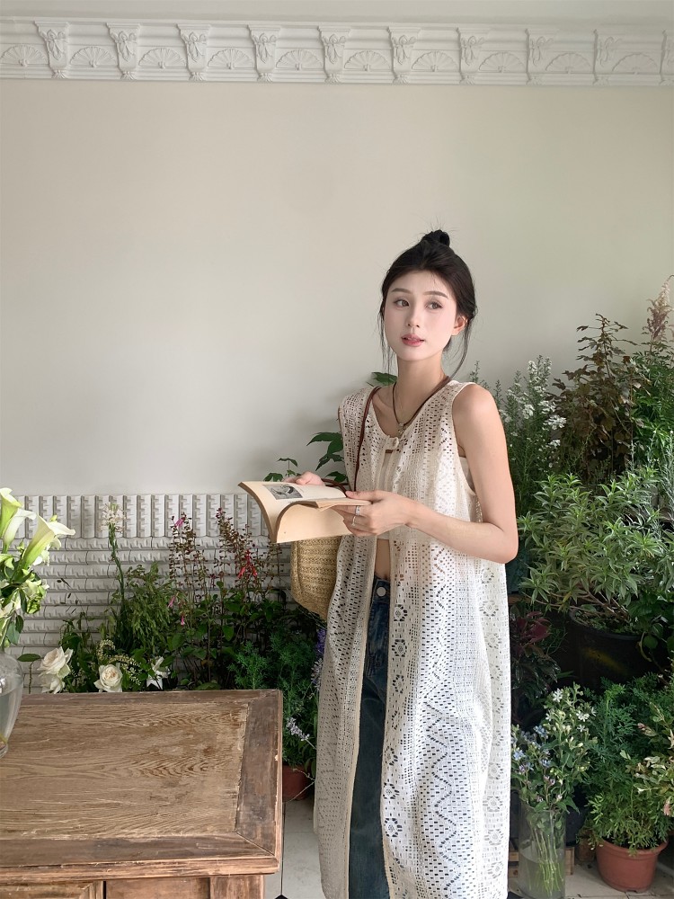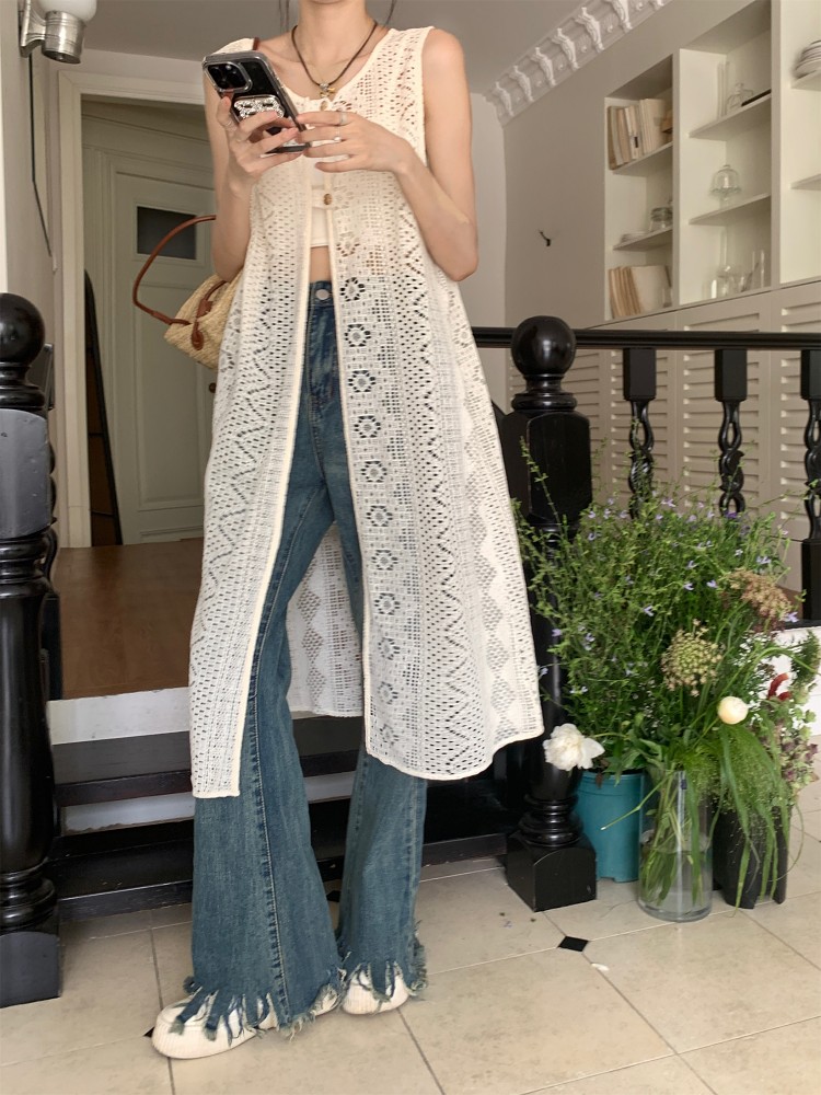 손뜨개 롱 조끼.
