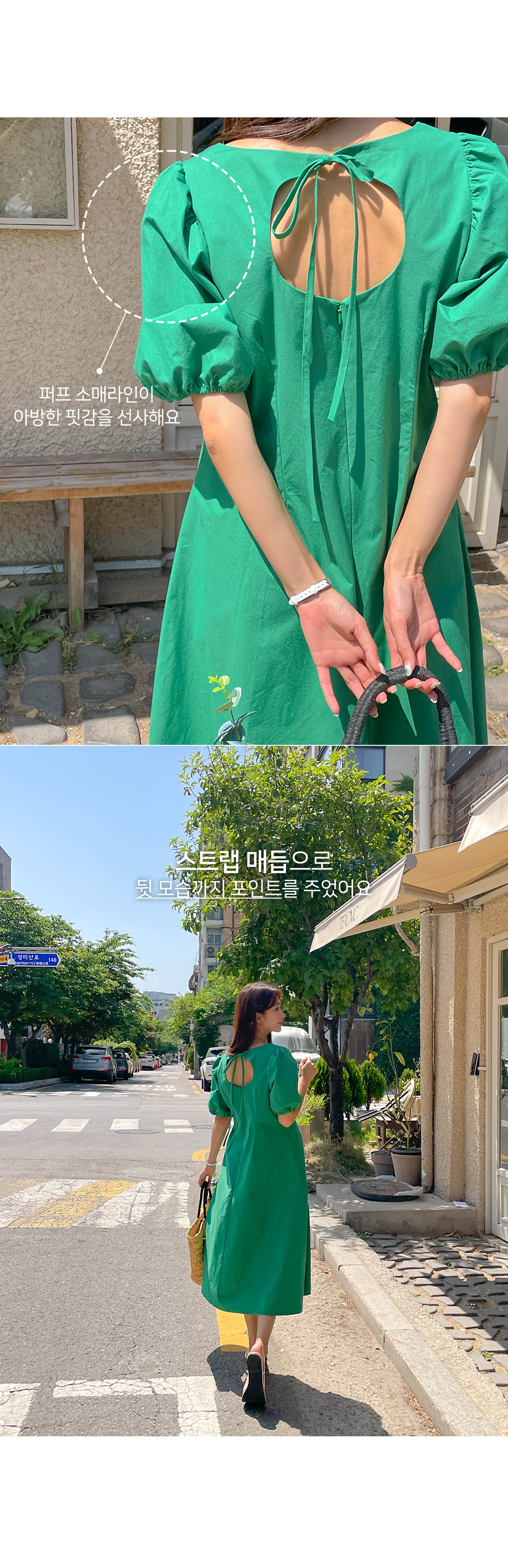 아방한 핏감을 자랑하는 퍼프 소매라인으로