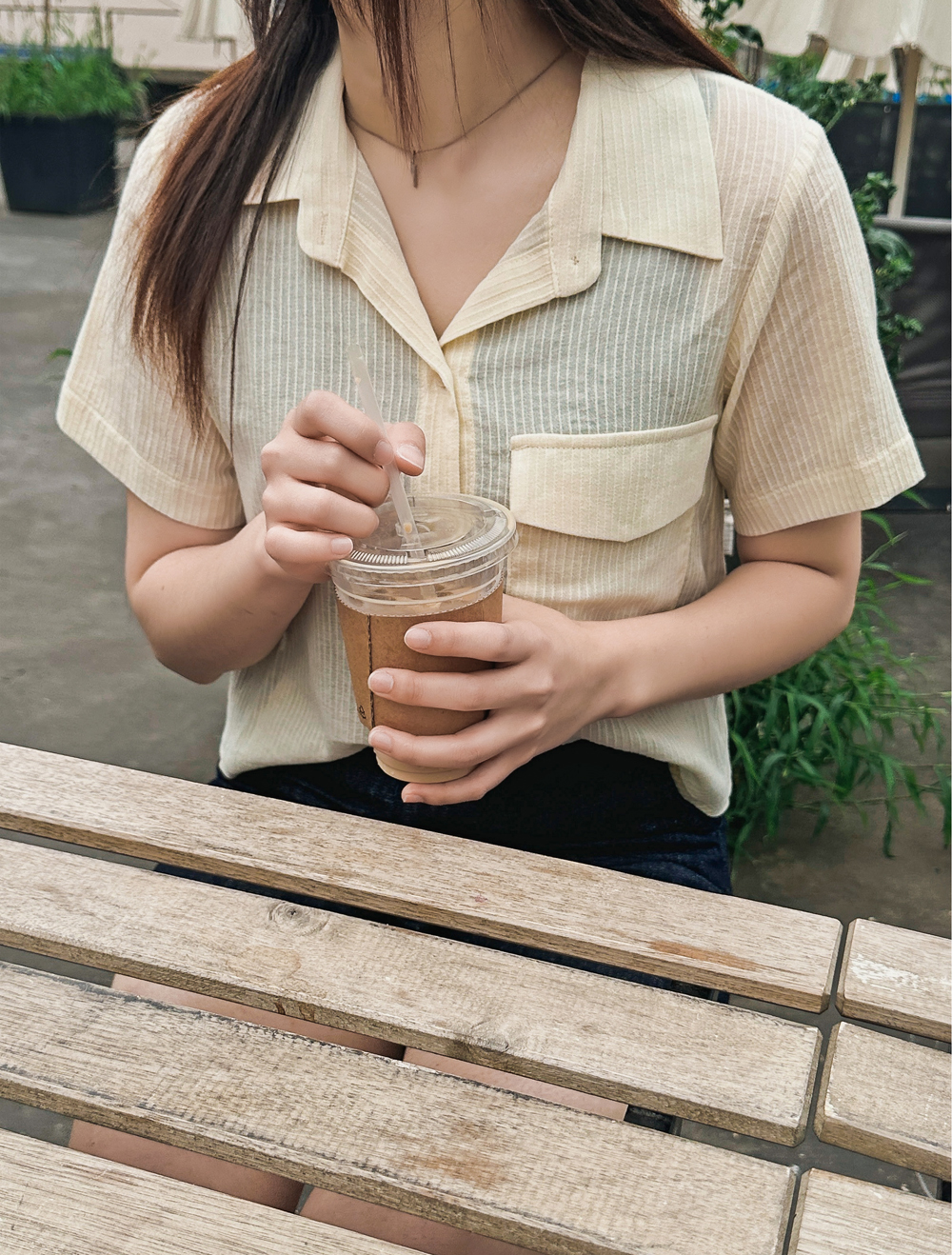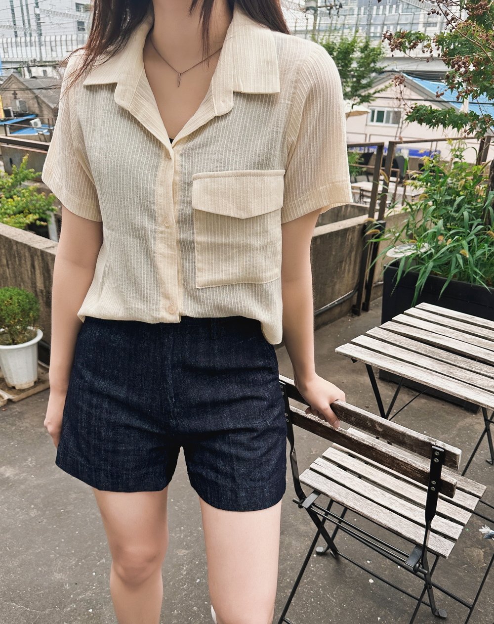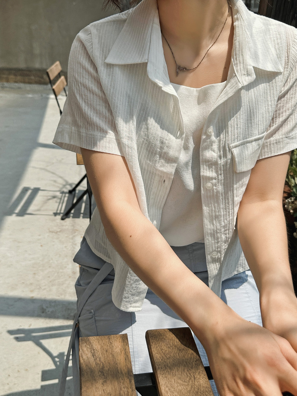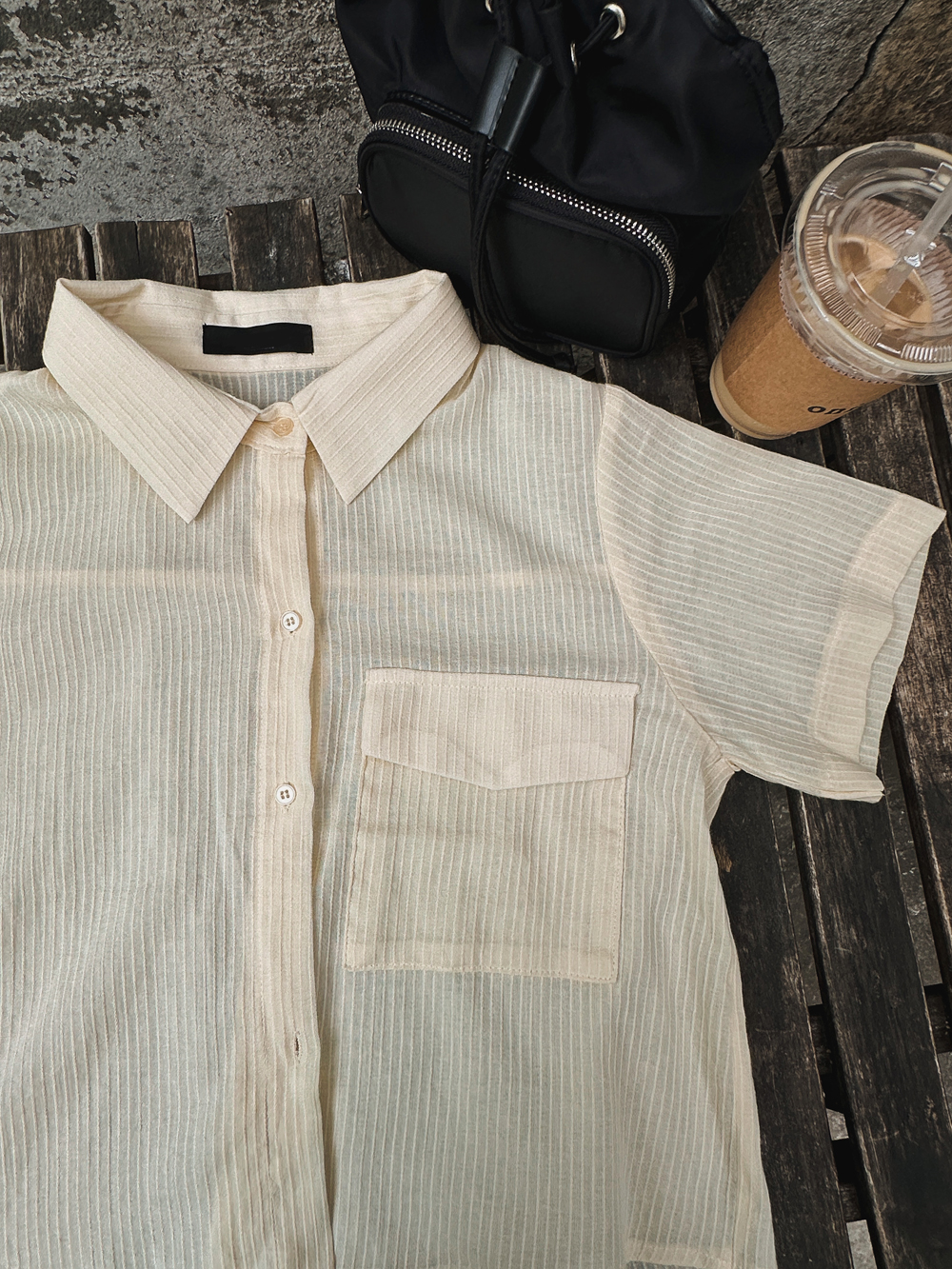 #엔젤 스트라이프 반팔블라우스