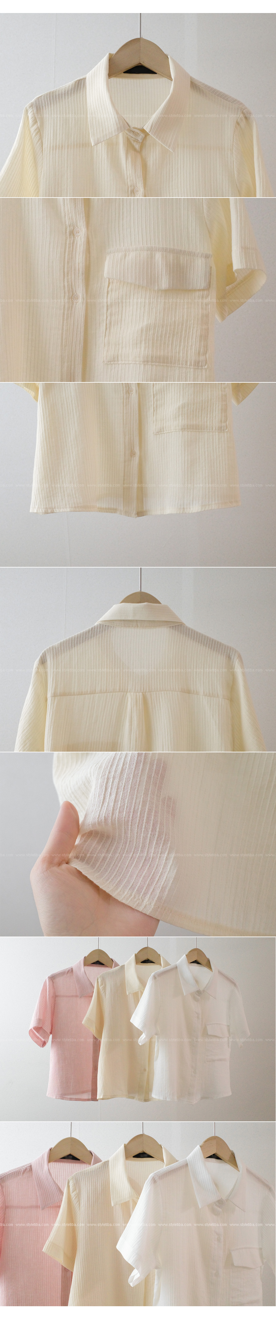 엔젤 스트라이프 반팔블라우스-3color - 스타일티바