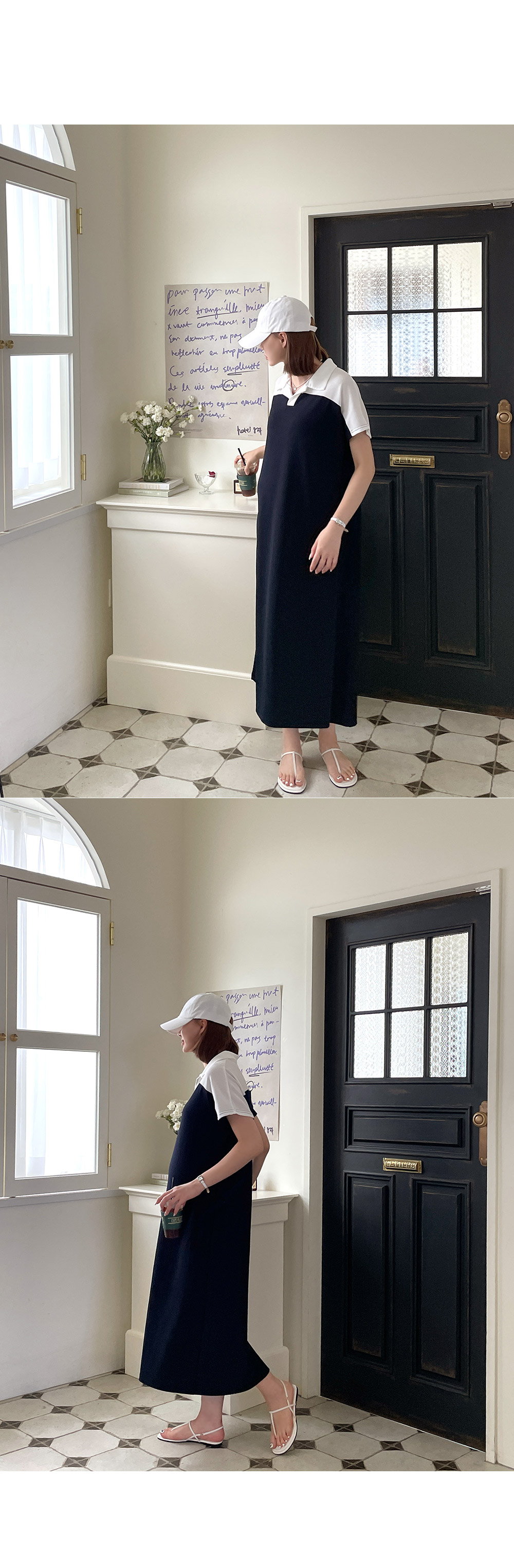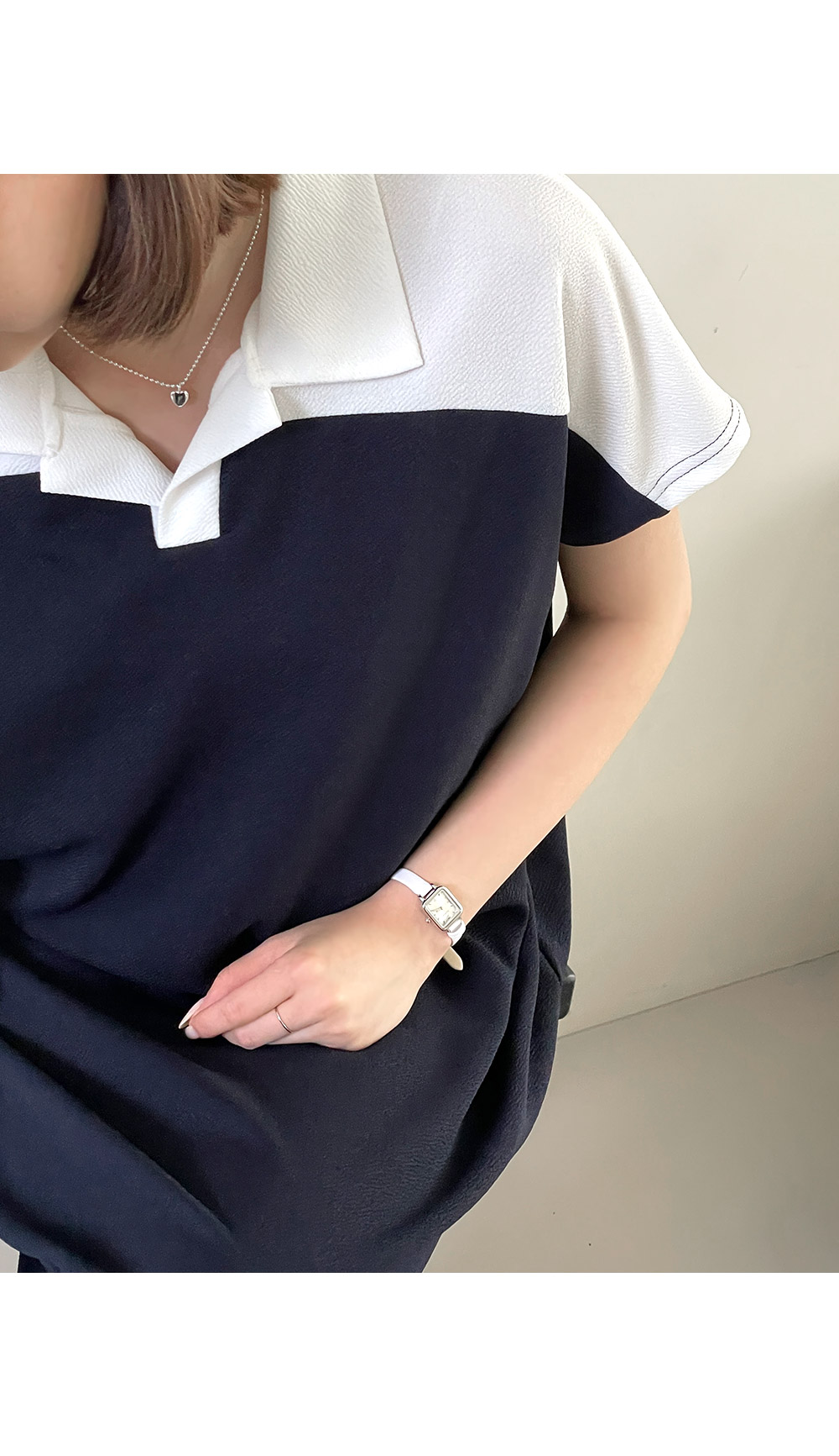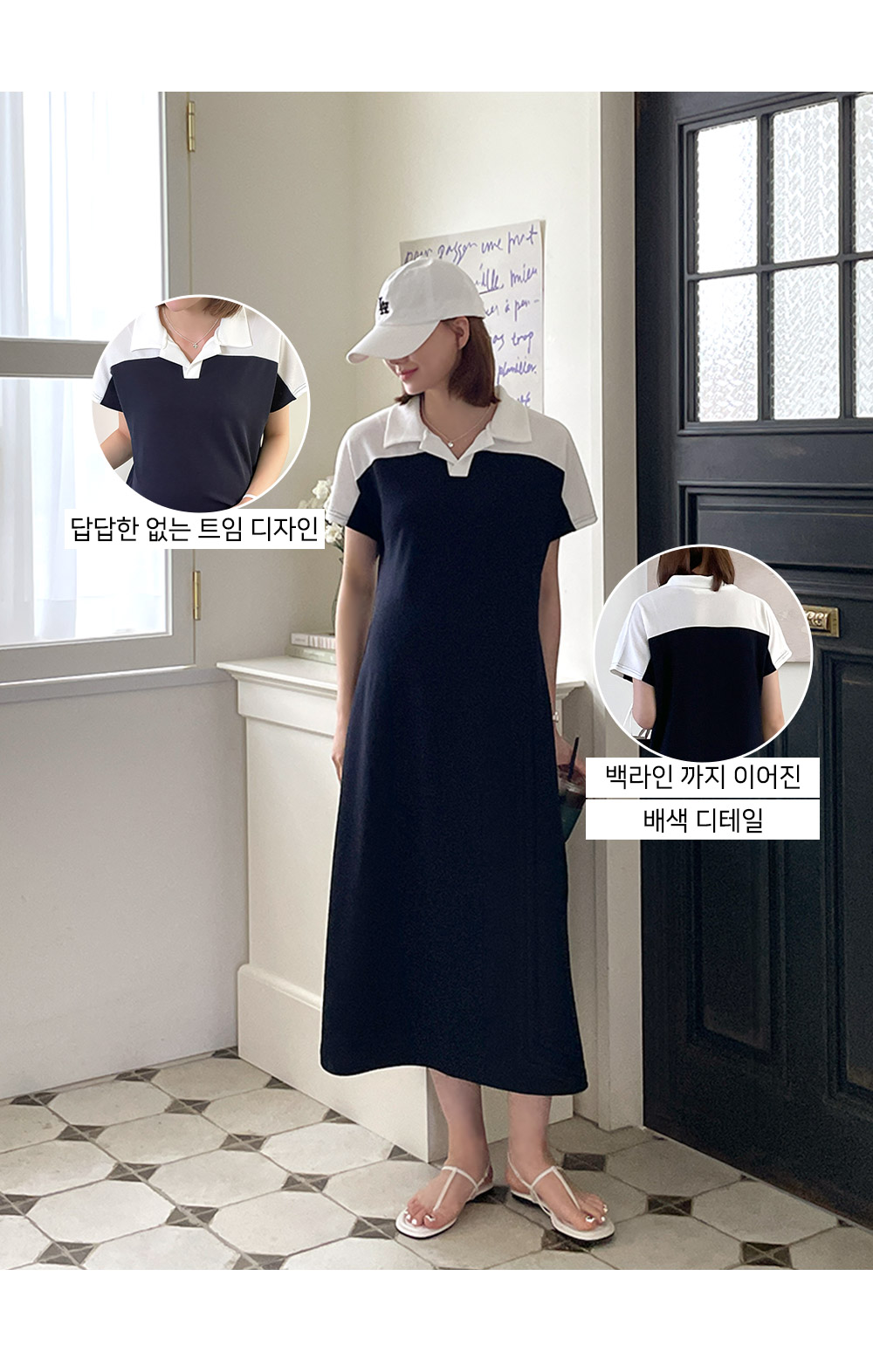 트임 카라와 배색 디테일이 함께 하기 때문에