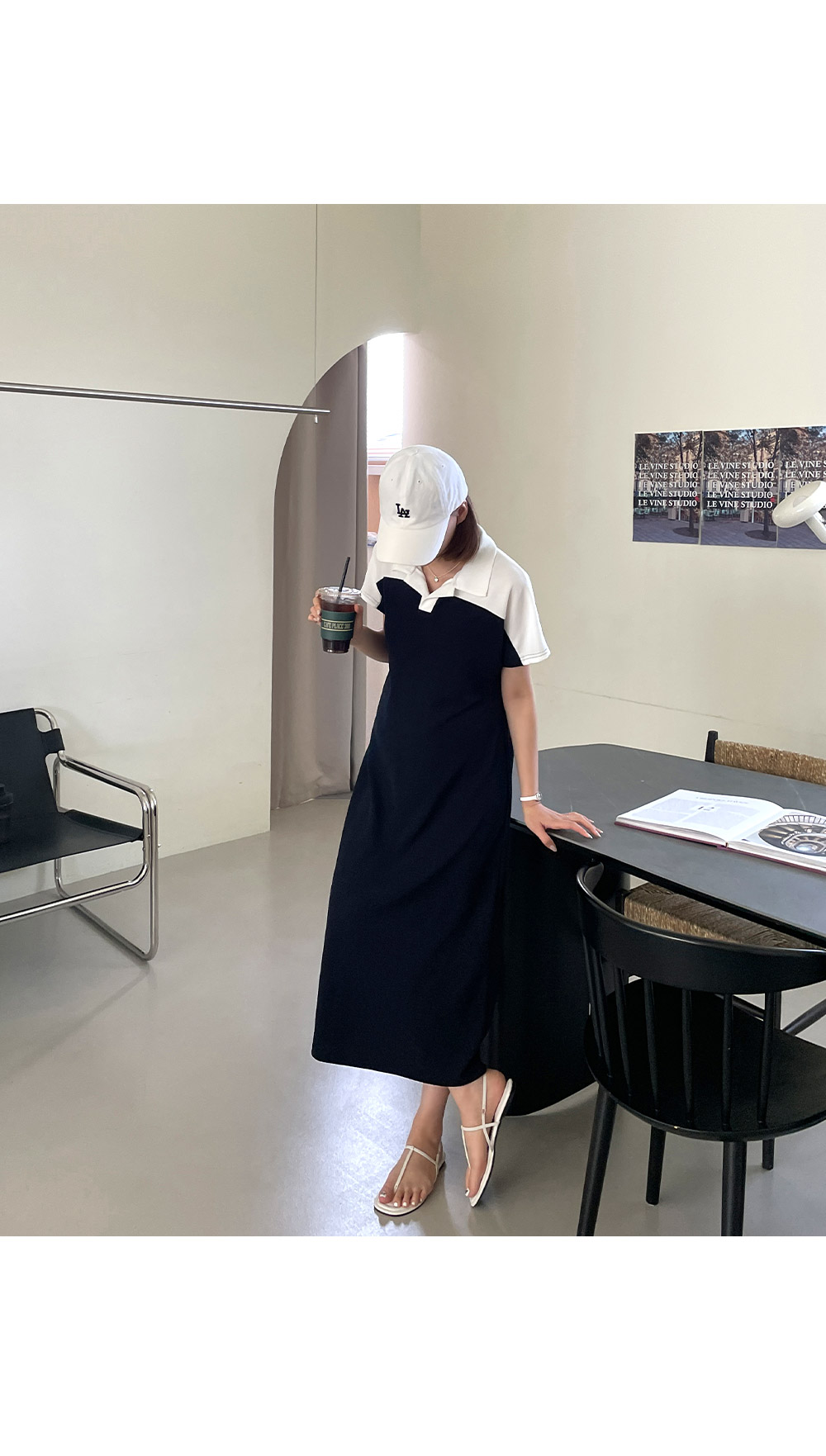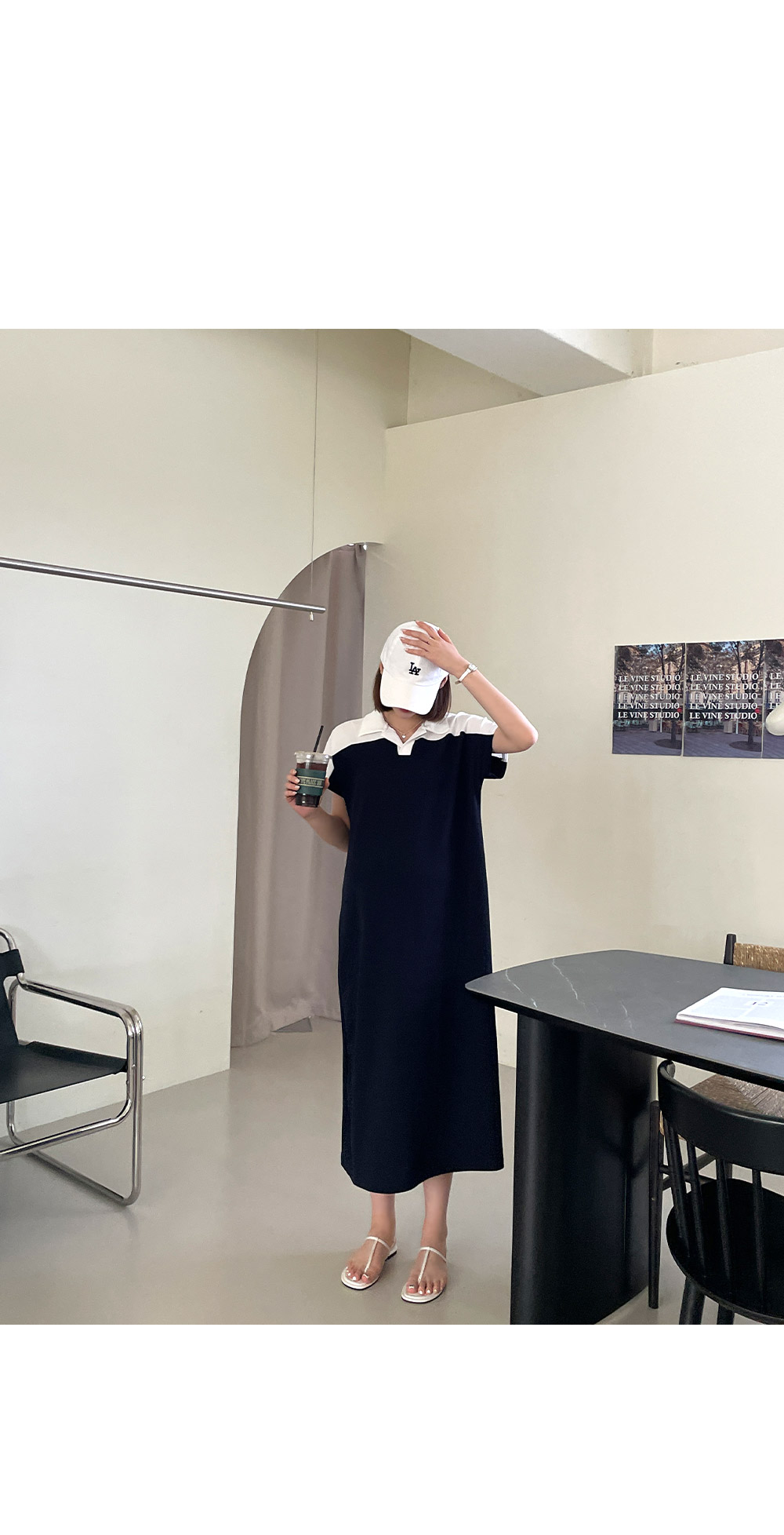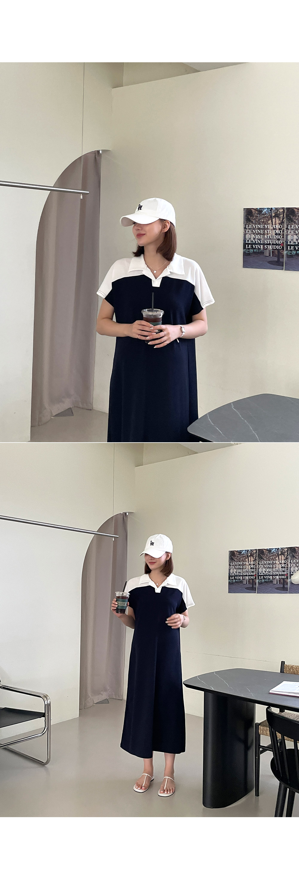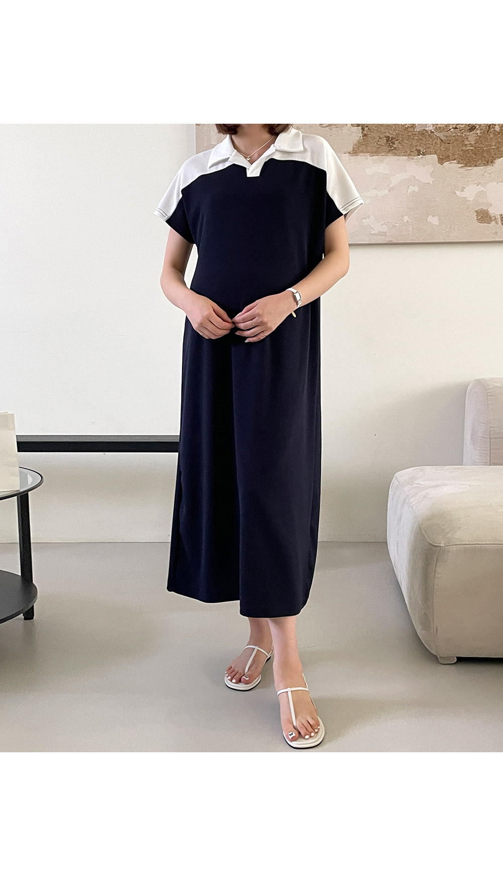 트임 카라와 배색 디테일이 함께 하기 때문에