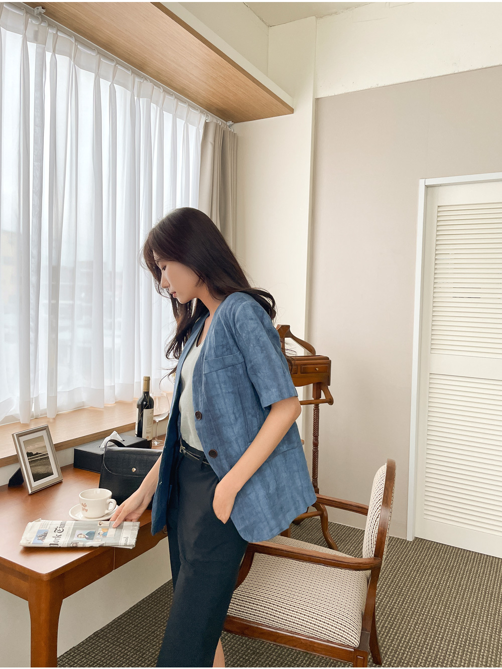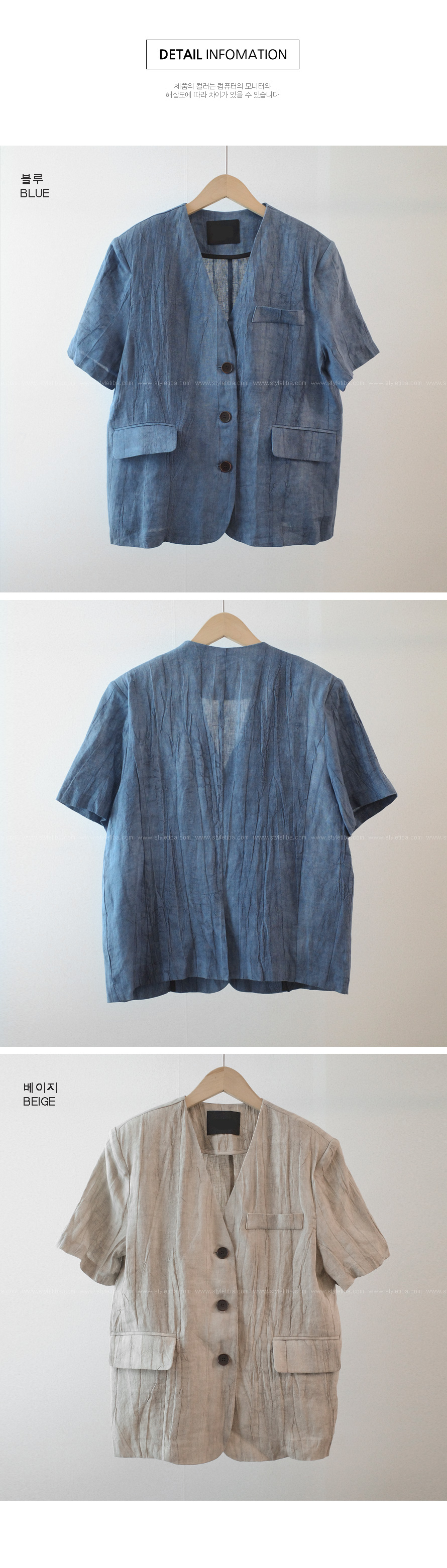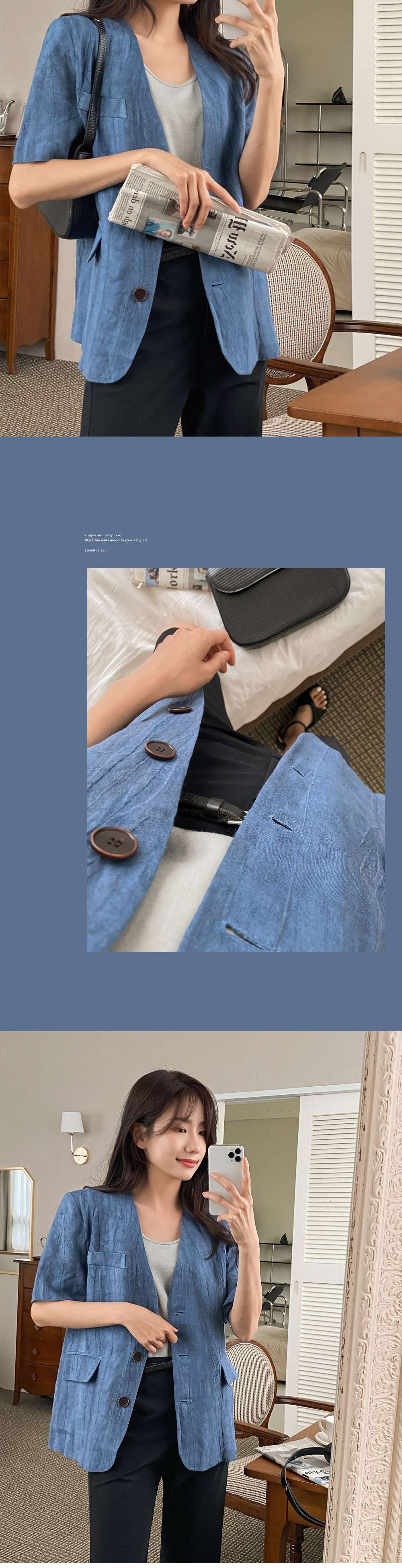 린넨 오버핏 싱글자켓-2color,편하게 매일입는 여름아우터-경쾌하고 빈티지한 무드-고퀄리티 린넨100,너무 가볍고 시원해! - 스타일티바