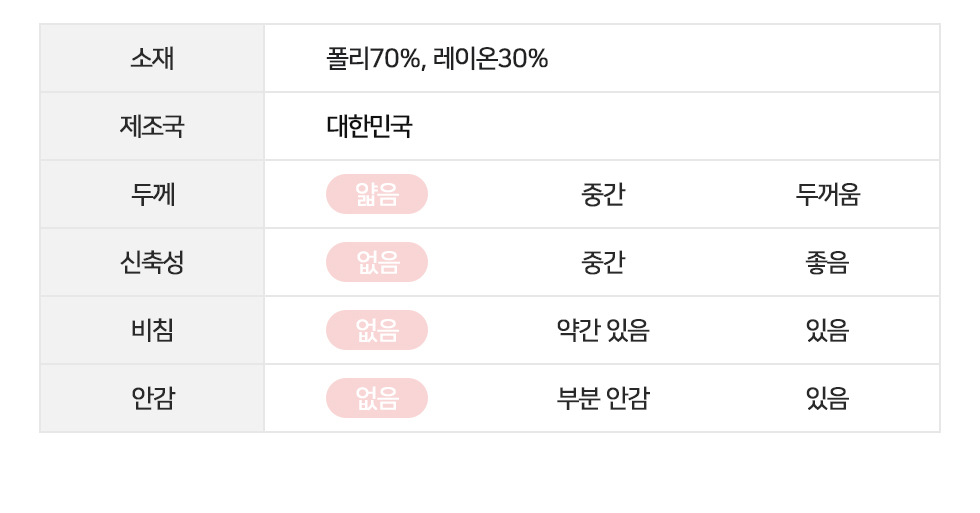 얇고 가벼운 원단으로