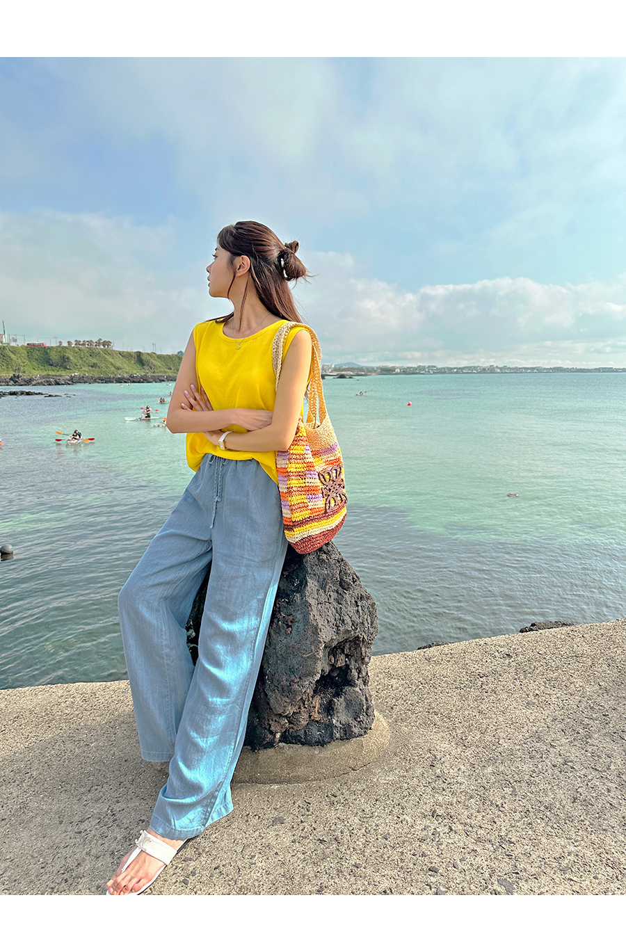안 입은 듯 가볍게 착용되는 데님 팬츠에요.