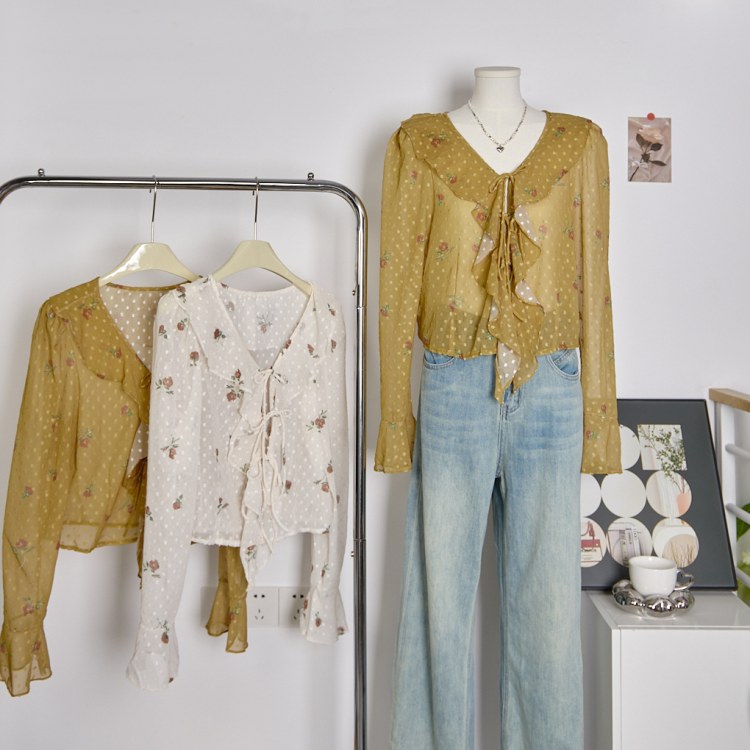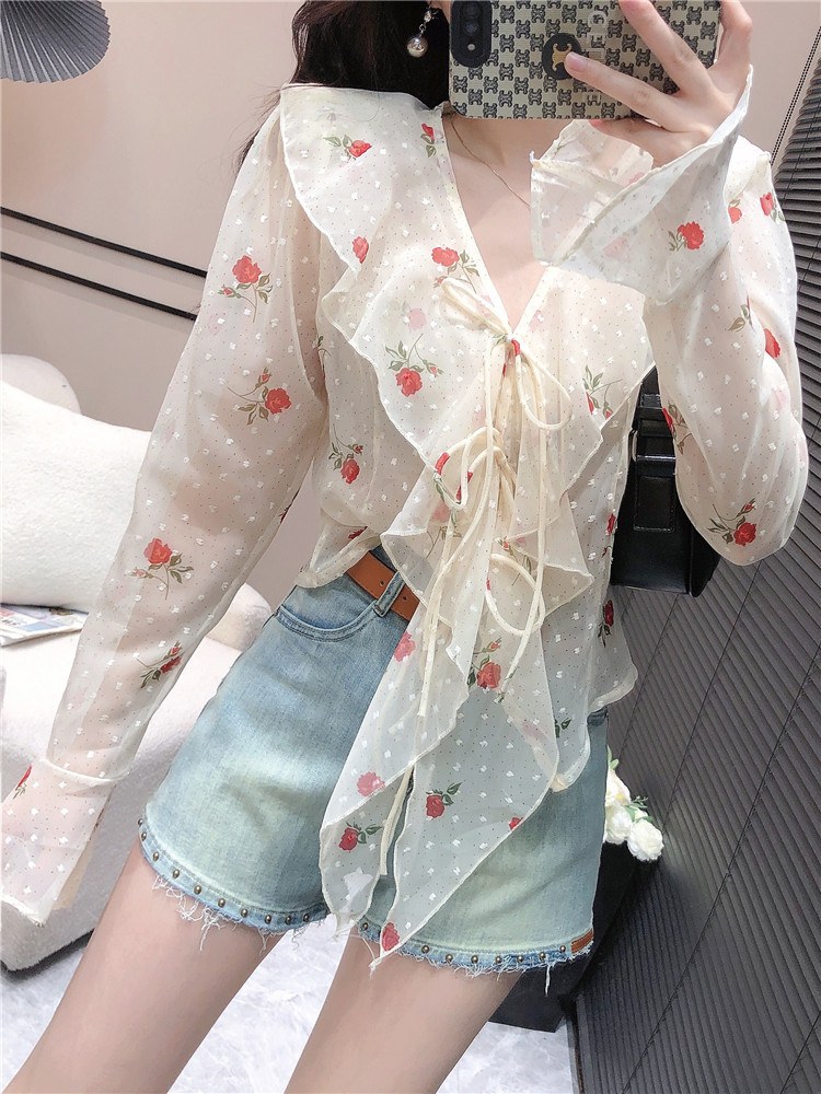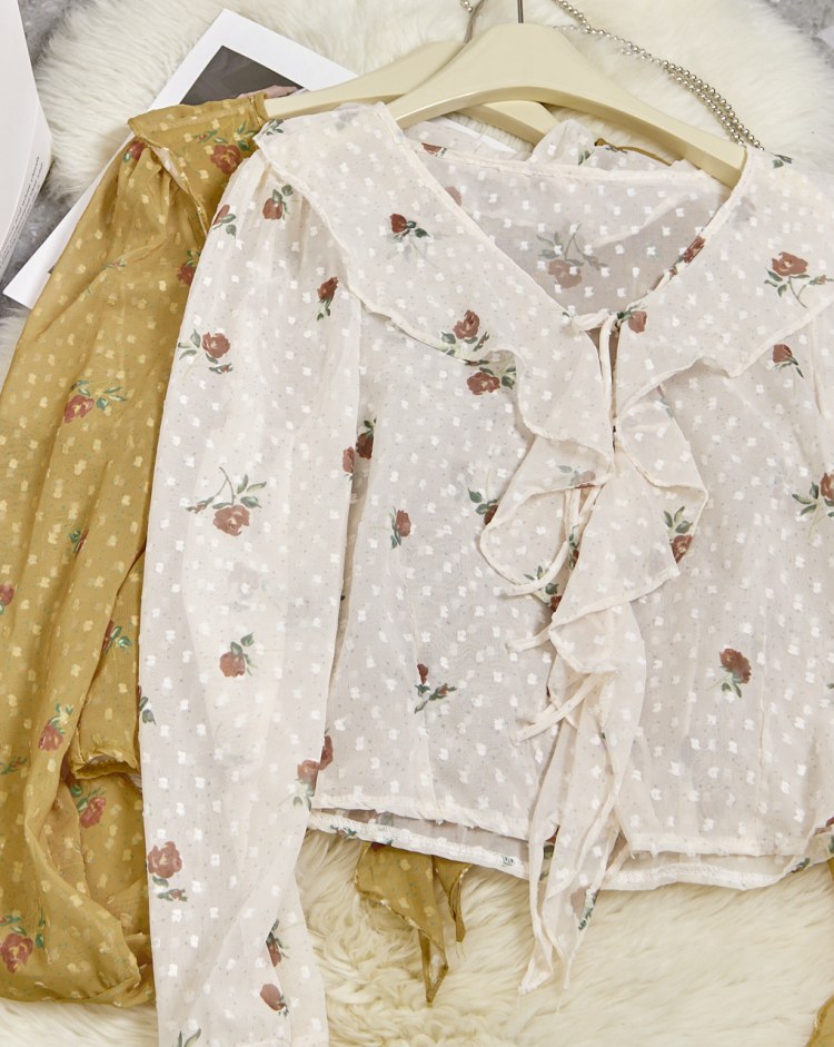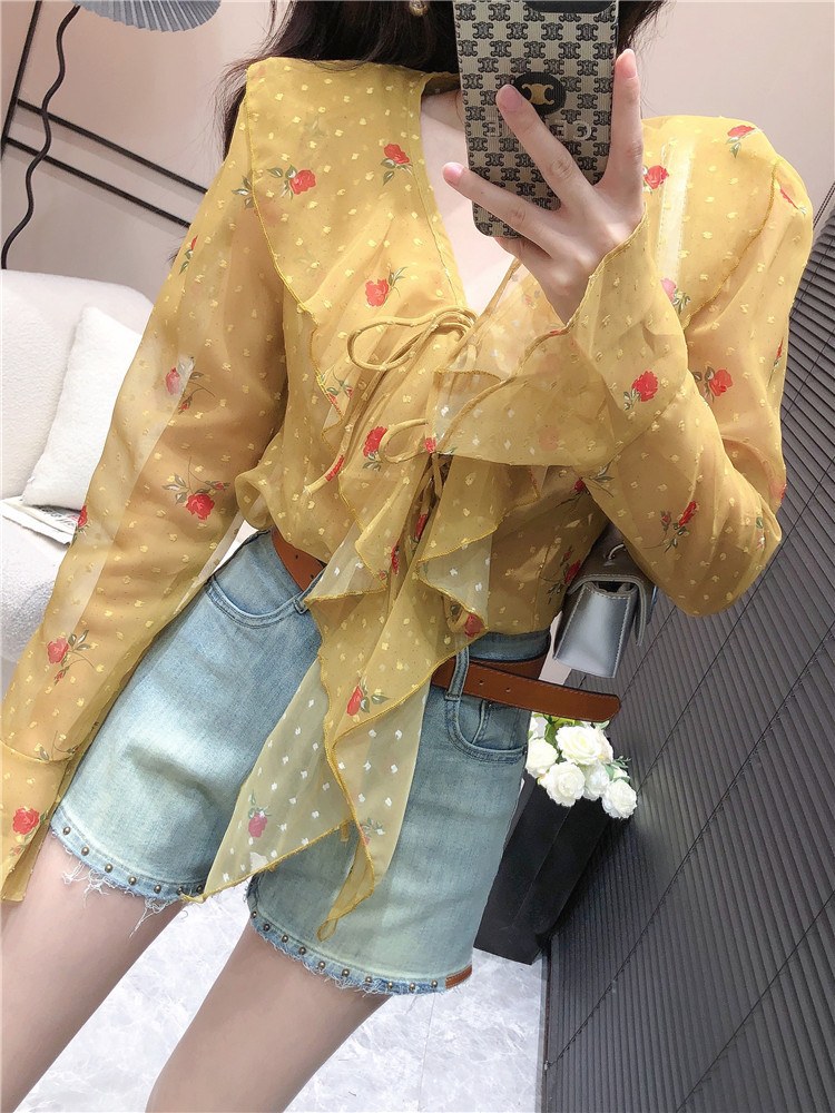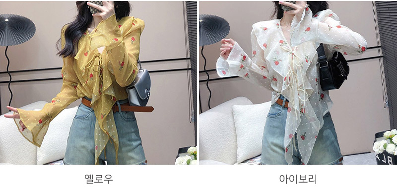 프레타 프릴장식 시스루 블라우스