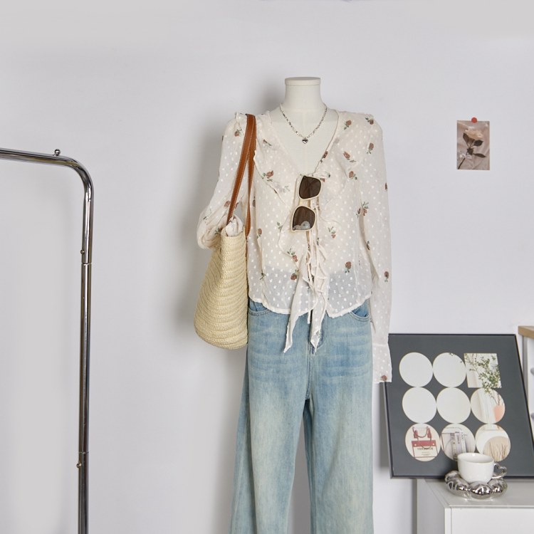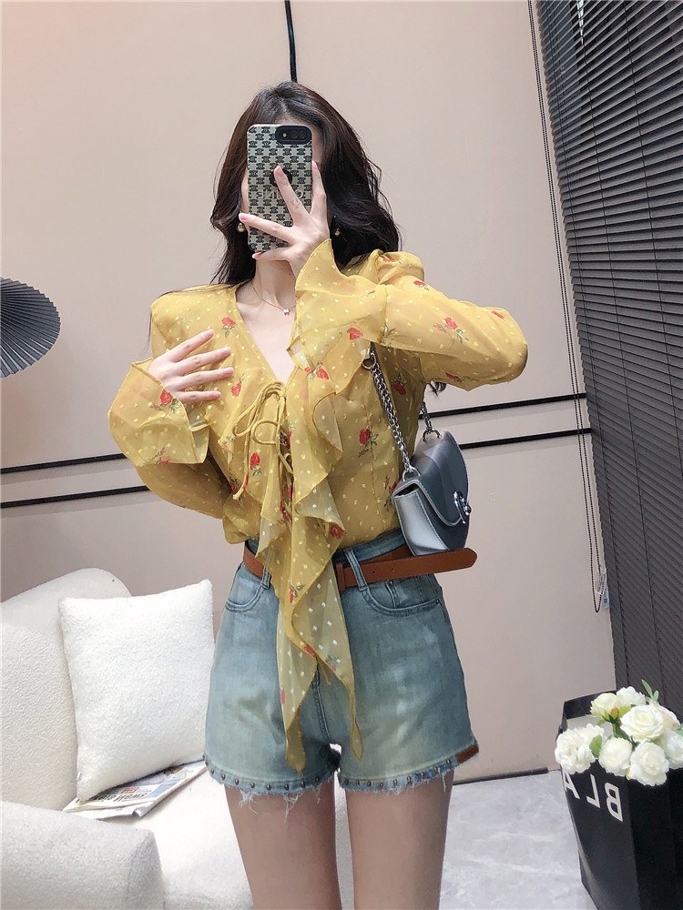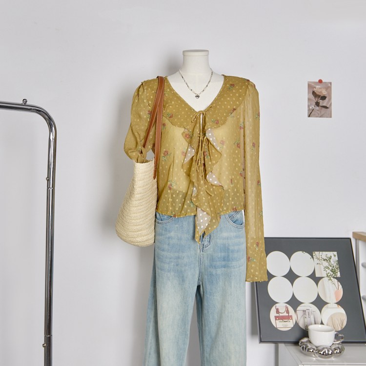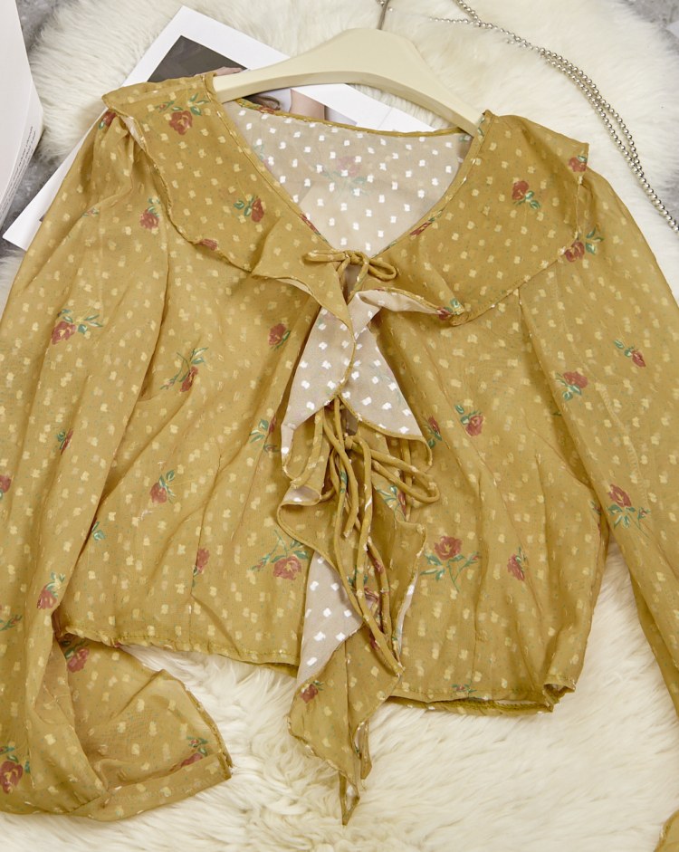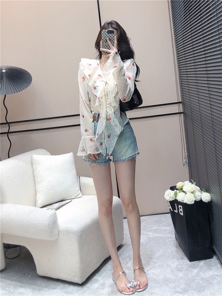 프레타 프릴장식 시스루 블라우스