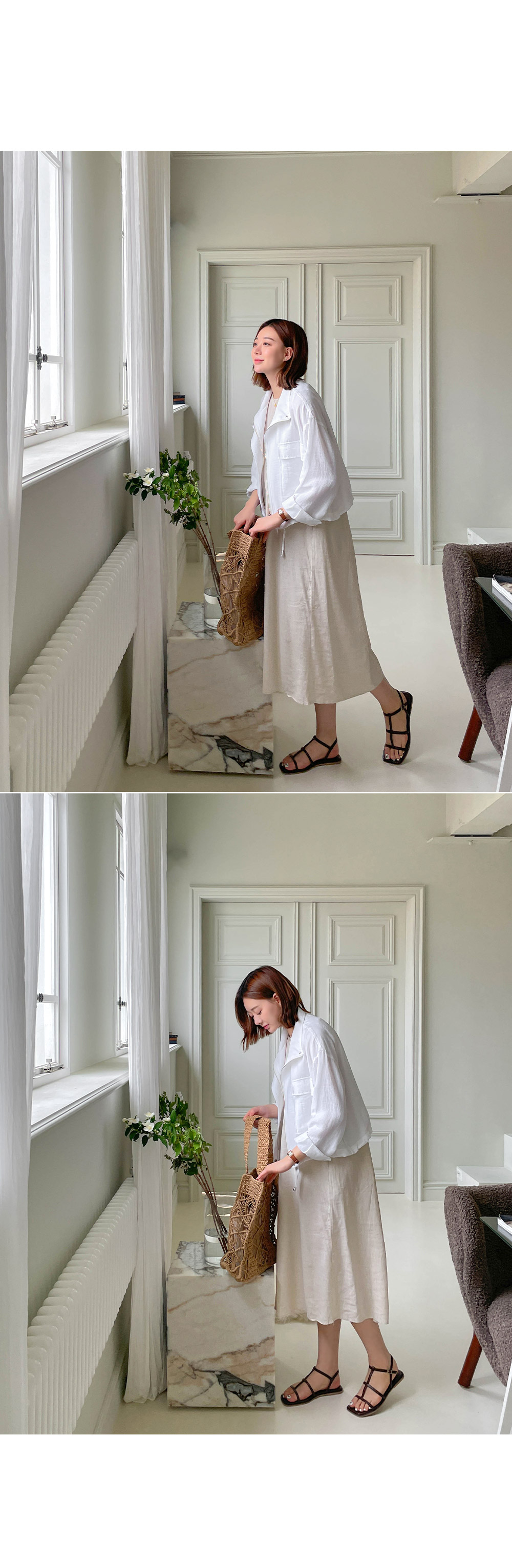 가볍고 통기성 좋은 린넨 원단의 아우터로
