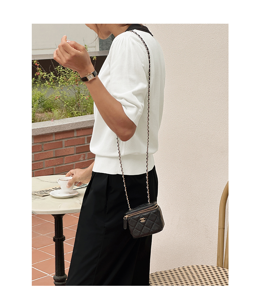 배색 라인으로 더해지 카라 디자인이