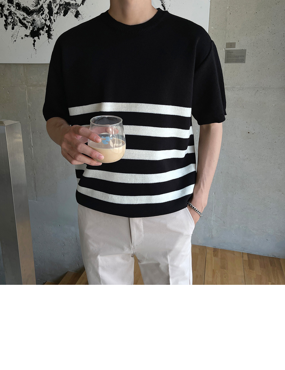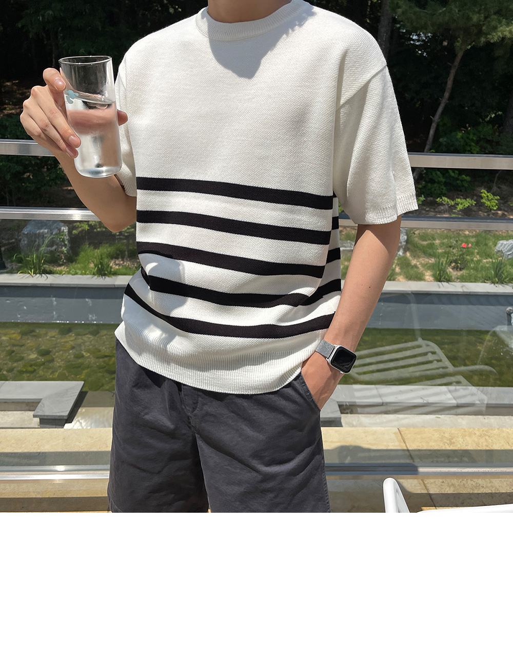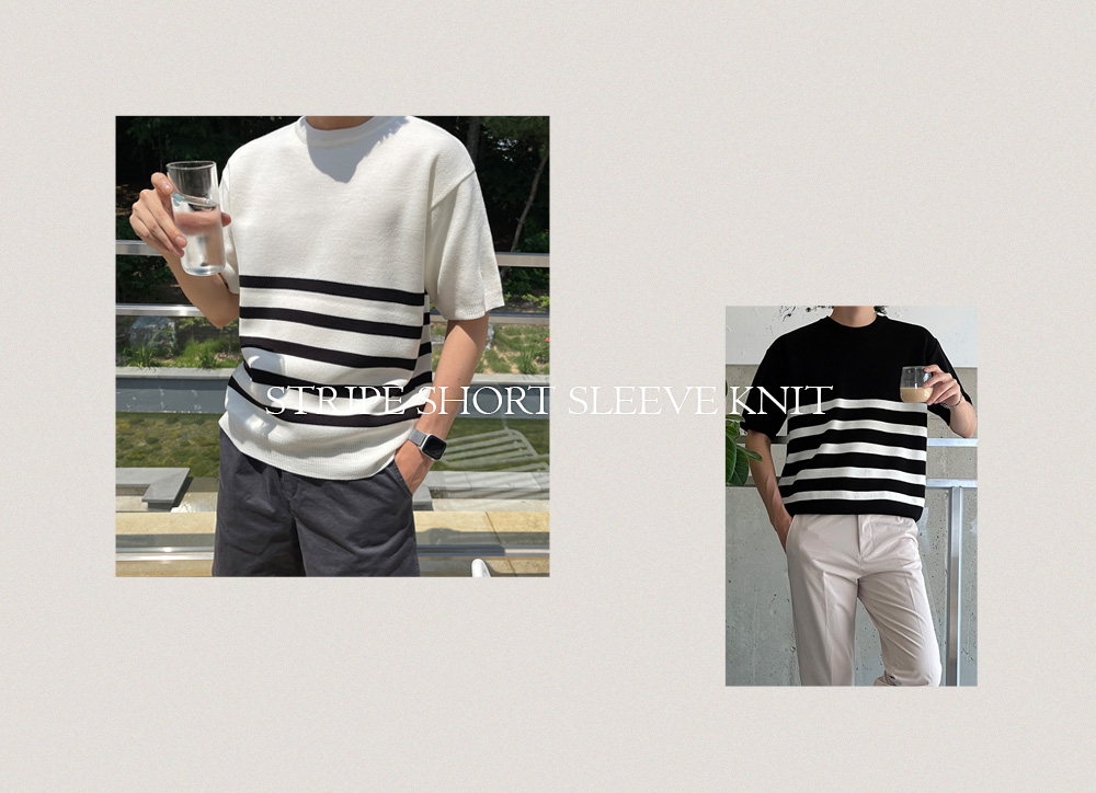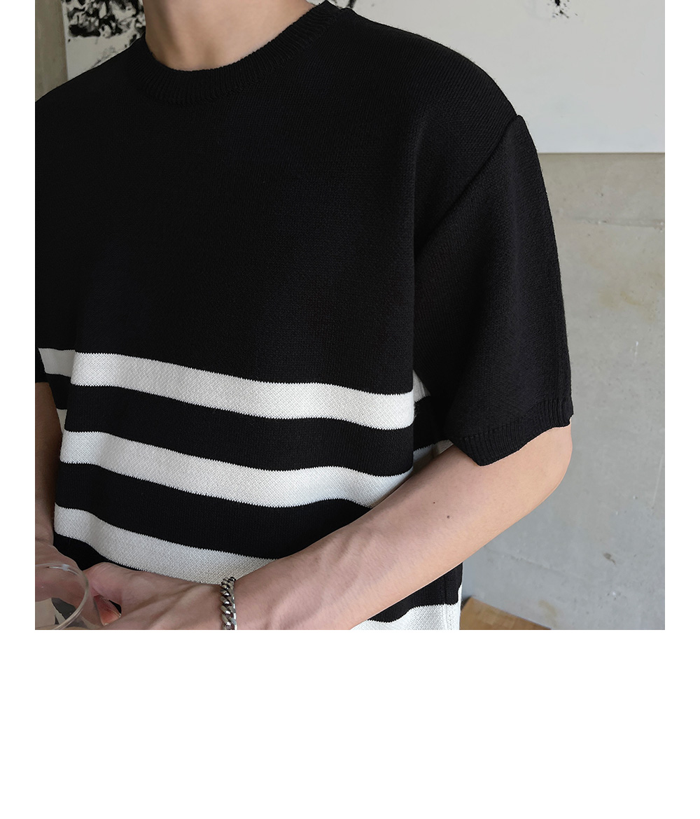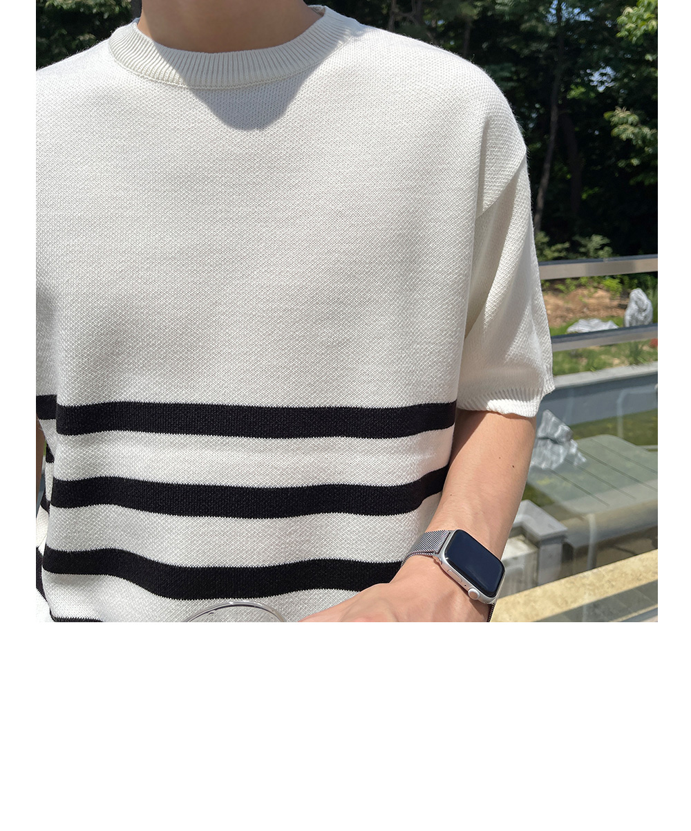 High-density minimal stripe Short-sleeve Knit F size(95 to 105)
