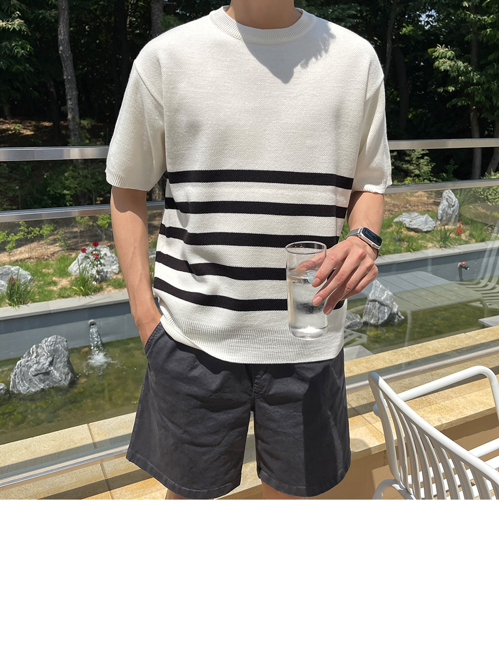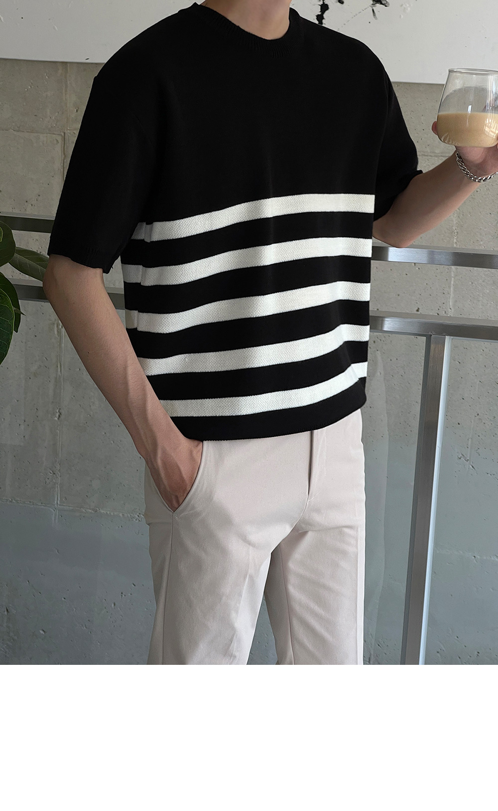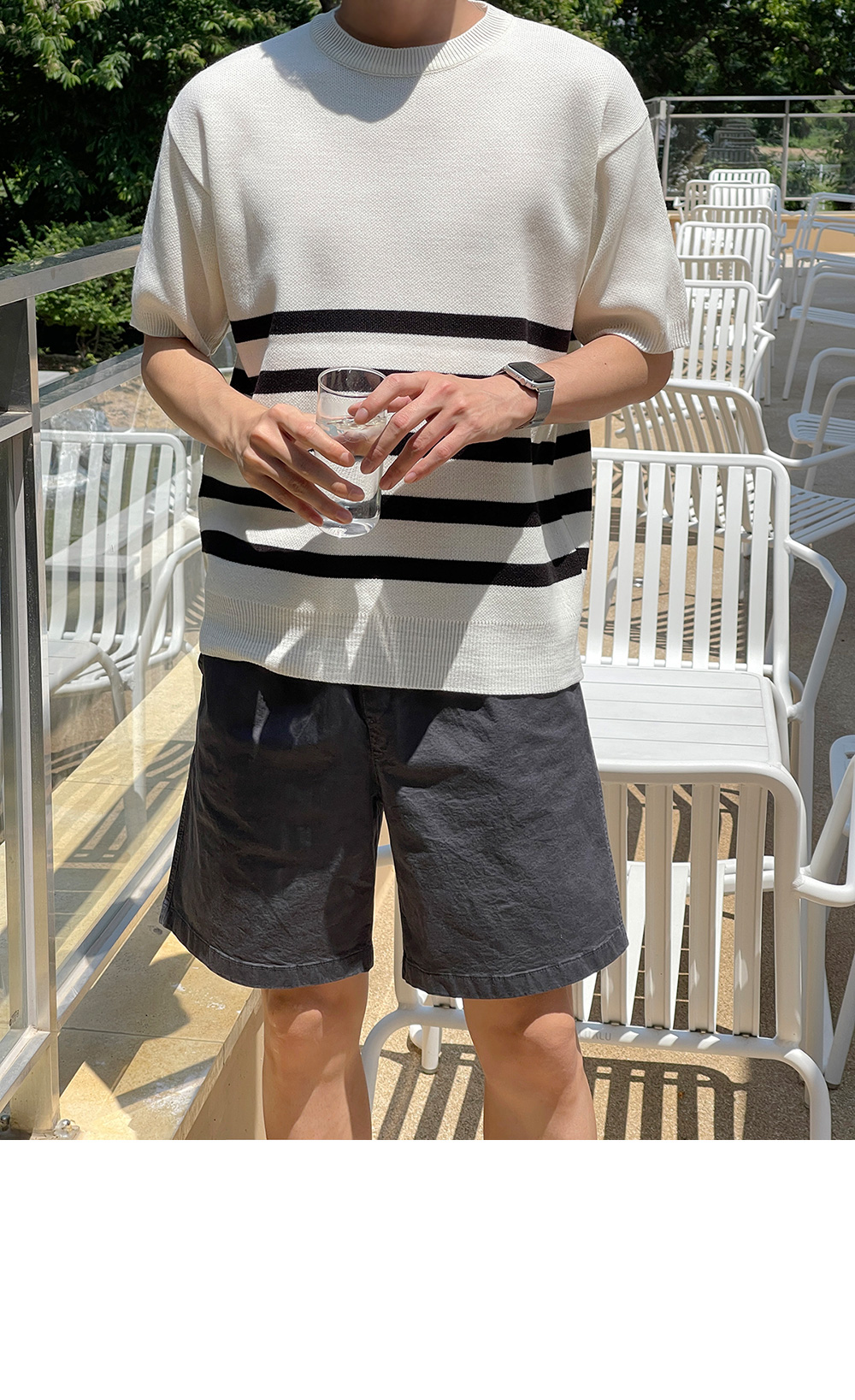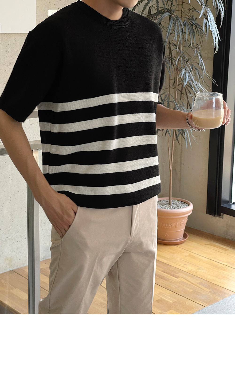 High-density minimal stripe Short-sleeve Knit F size(95 to 105)