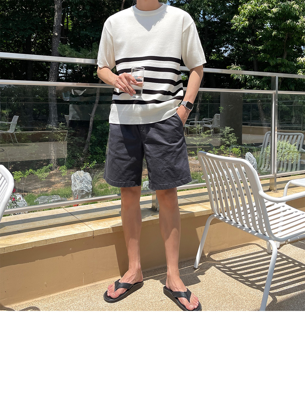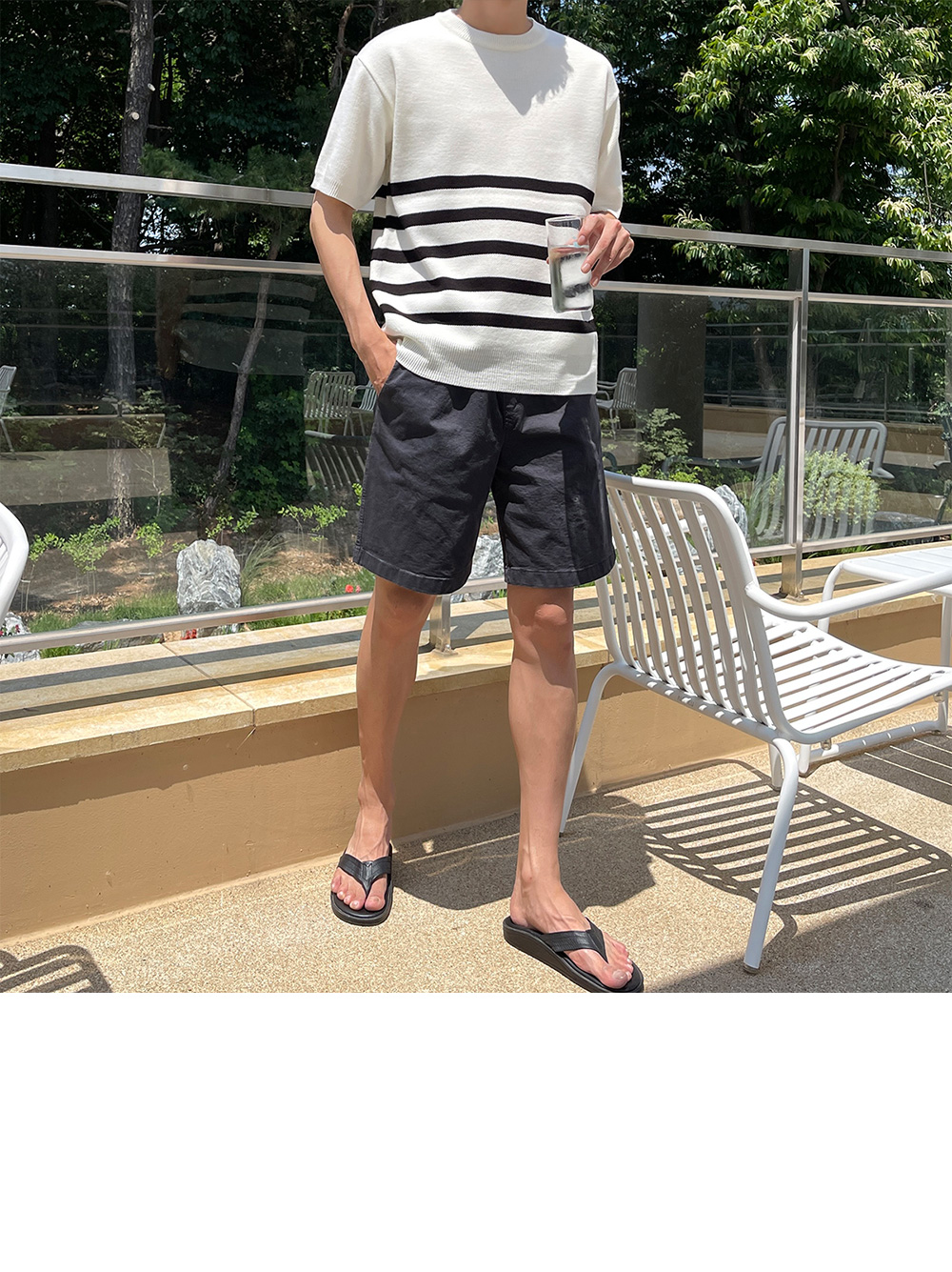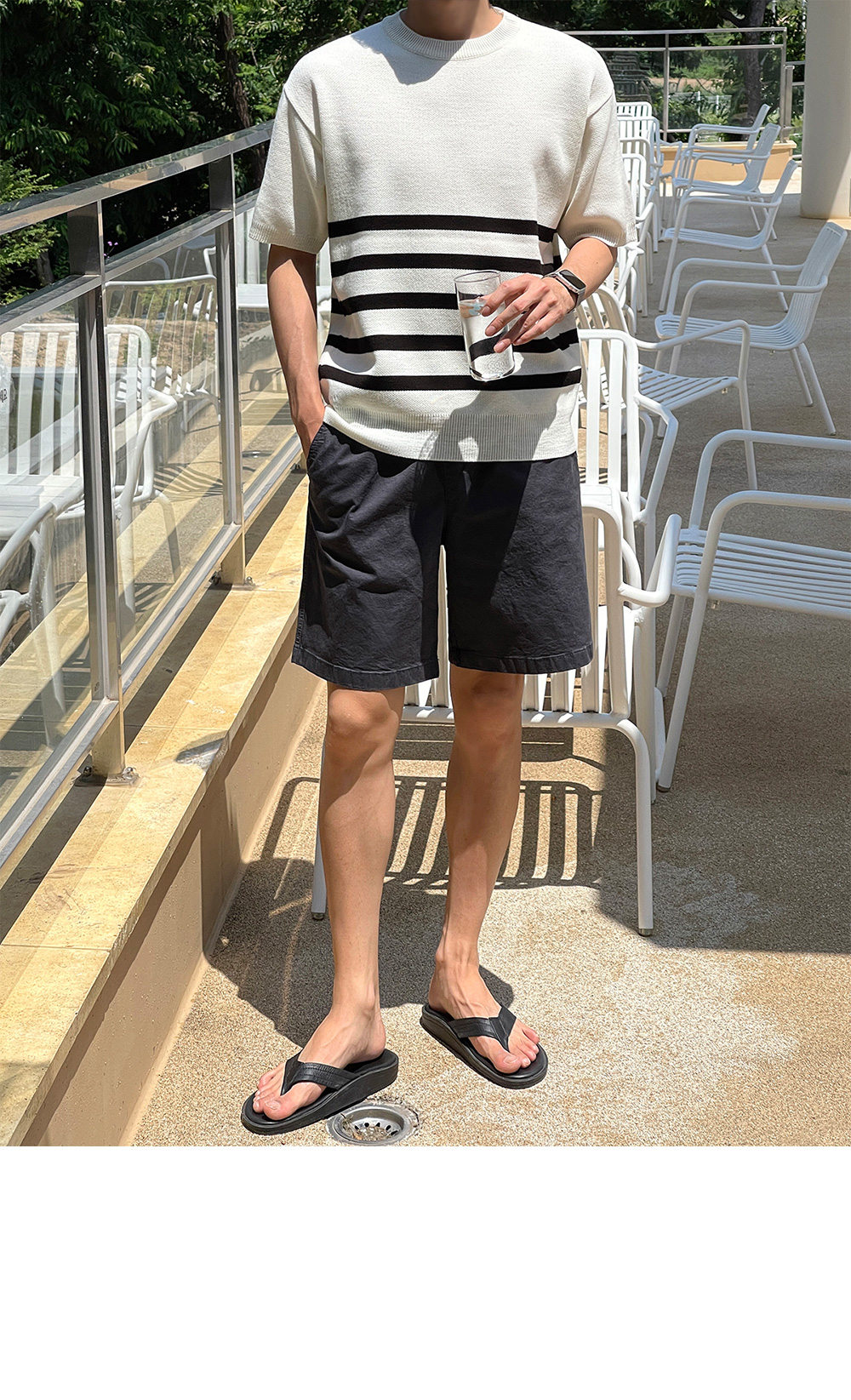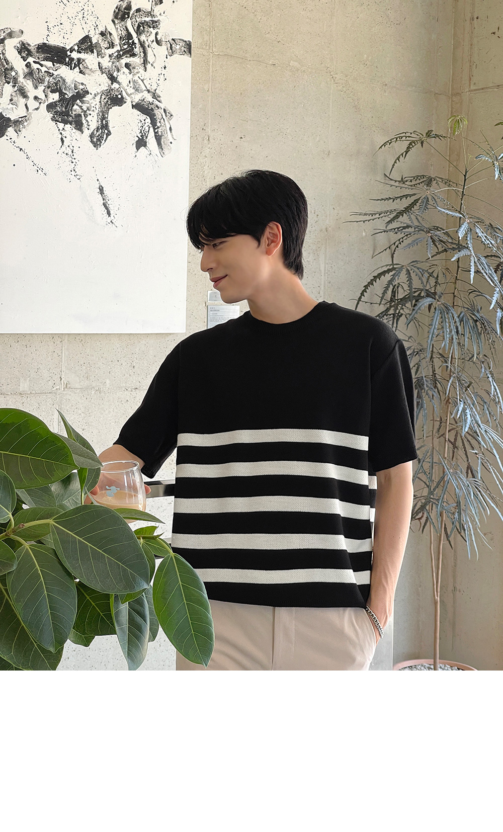High-density minimal stripe Short-sleeve Knit F size(95 to 105)