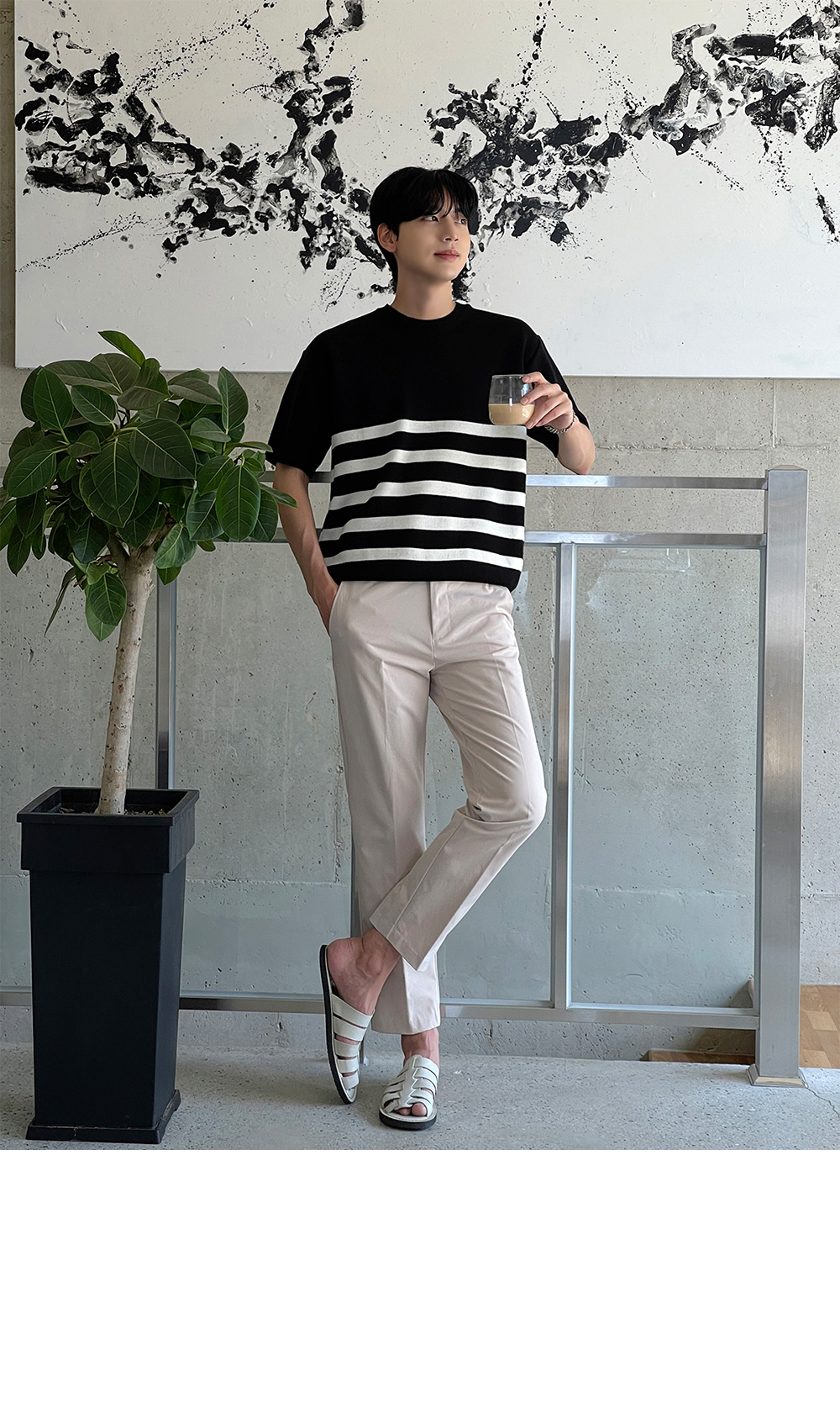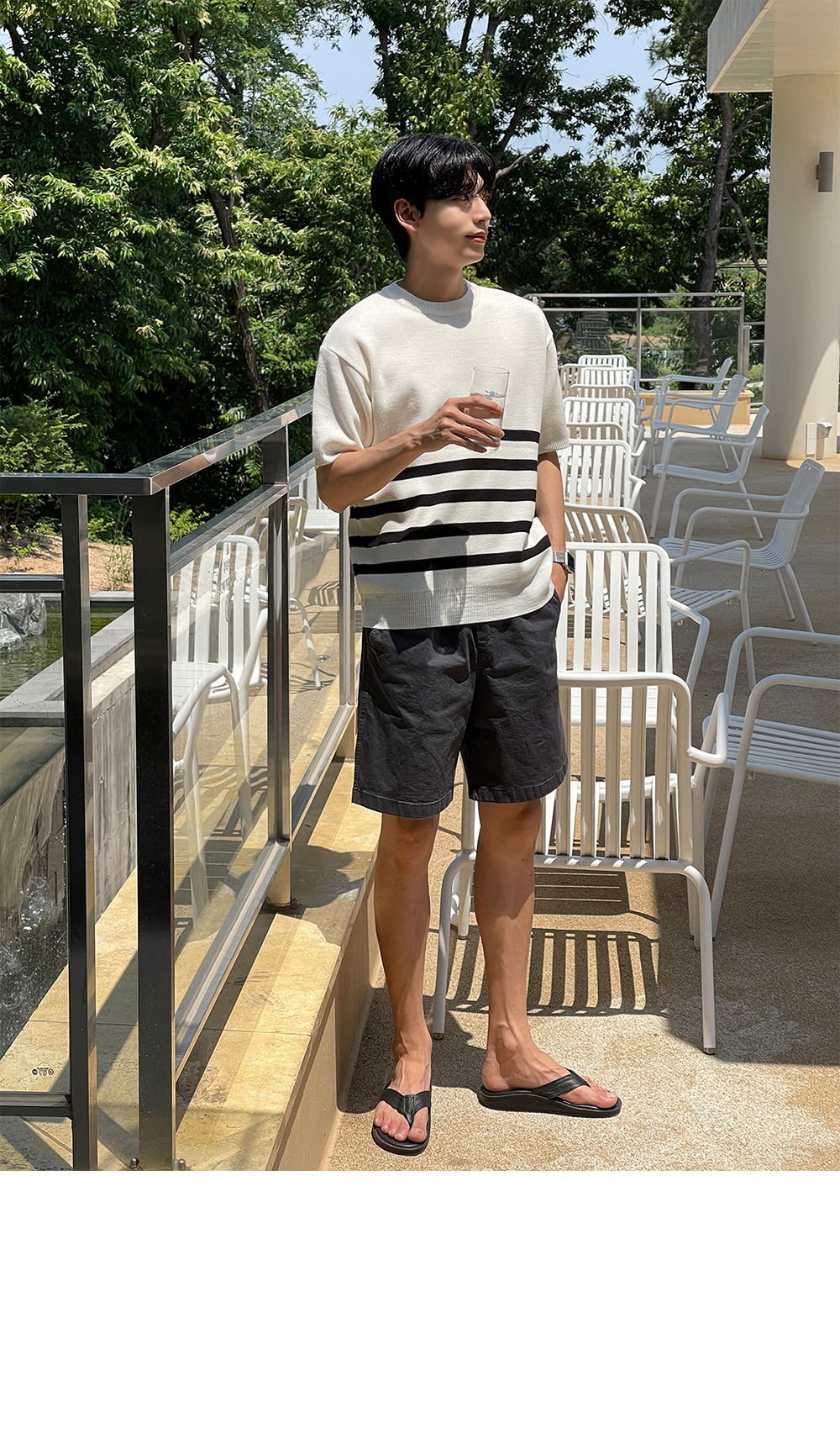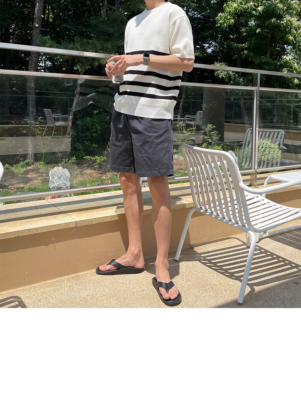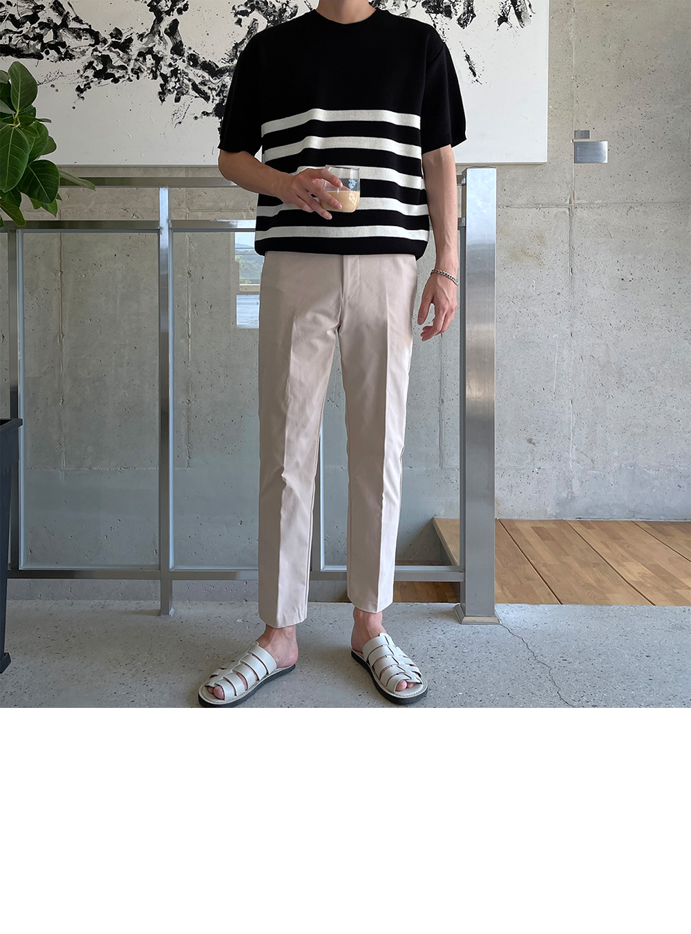 High-density minimal stripe Short-sleeve Knit F size(95 to 105)