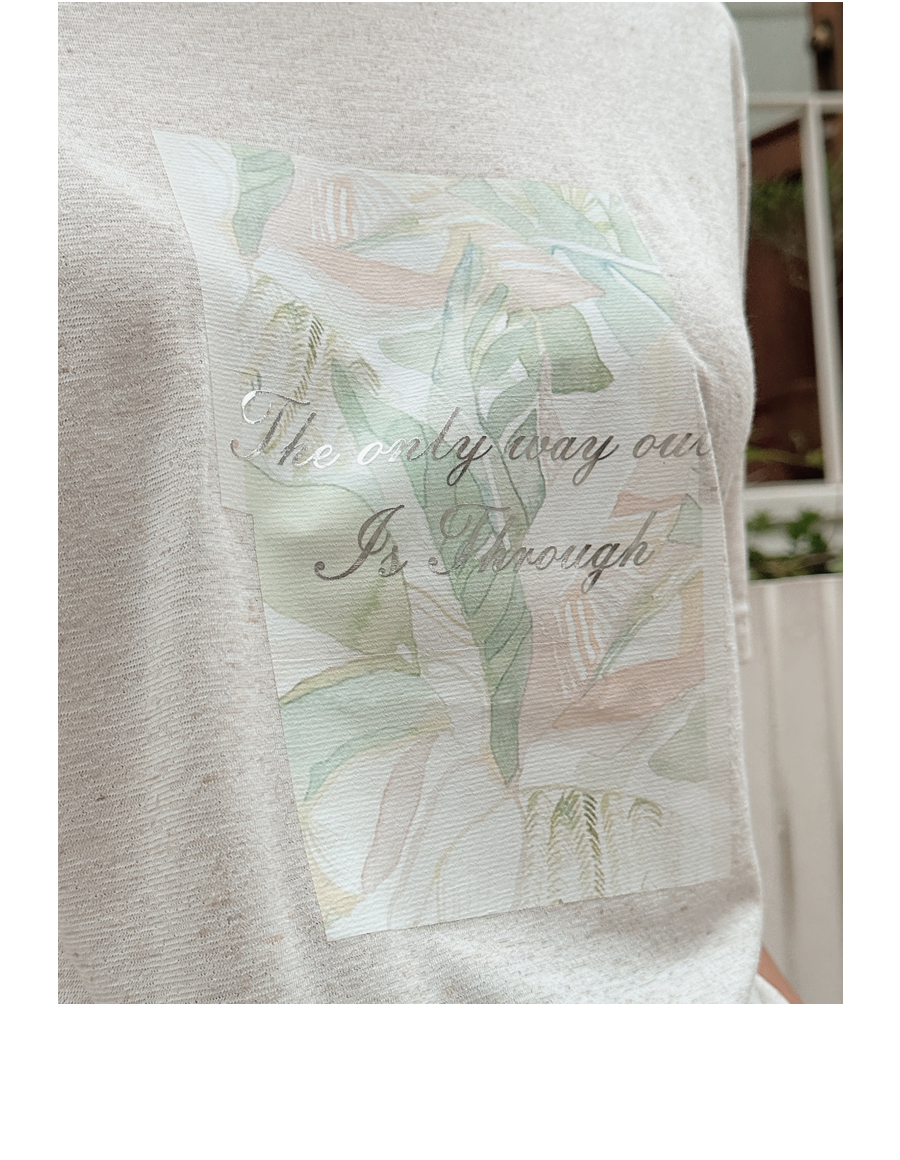 은은한 컬러감의 야자수 프린팅 위에