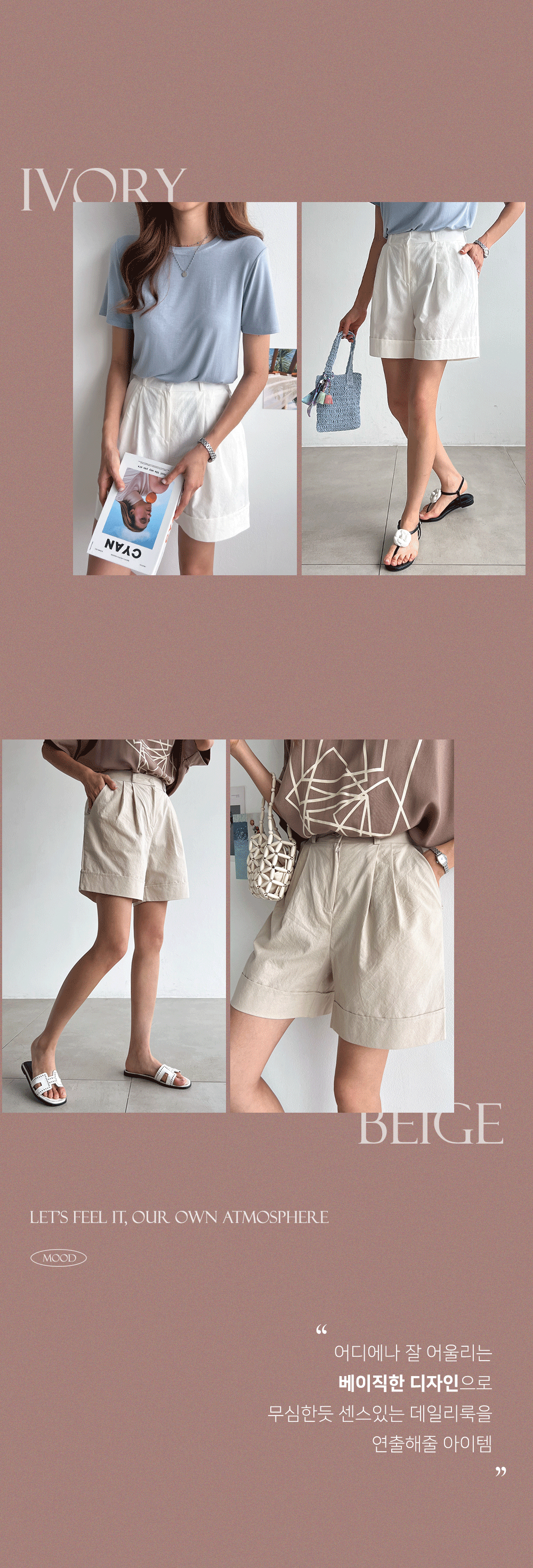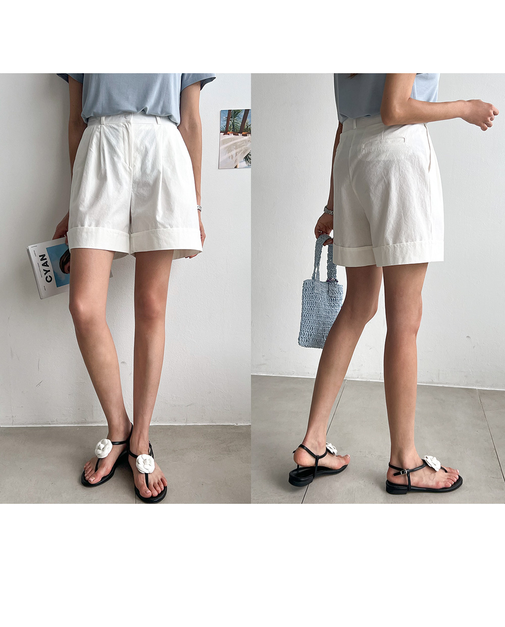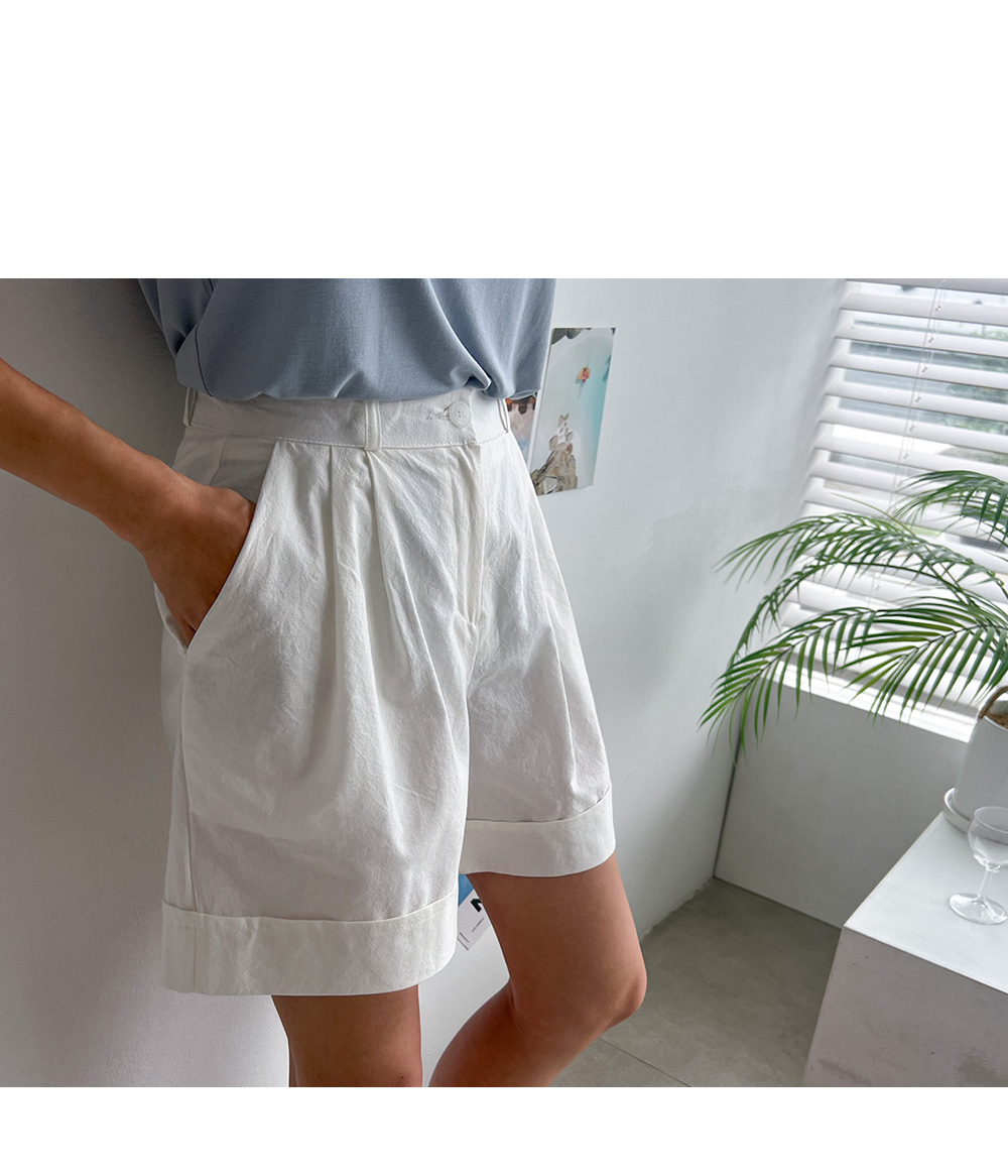 핀턱 코튼 롤업 숏 팬츠 #710050