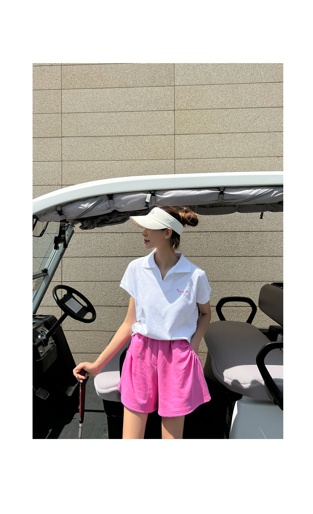 네추럴한 핏이 러블리한 레저룩을 연출해요