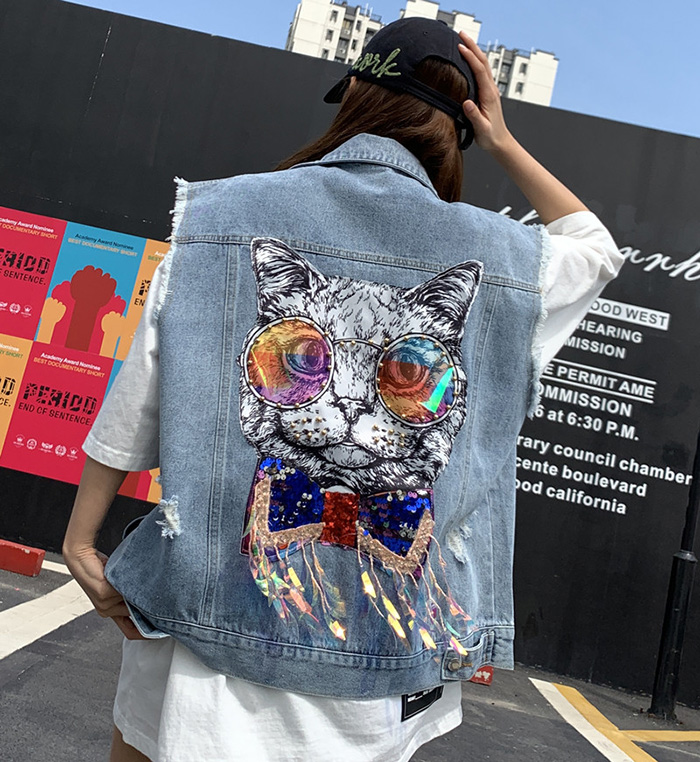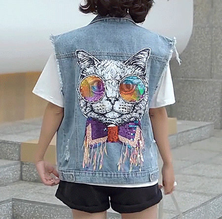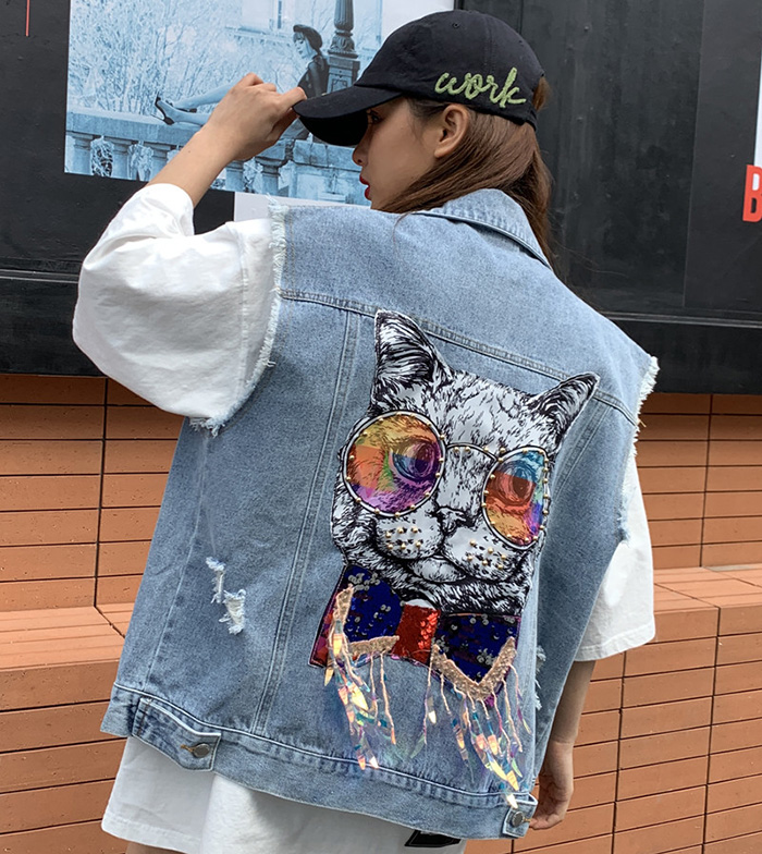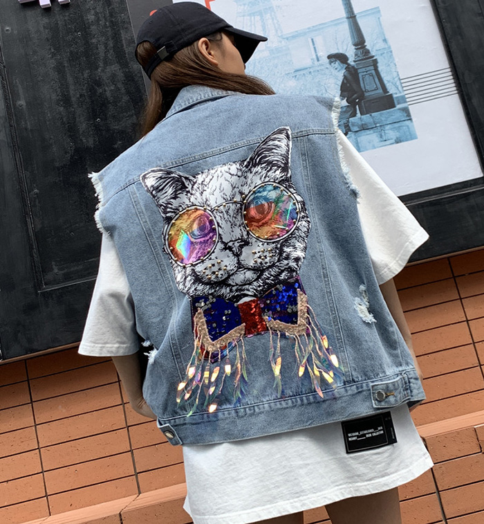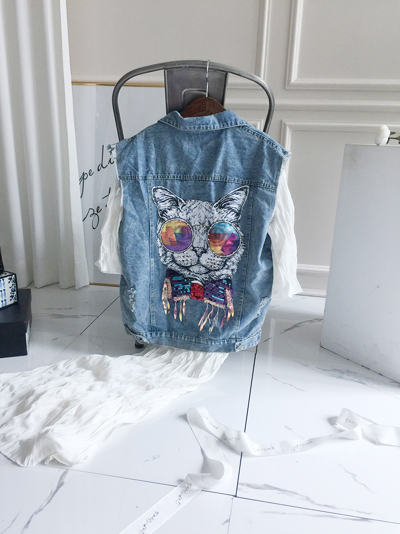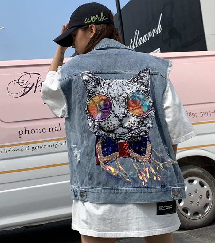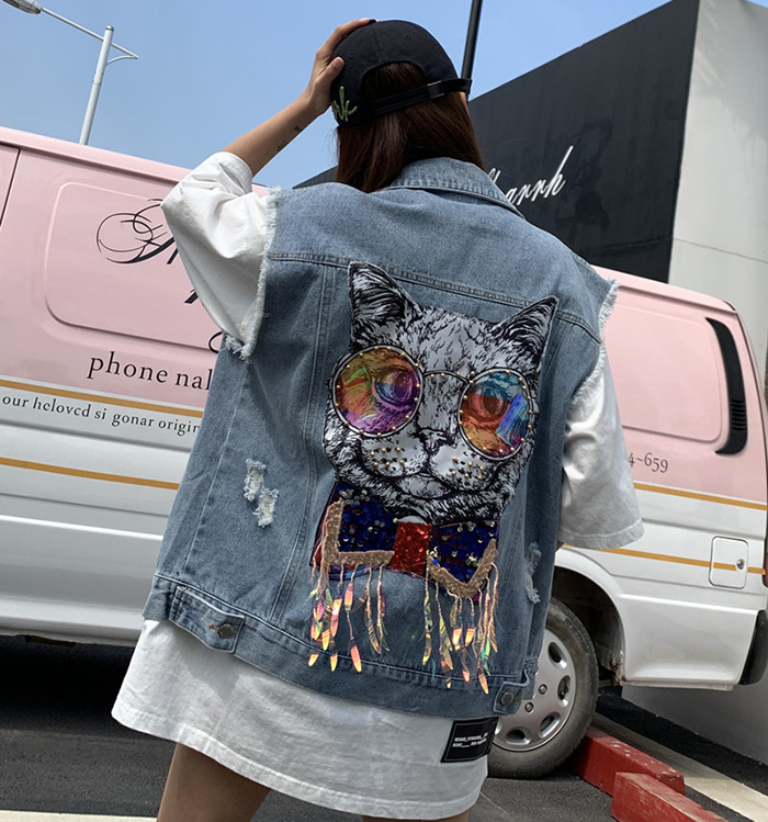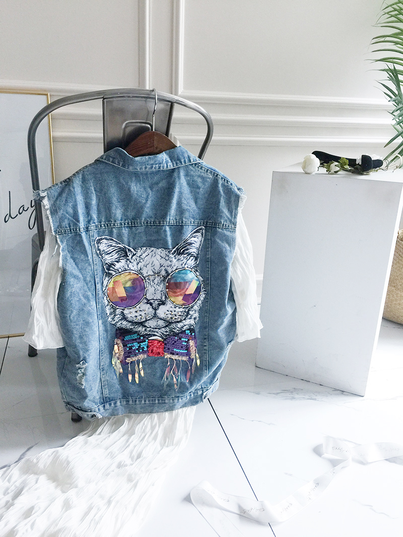 Wangnuni cat bling bling denim blue vest