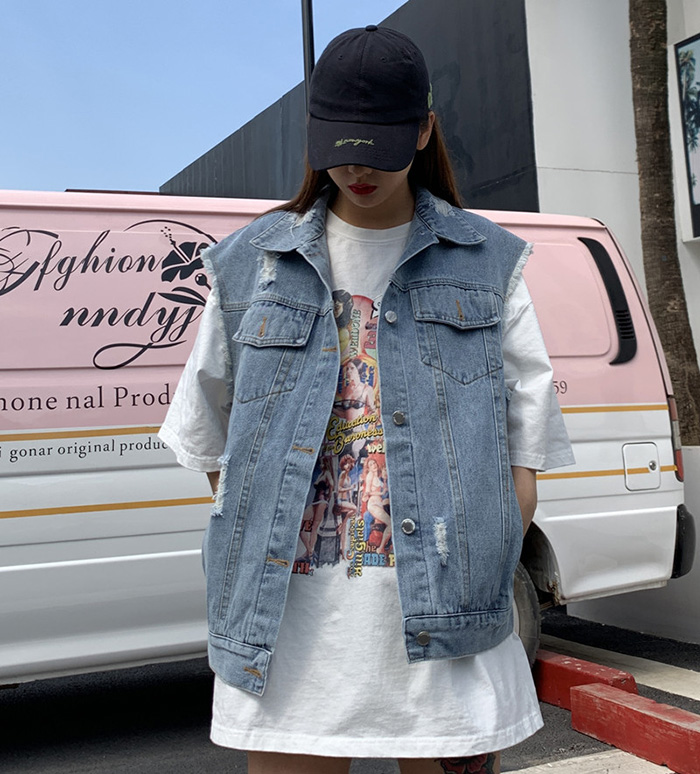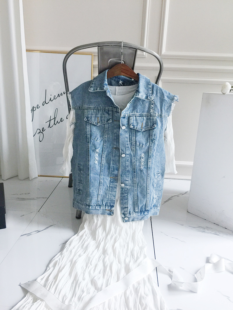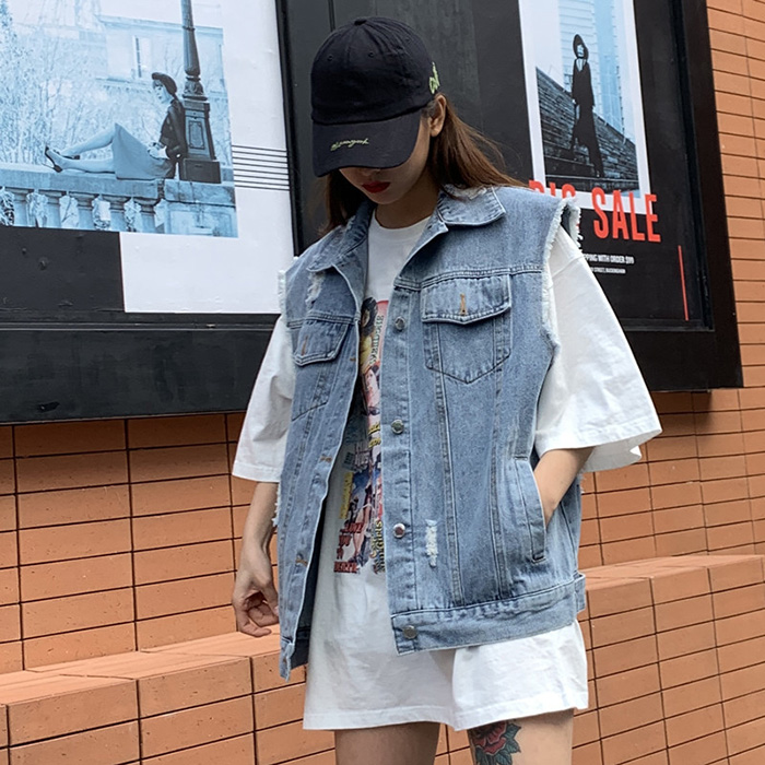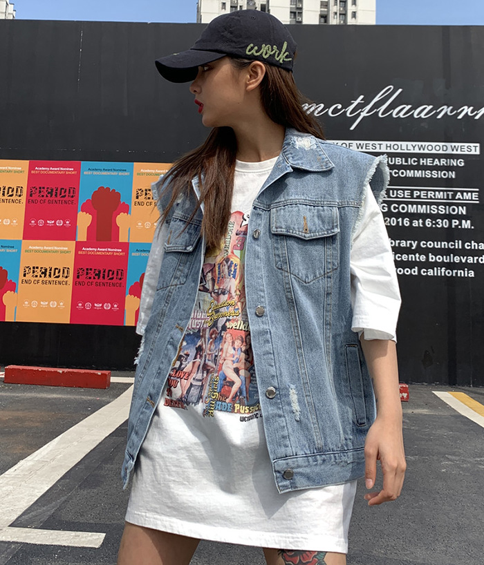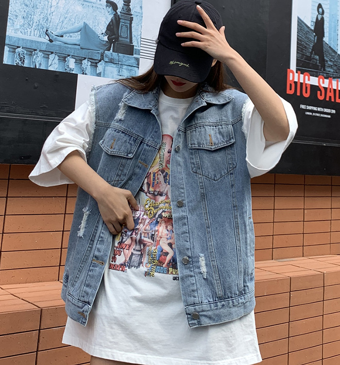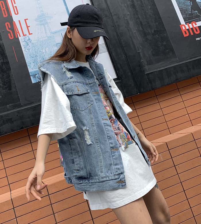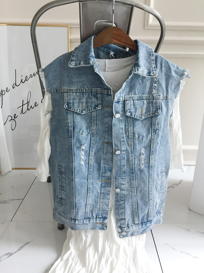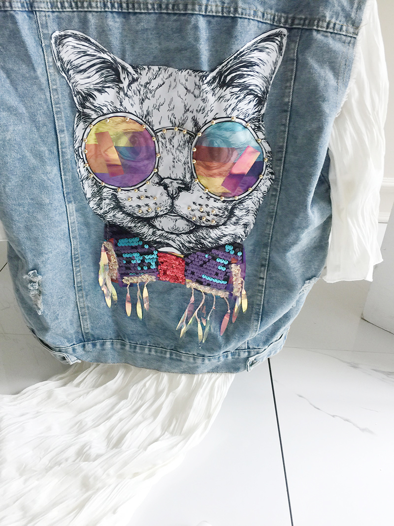 Wangnuni cat bling bling denim blue vest