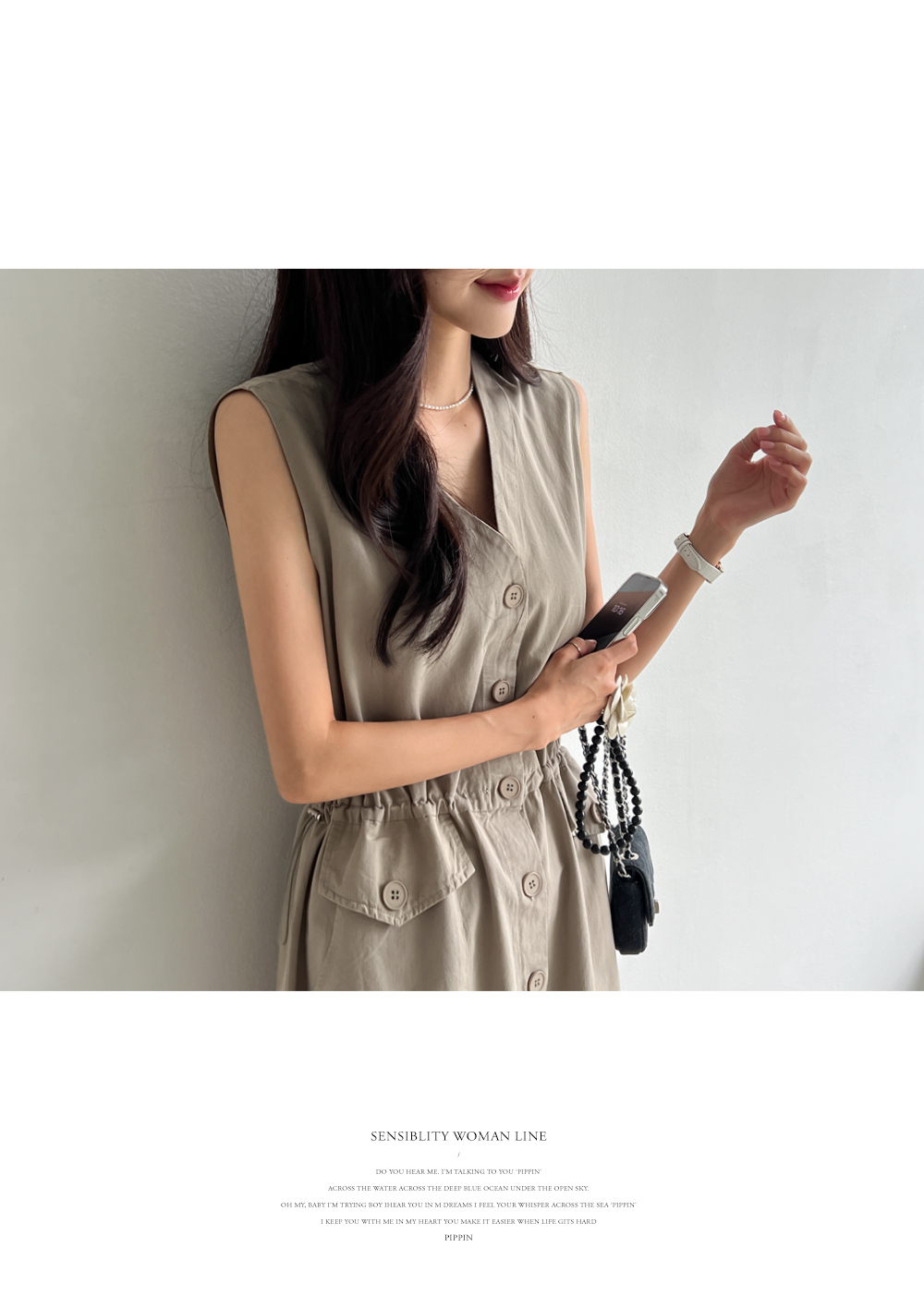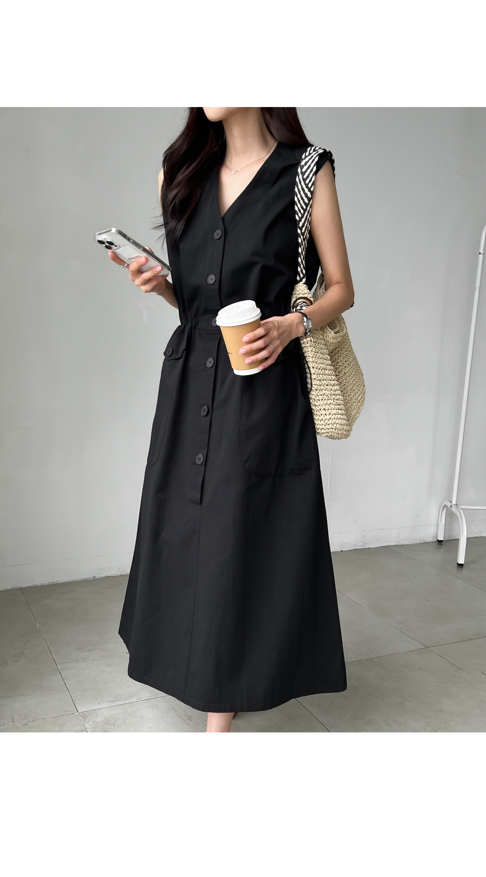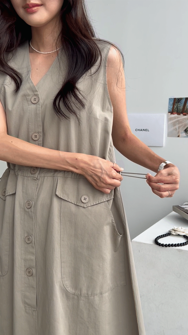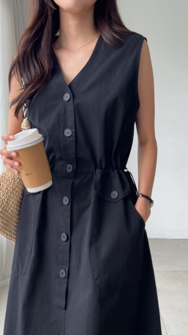 자체제작/ 허리스트링 민소매 원피스 #38564