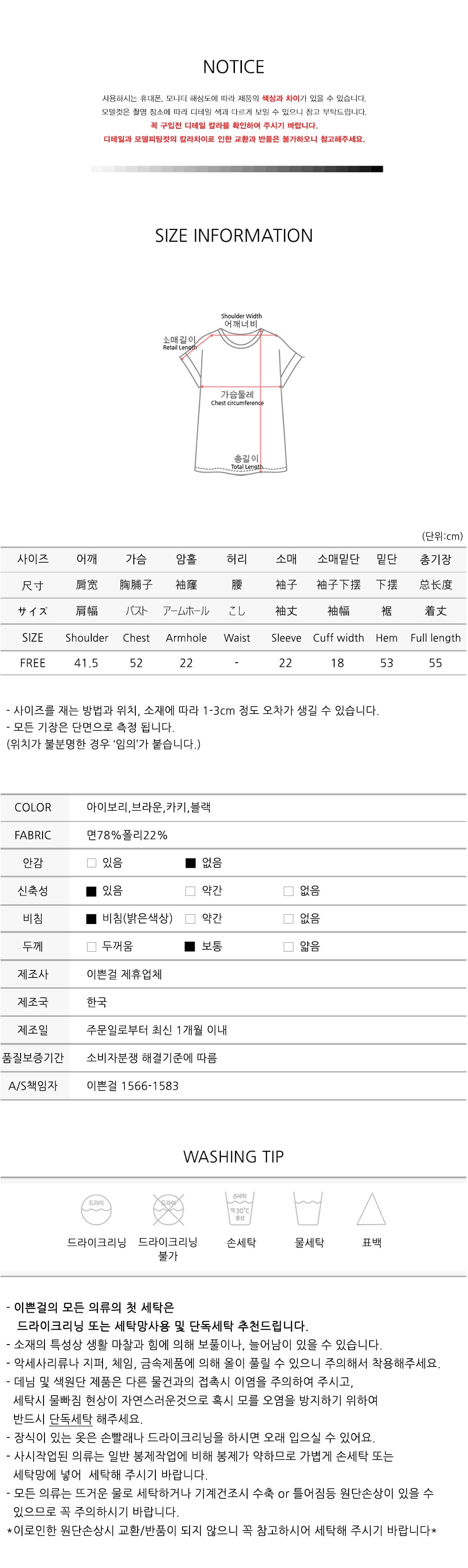 모델은 아이보리,카키 착용하였습니다