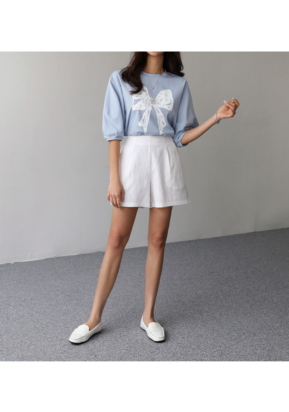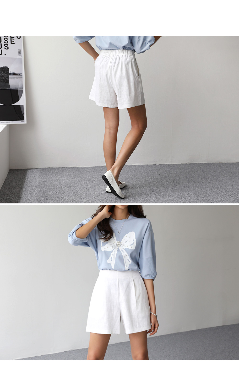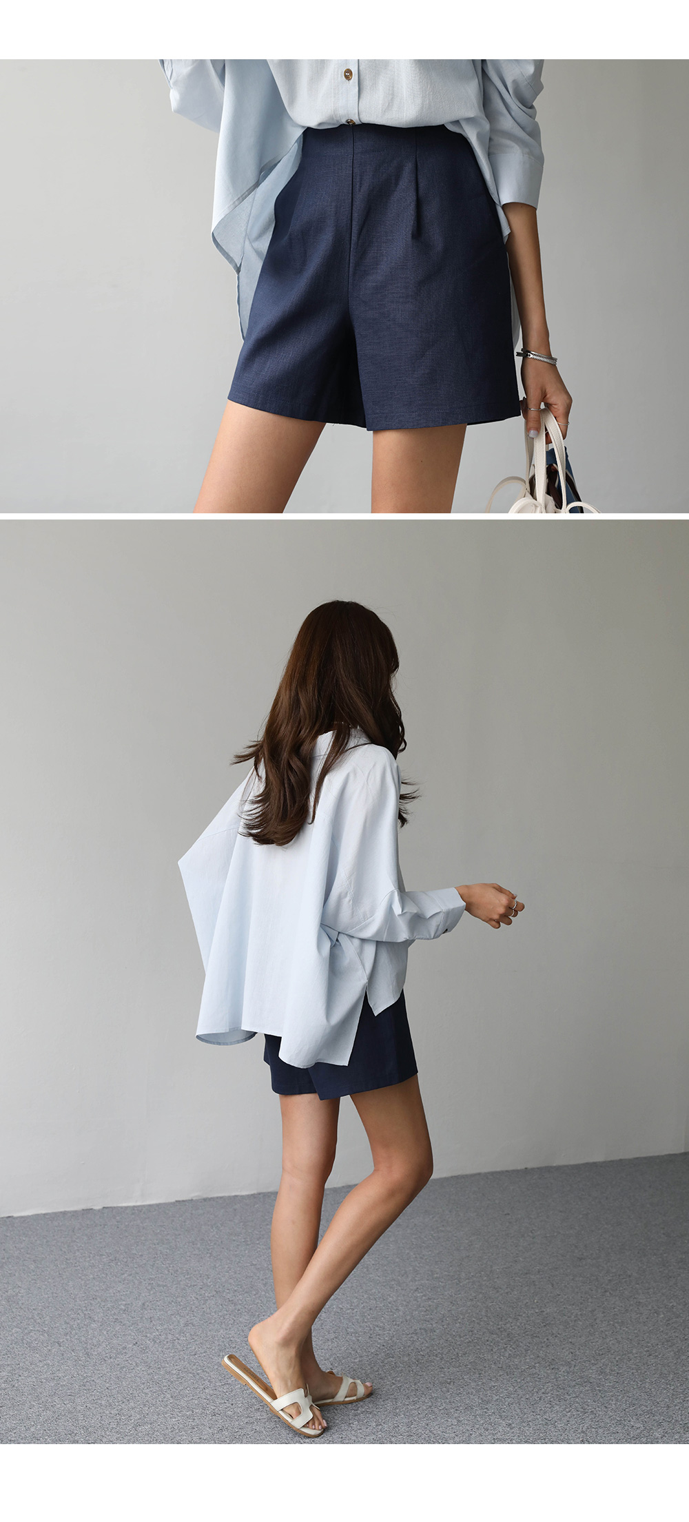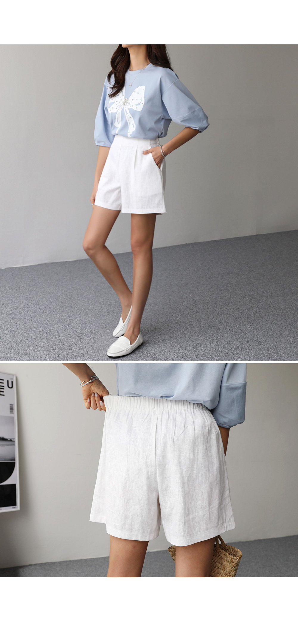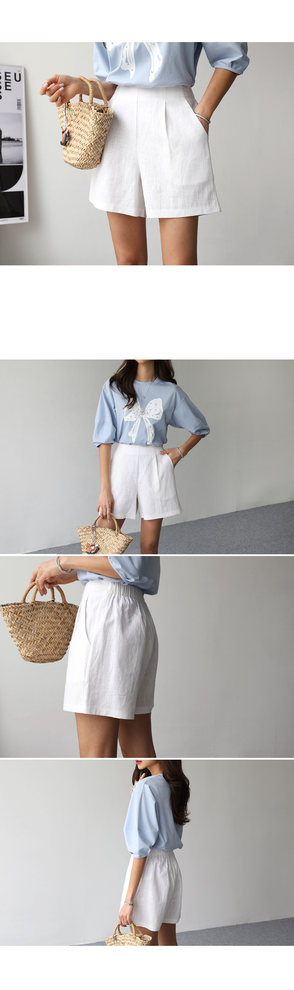 핀턱 뒷밴딩 린넨 숏팬츠 #710078