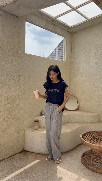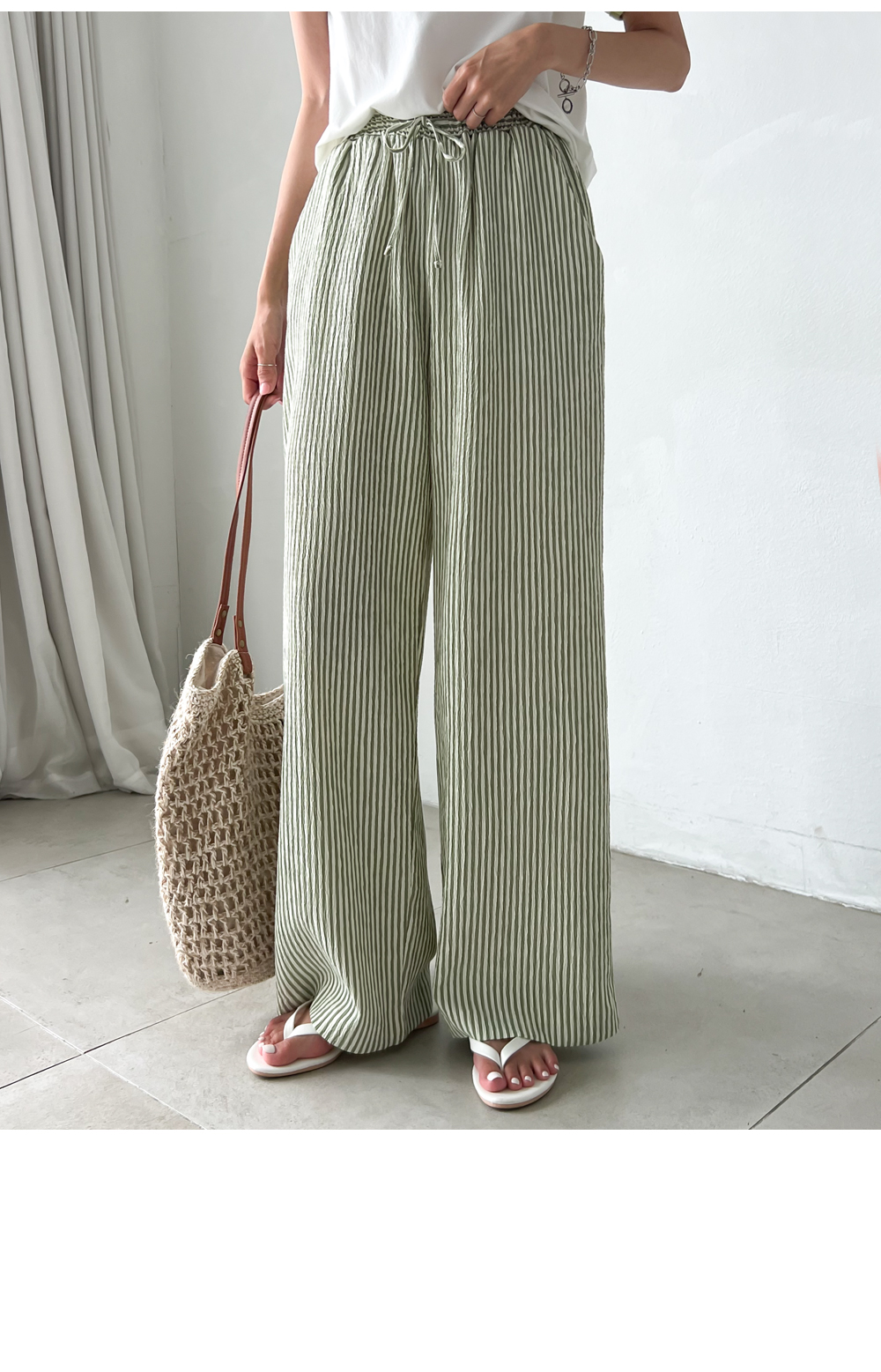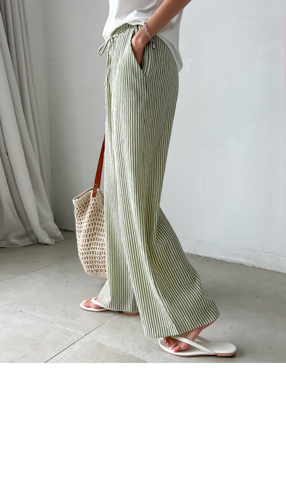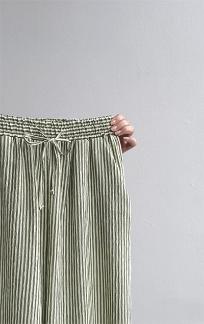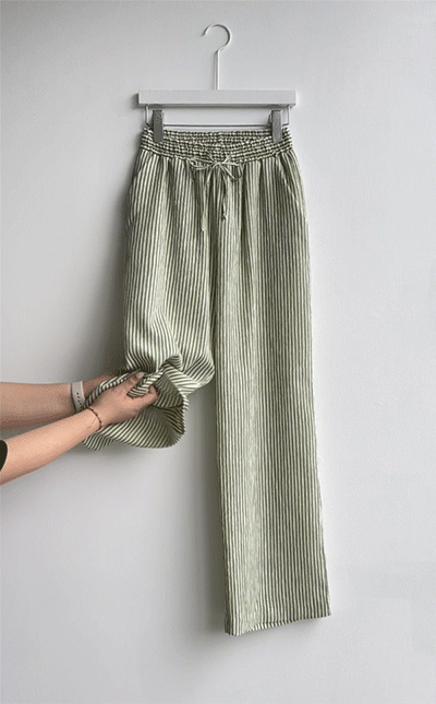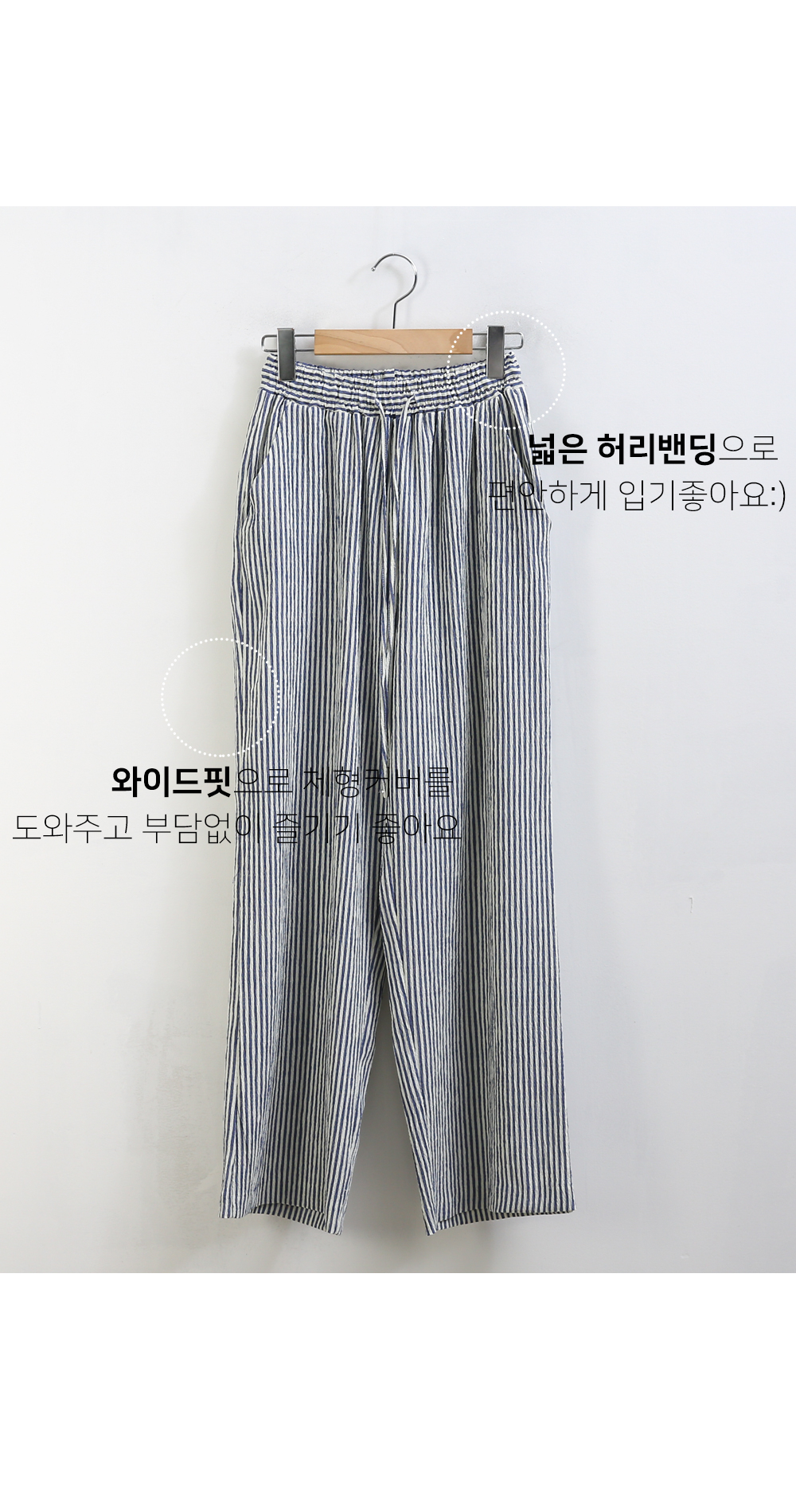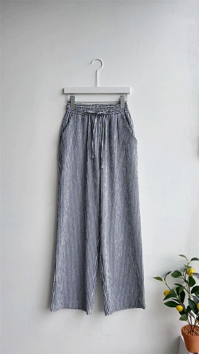 링클프리 스트라이프 와이드 밴딩팬츠 #710077