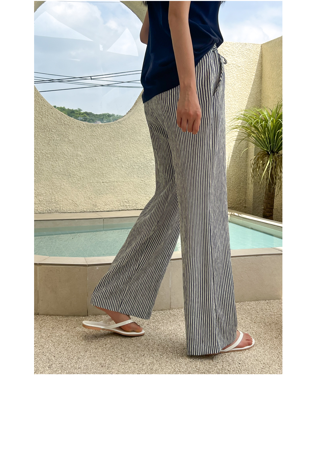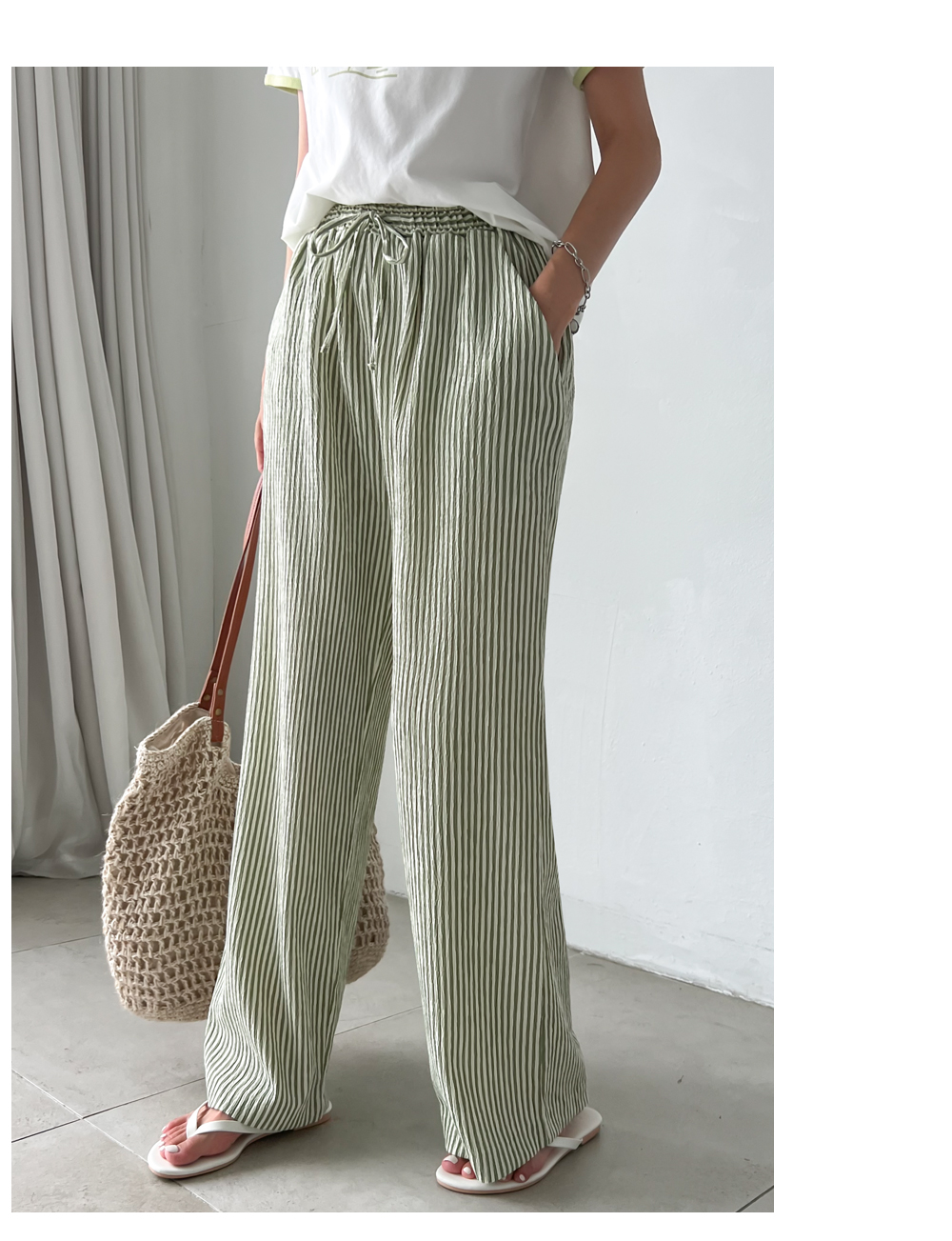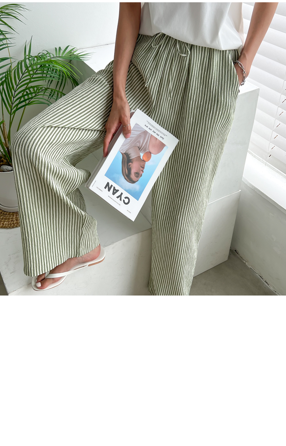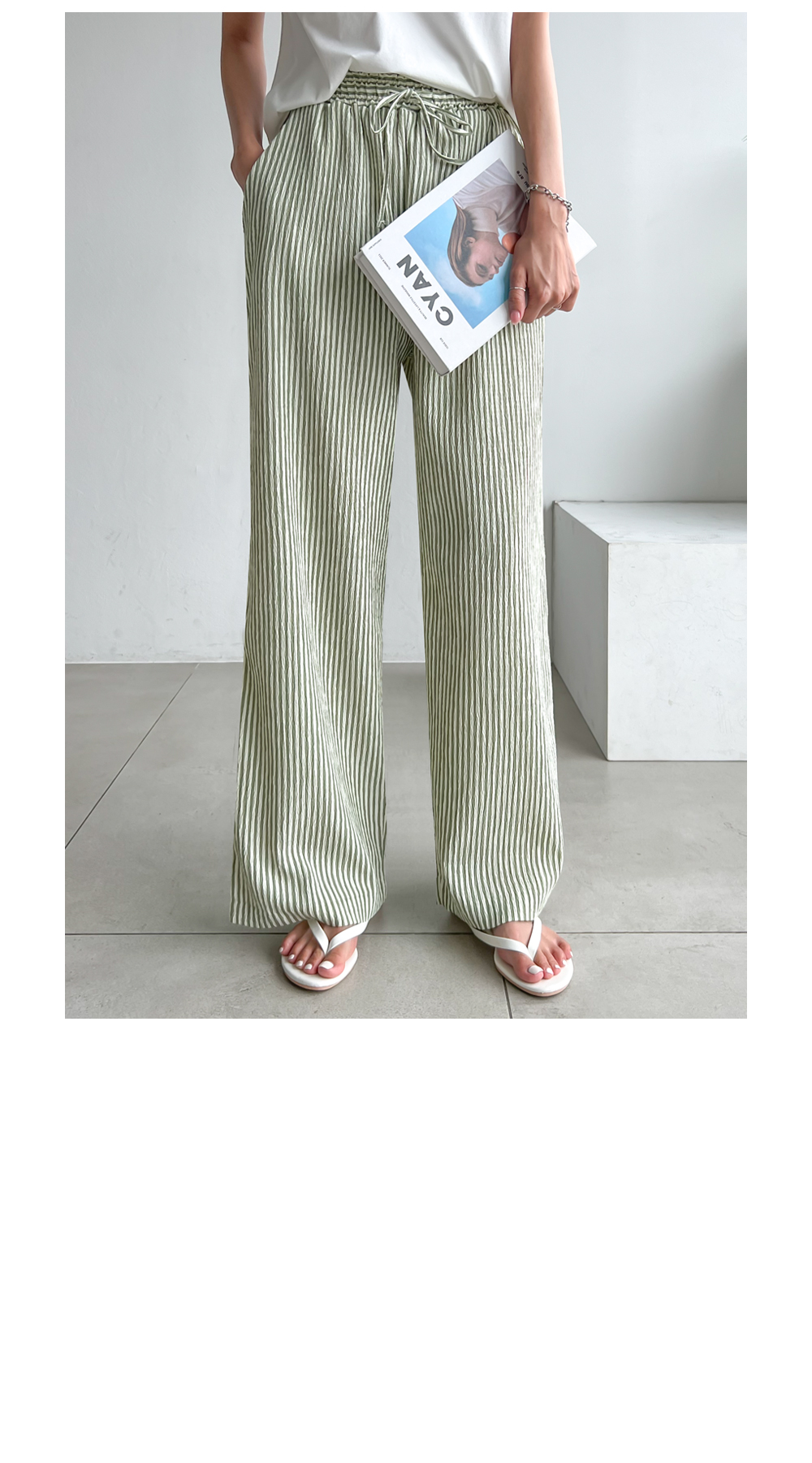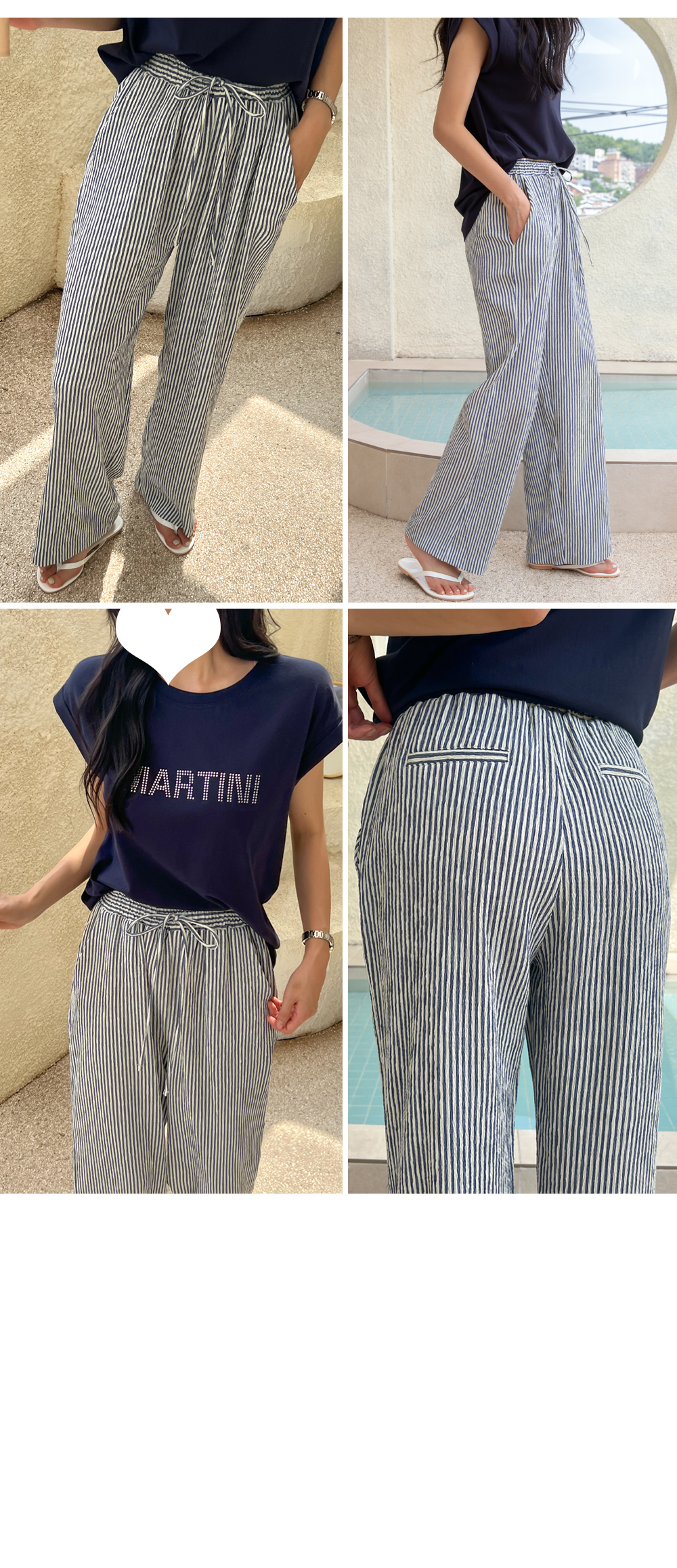 링클프리 스트라이프 와이드 밴딩팬츠 #710077