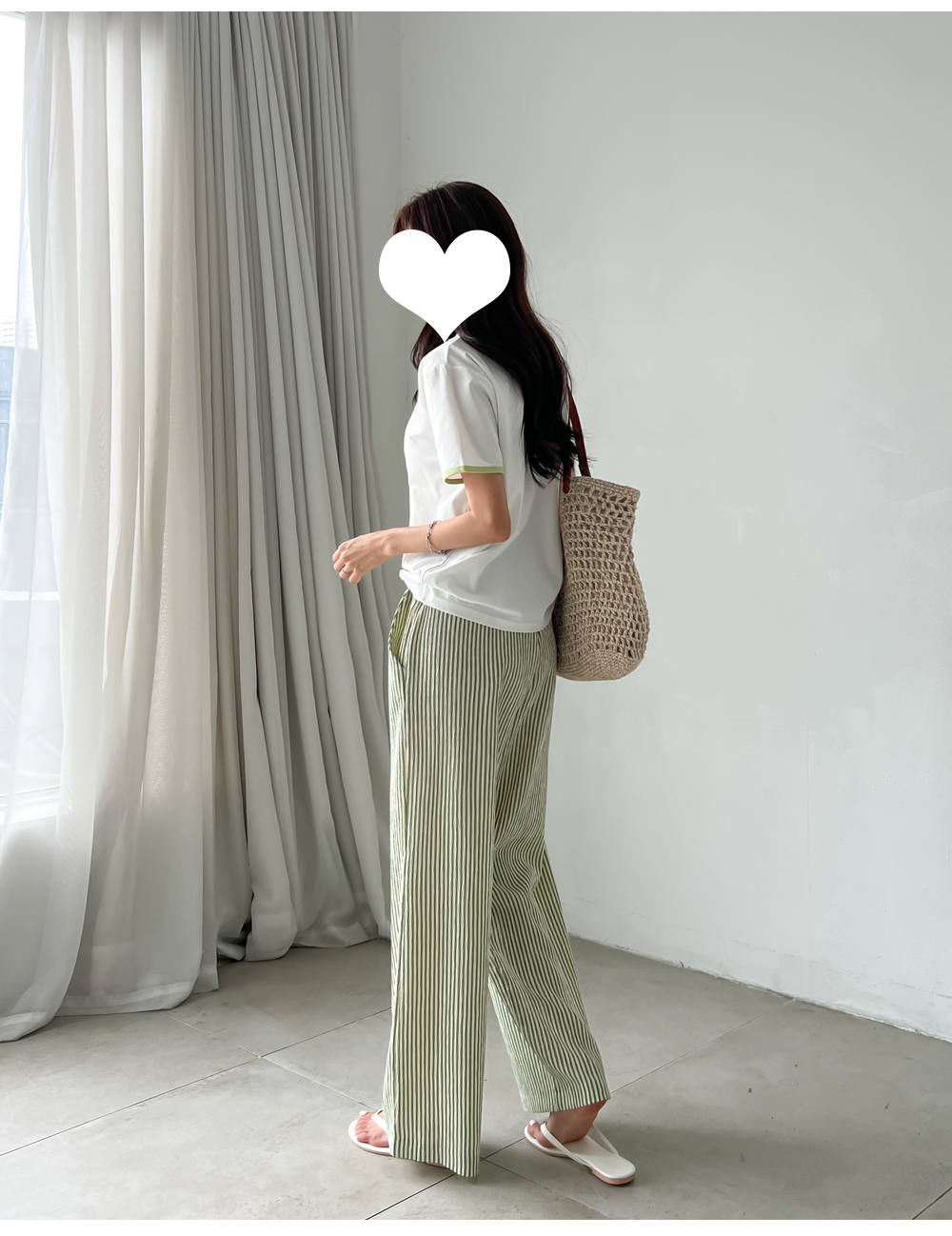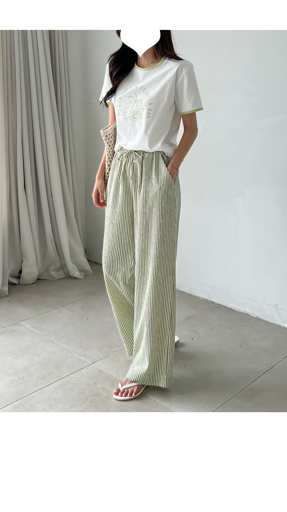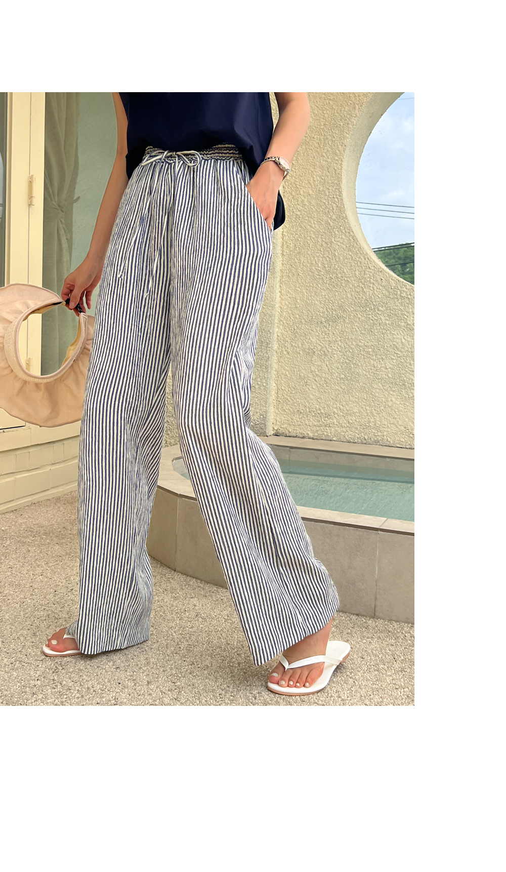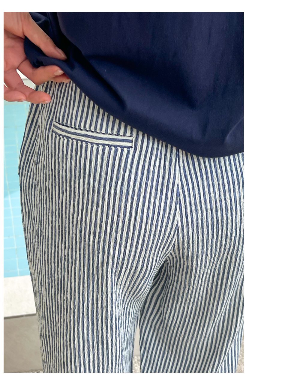 링클프리 스트라이프 와이드 밴딩팬츠 #710077