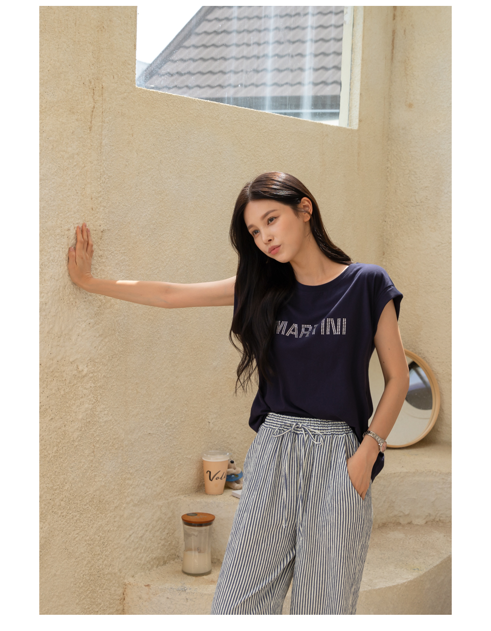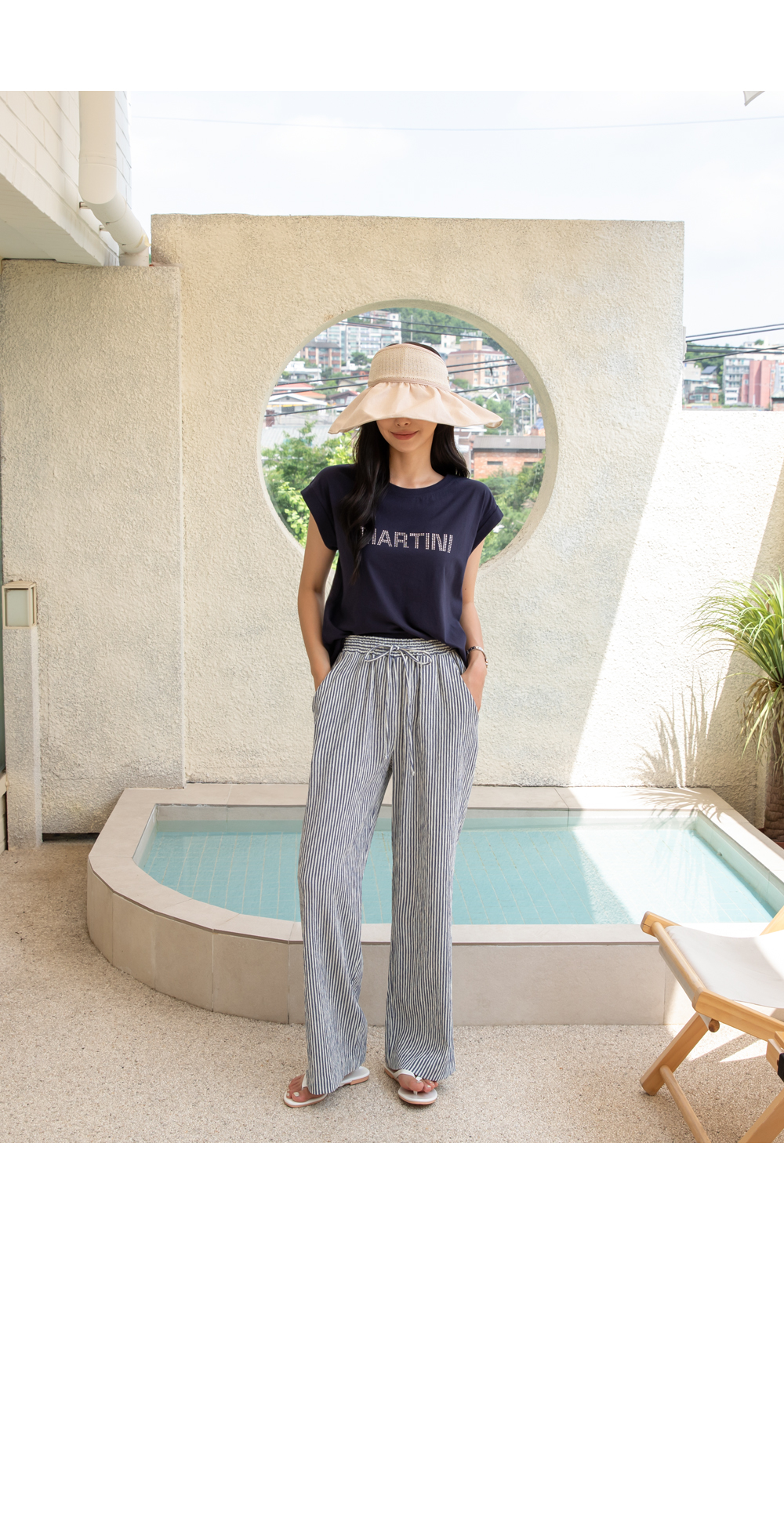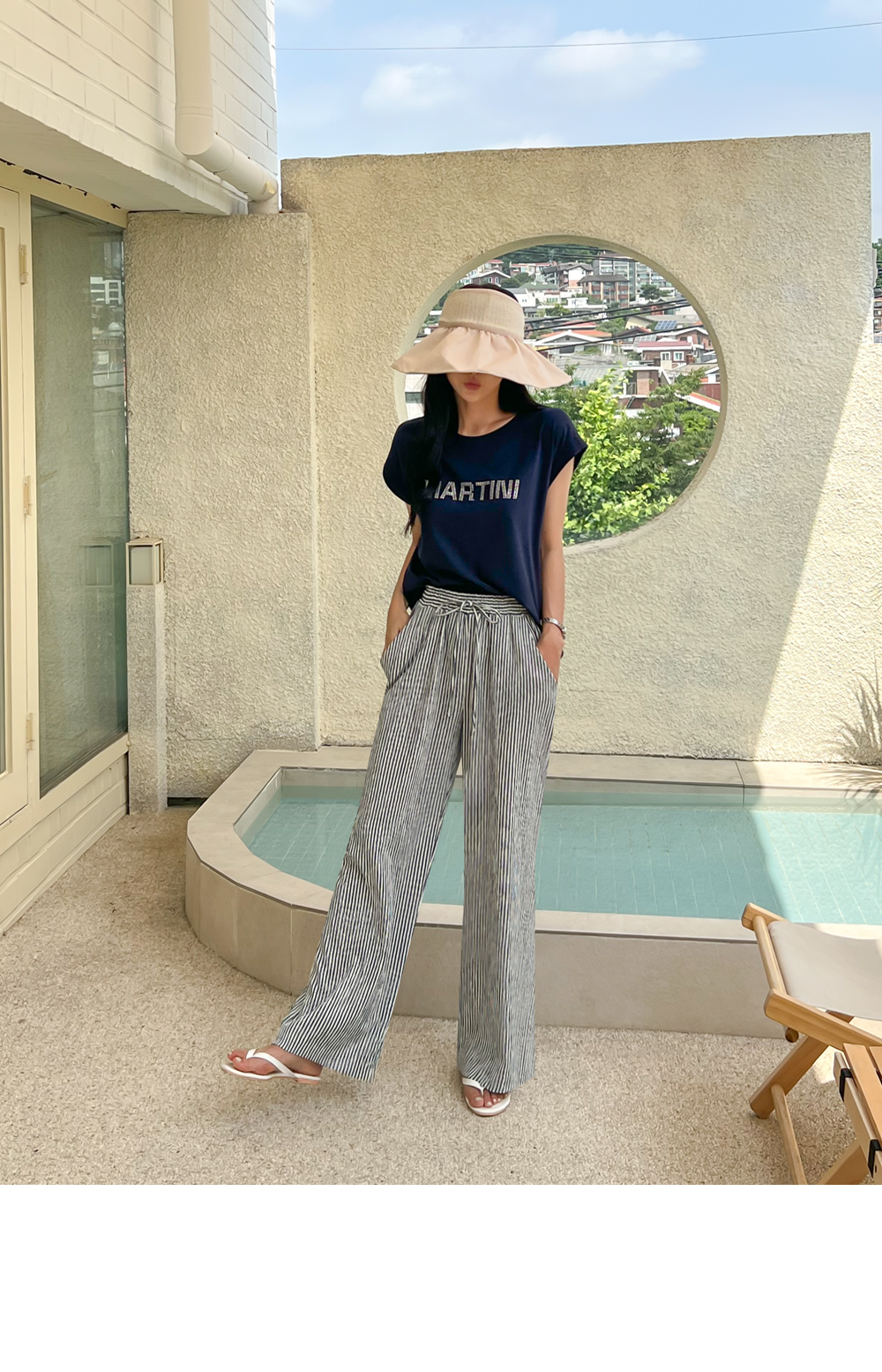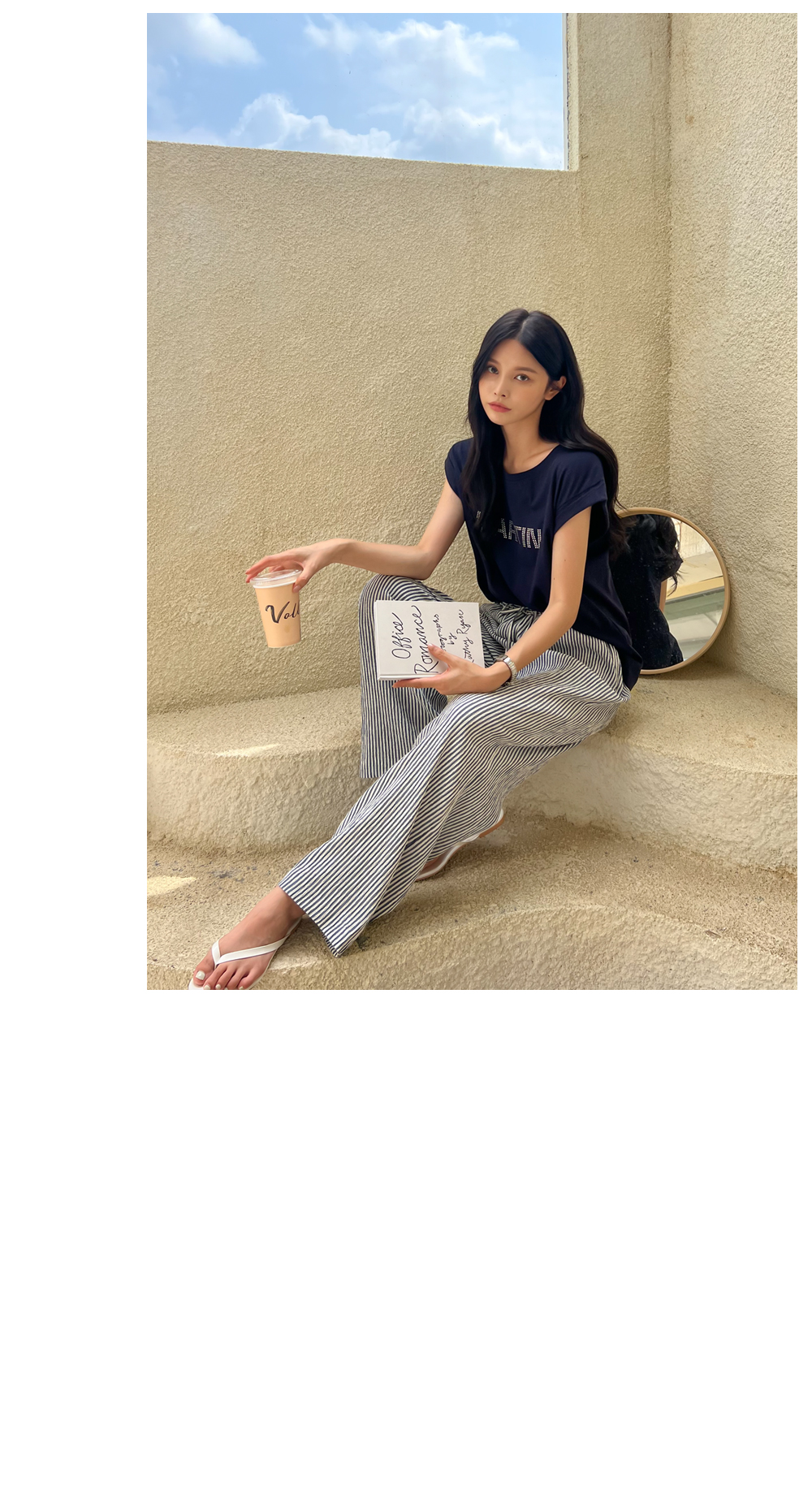 링클프리 스트라이프 와이드 밴딩팬츠 #710077