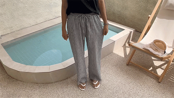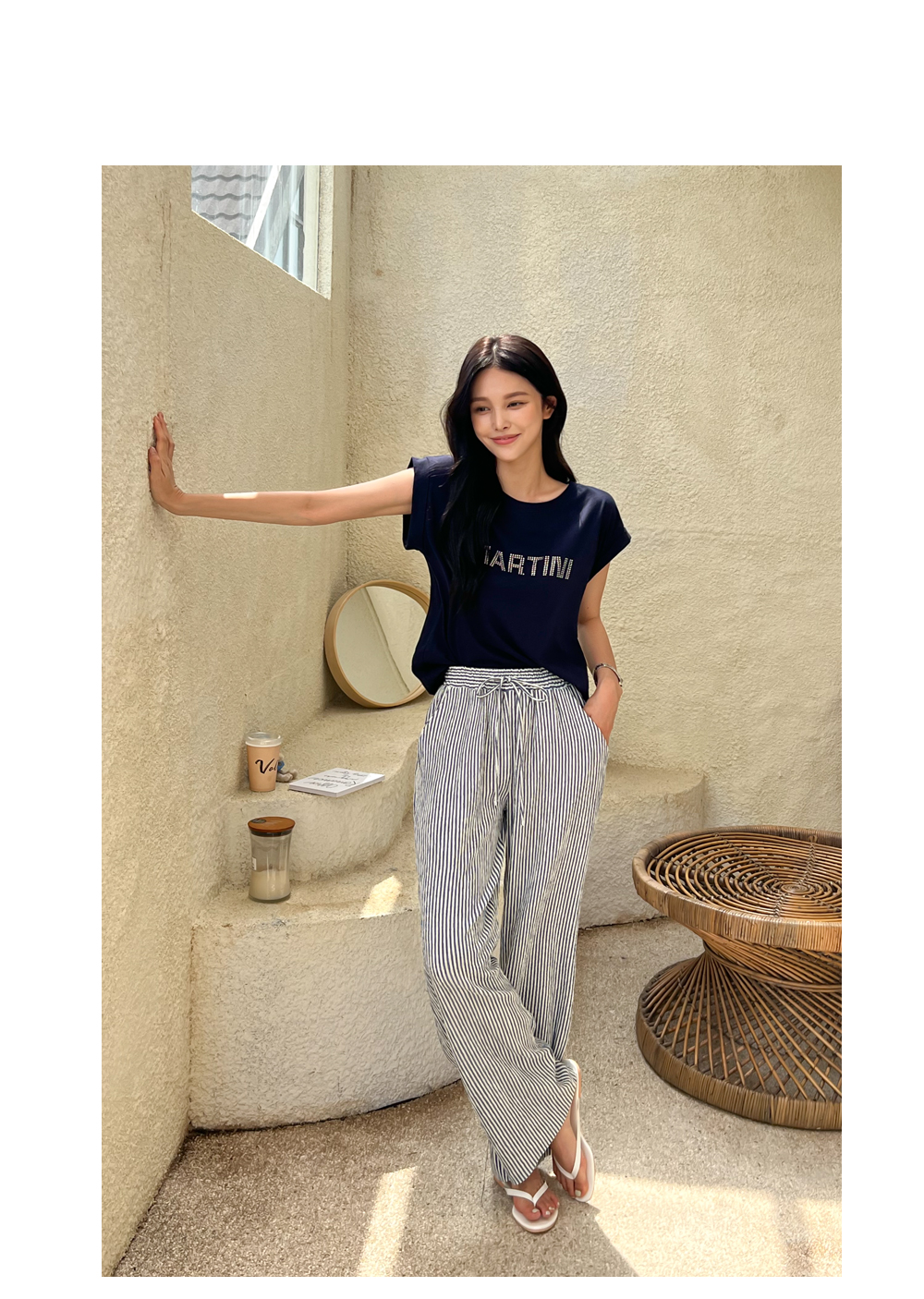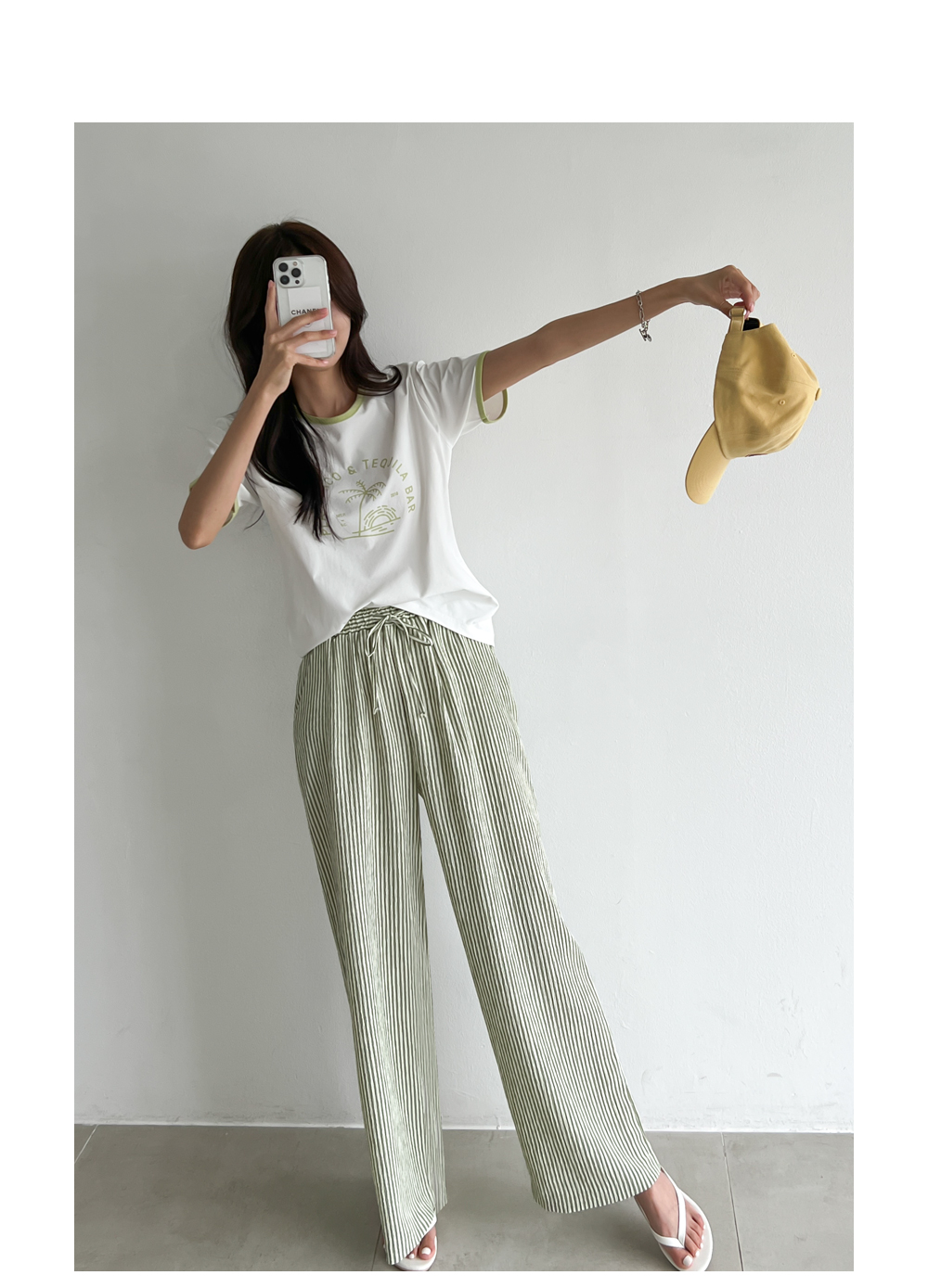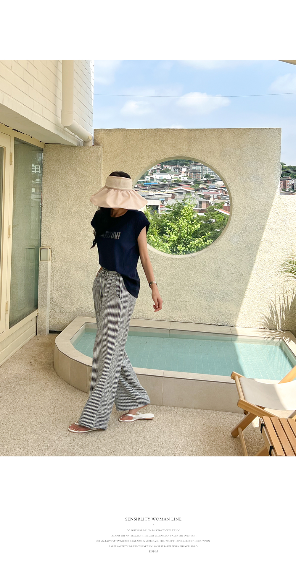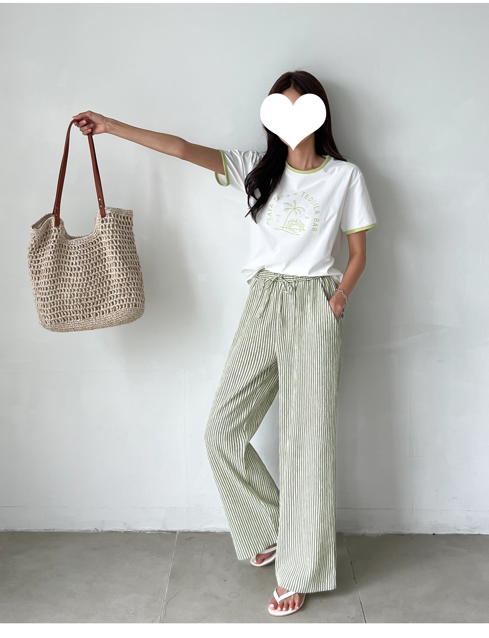 링클프리 스트라이프 와이드 밴딩팬츠 #710077