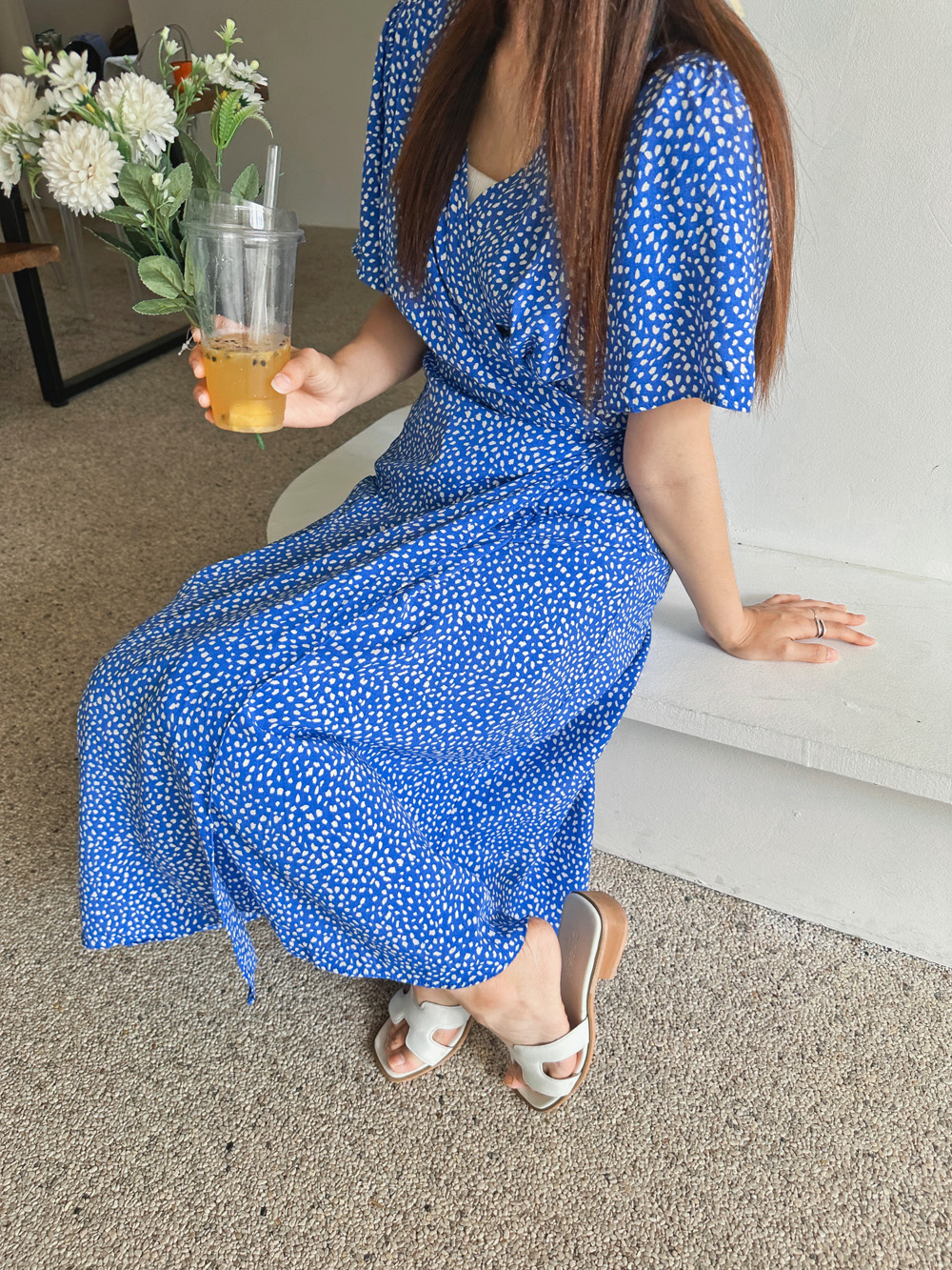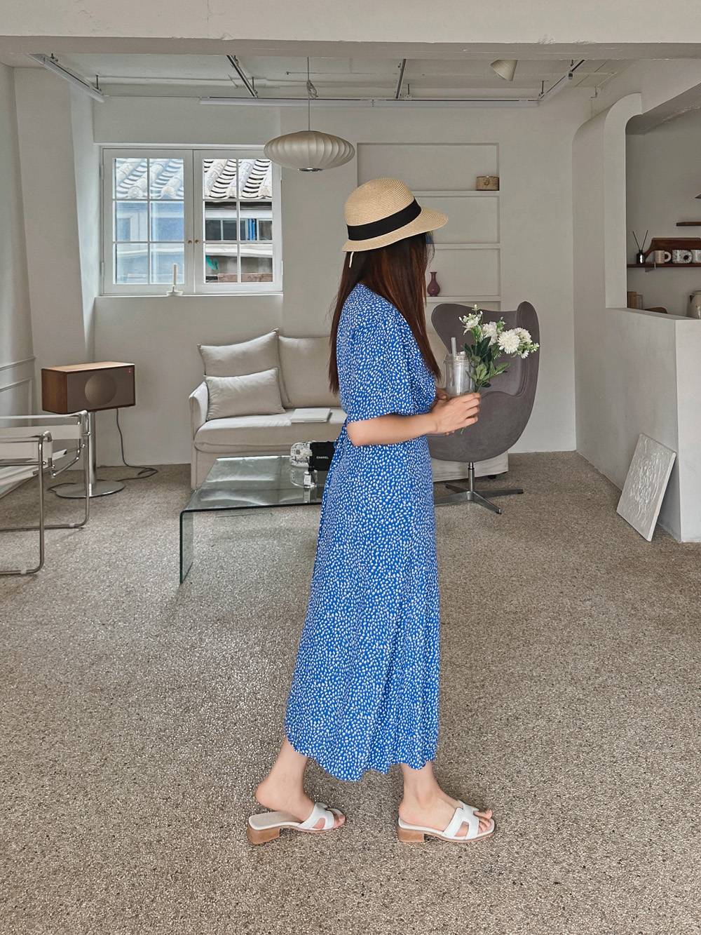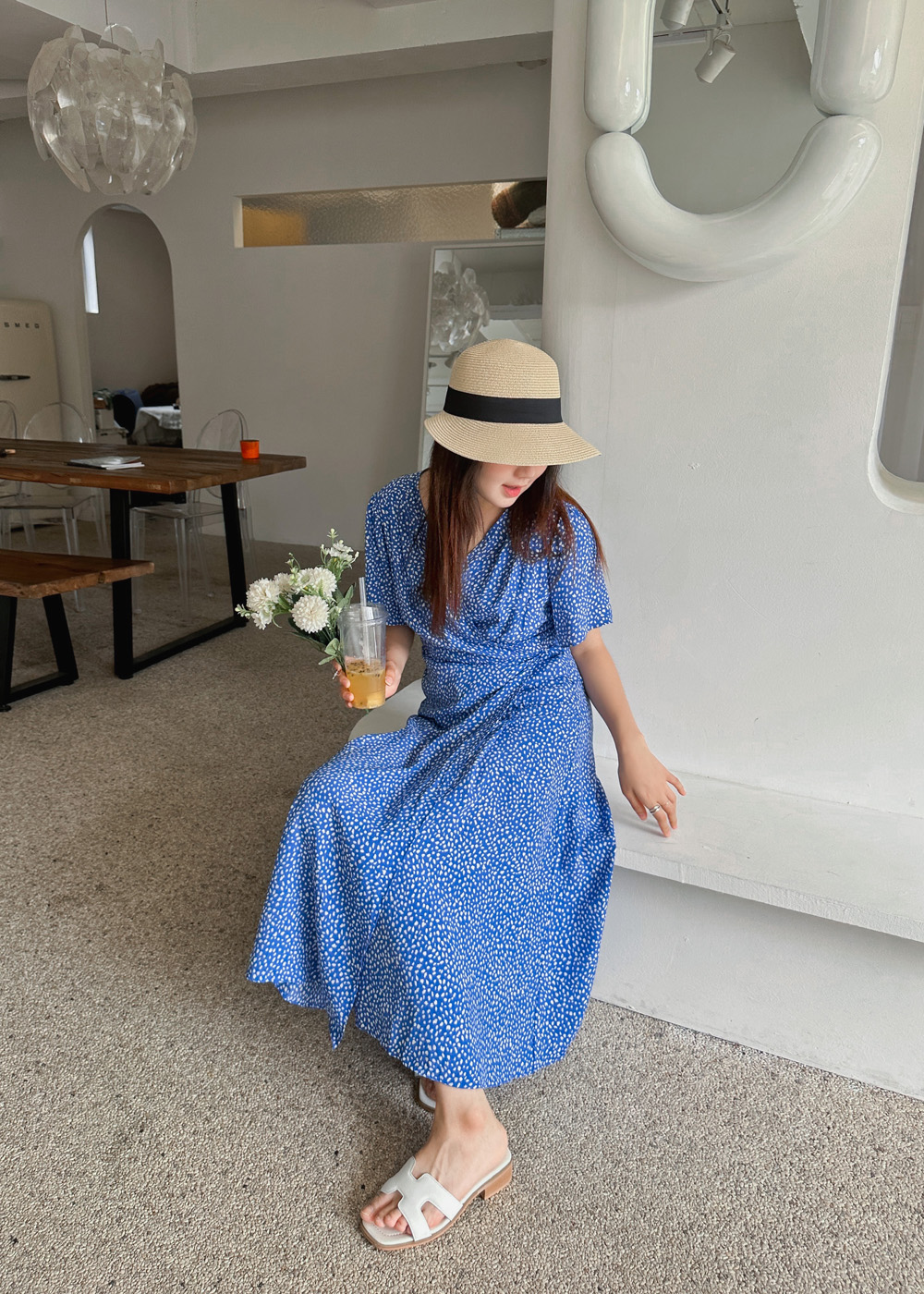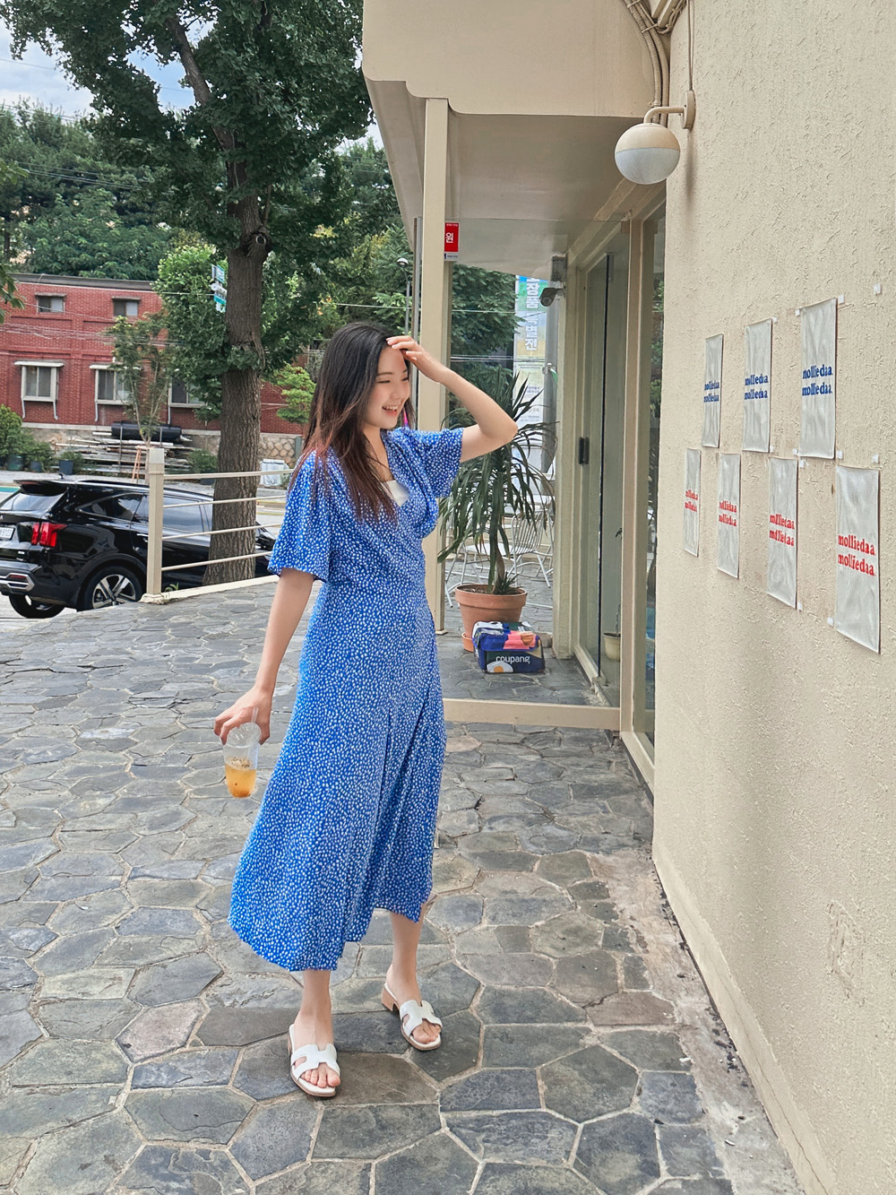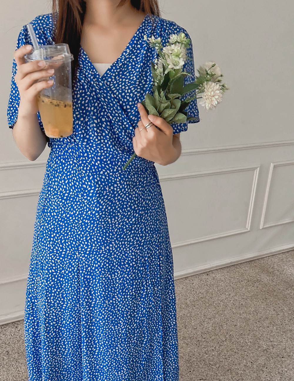 Small Flower Wrap Long Dress-2color - Style Tea Bar