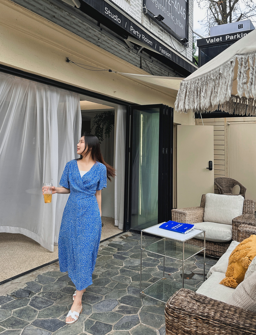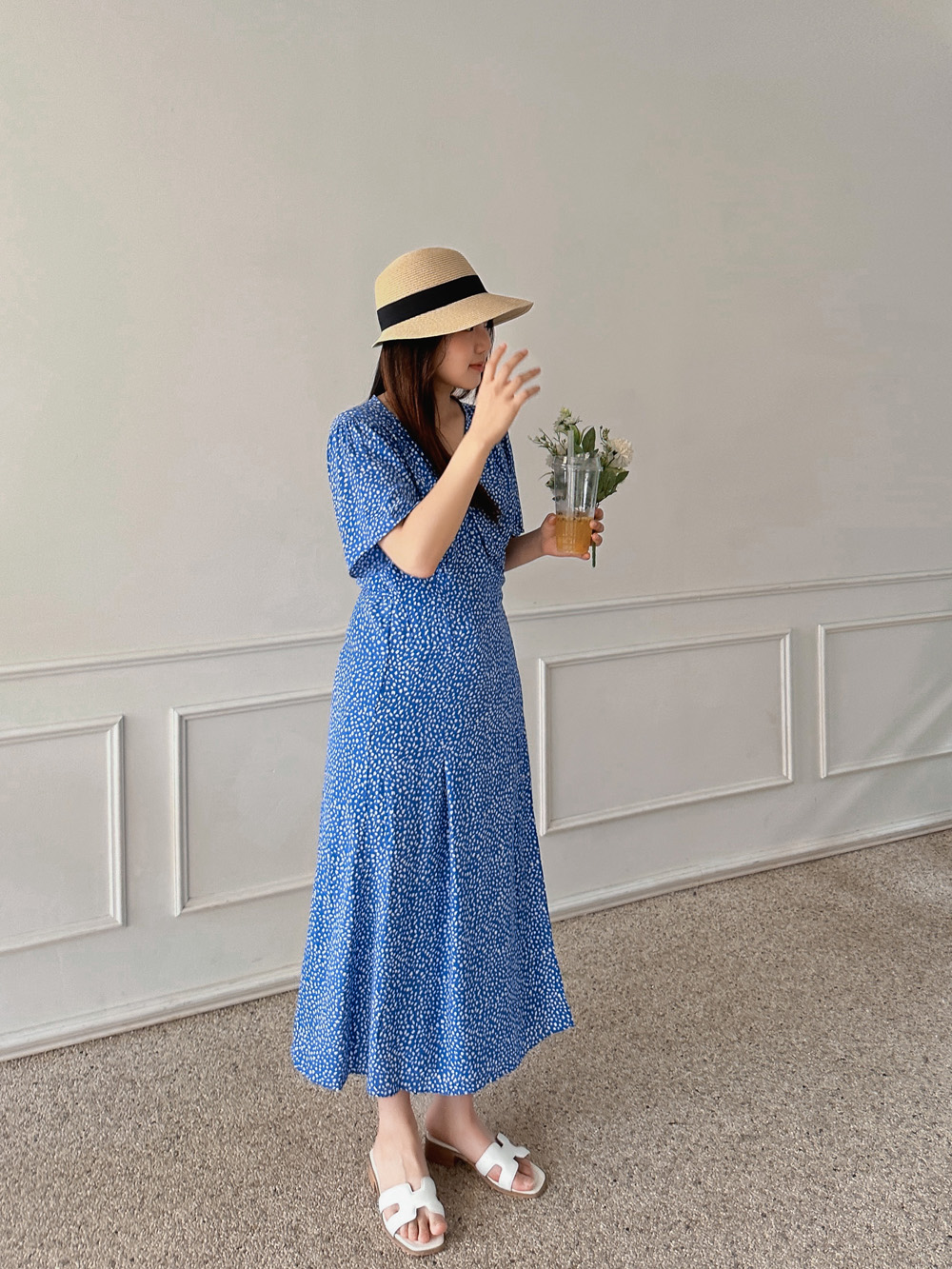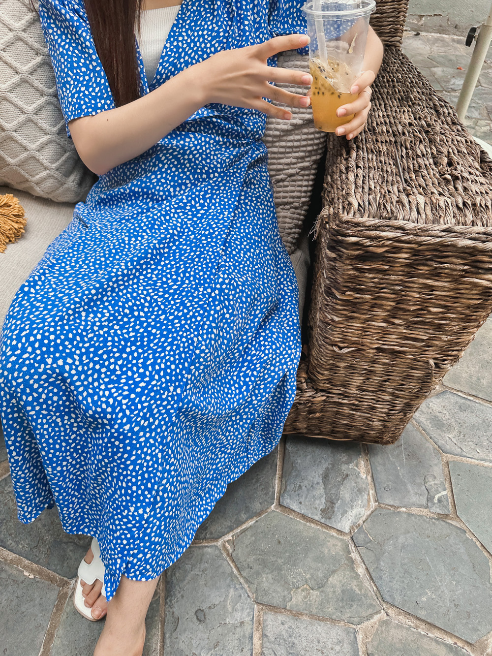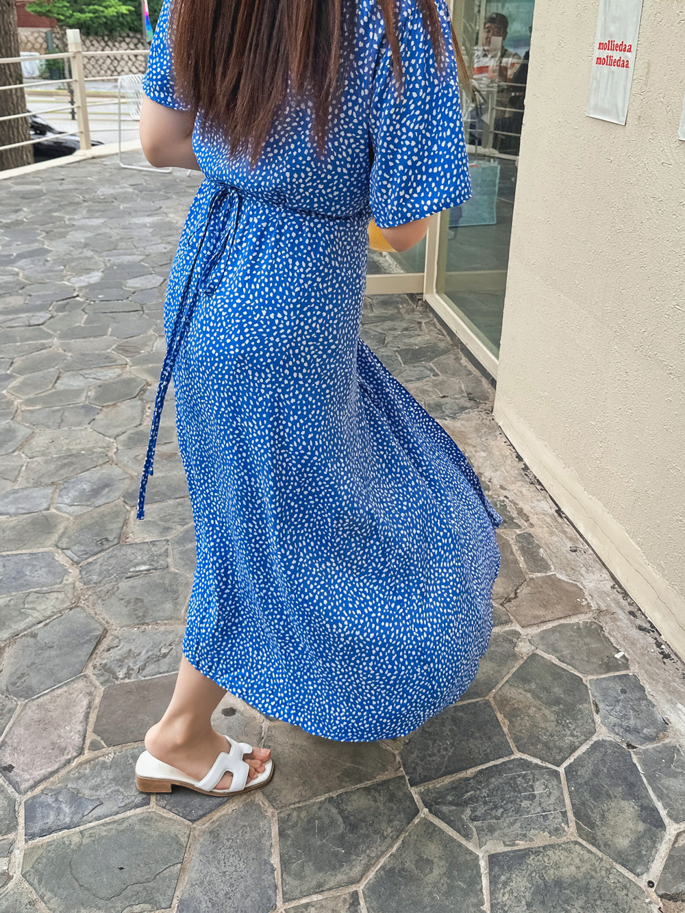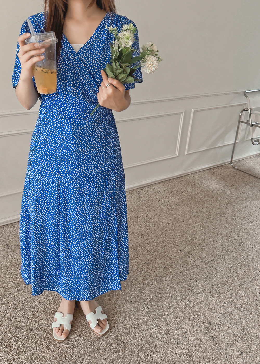 Small Flower Wrap Long Dress-2color - Style Tea Bar