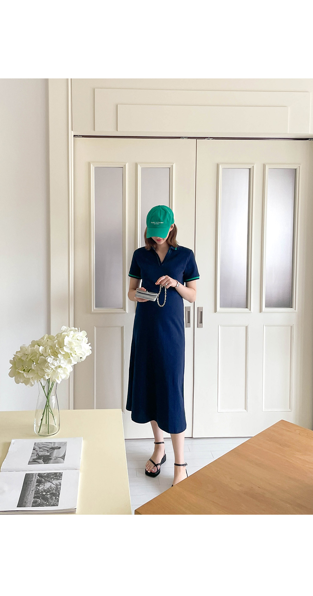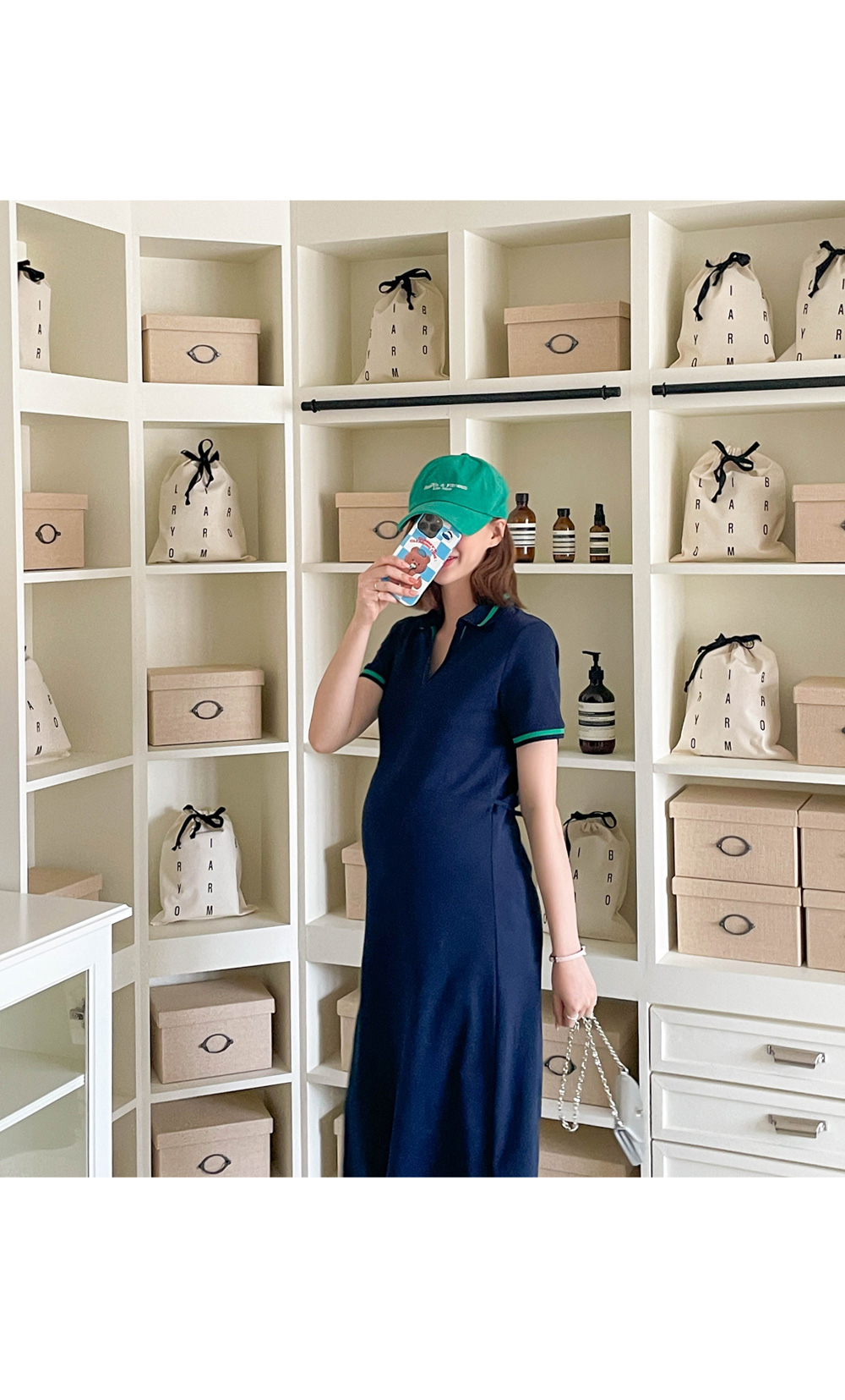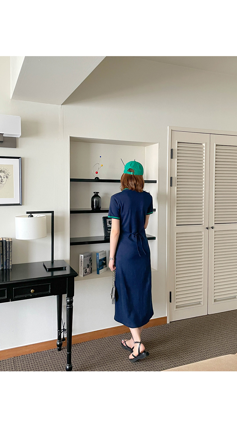 네크라인과 소매단 배색의 라인으로 포인트를 주었으며,