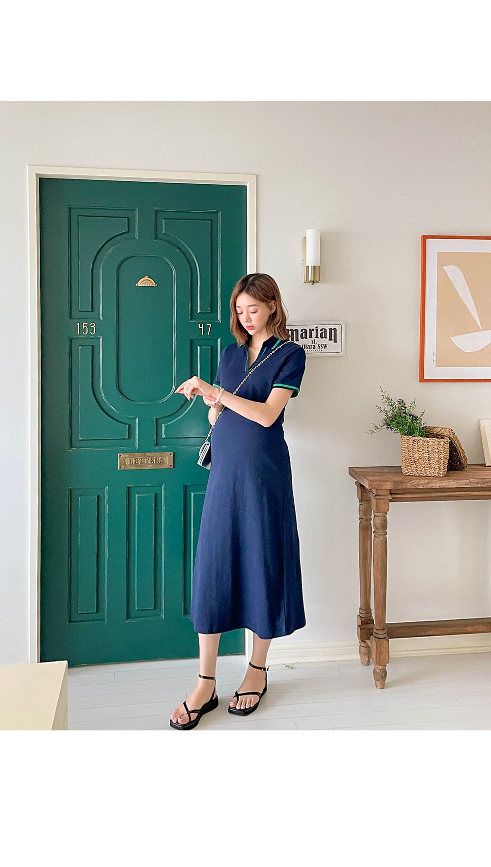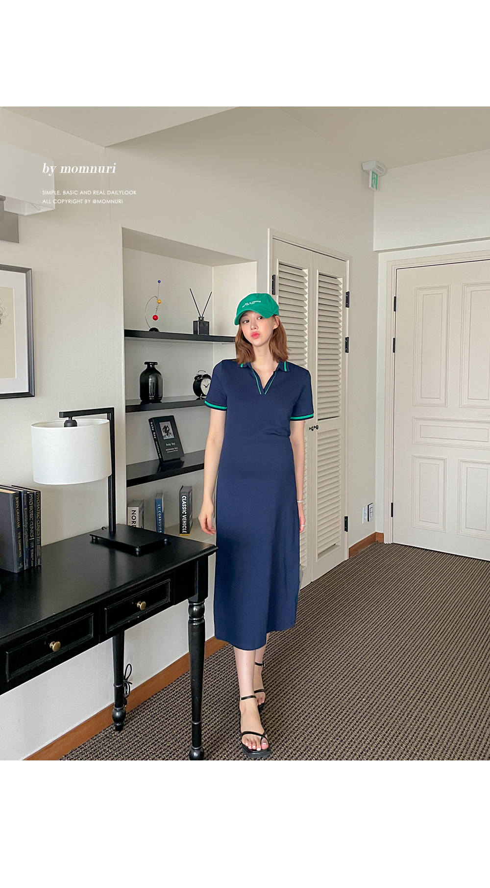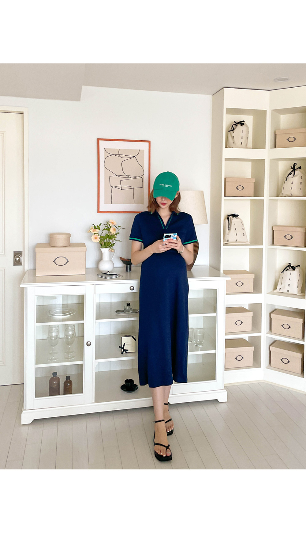 네크라인과 소매단 배색의 라인으로 포인트를 주었으며,