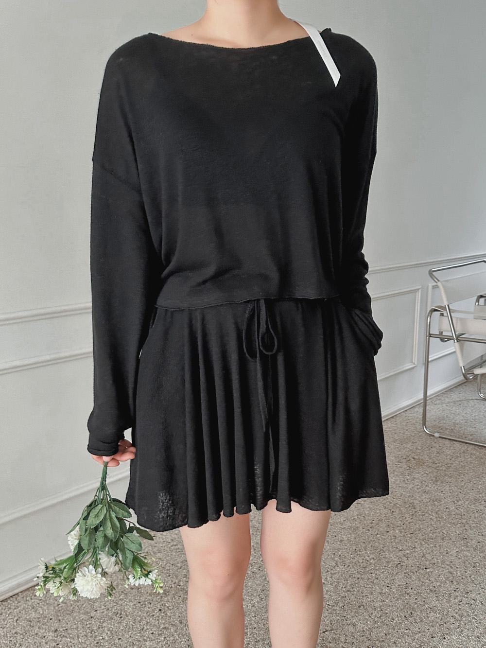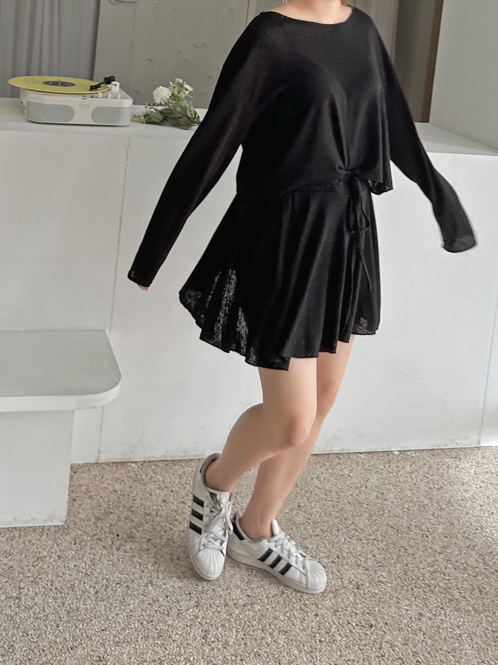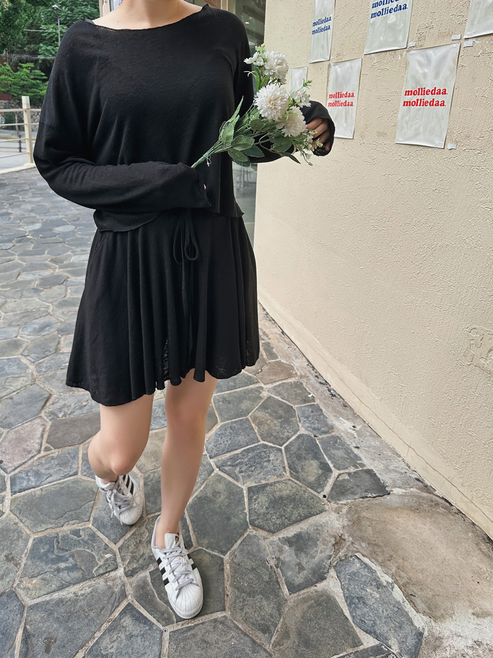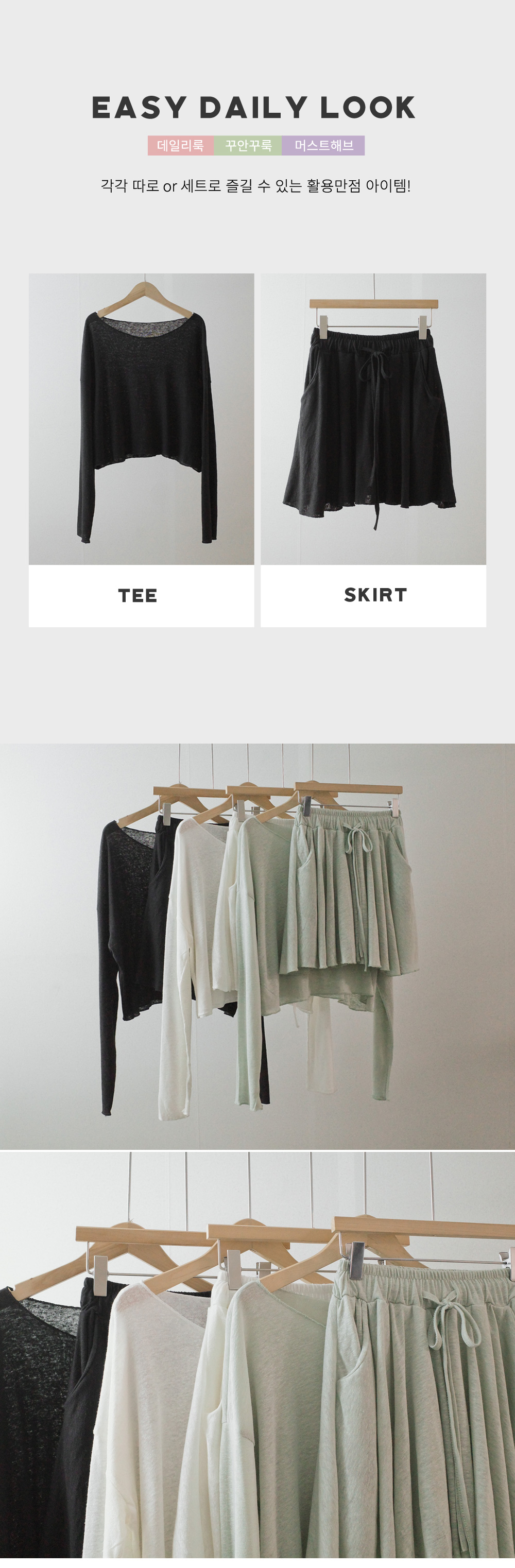 린넨 플레어 미니스커트세트-3color - 스타일티바