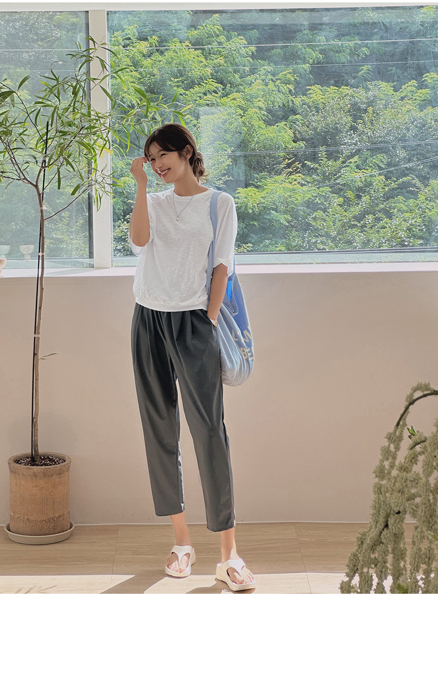 밑단은 같은 원단으로 안정감있게 핏감 딱! 잡아주어