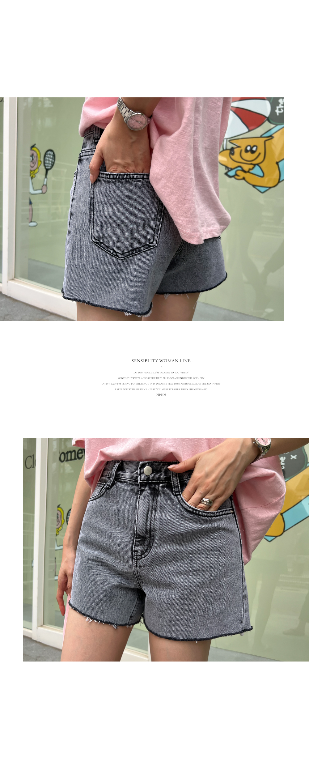 난스판 흑청 숏 데님 팬츠 #710083