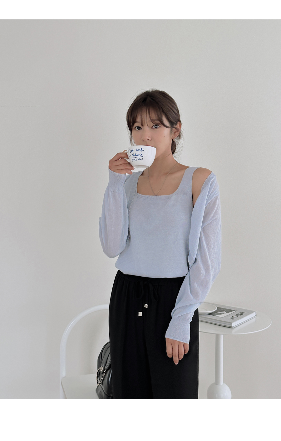 나시는 쇄골라인 여릿하게 드러나는 스퀘어 넥으로