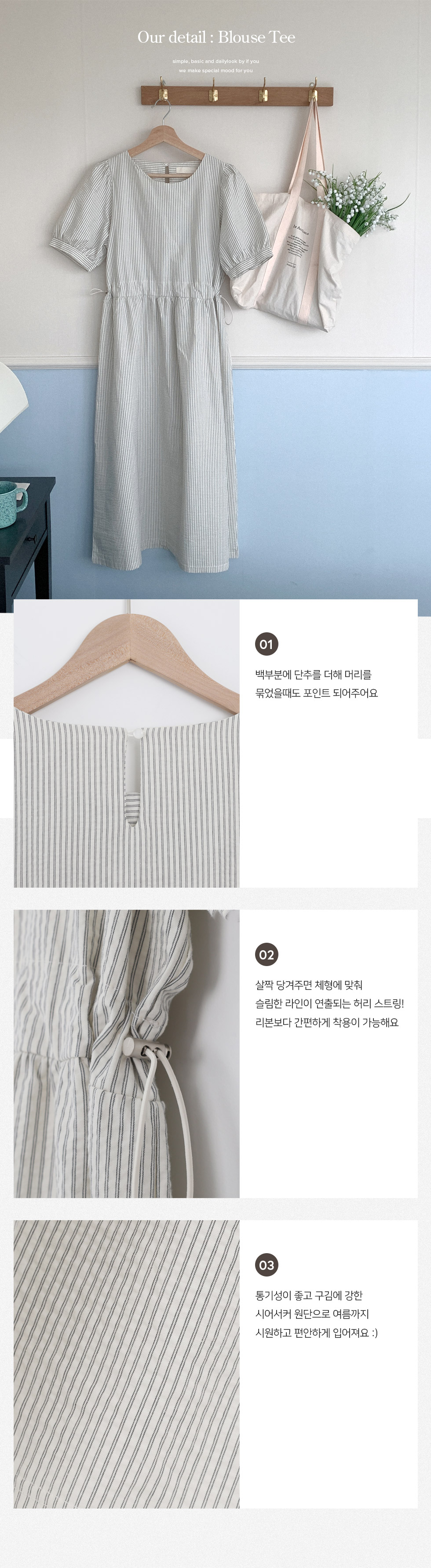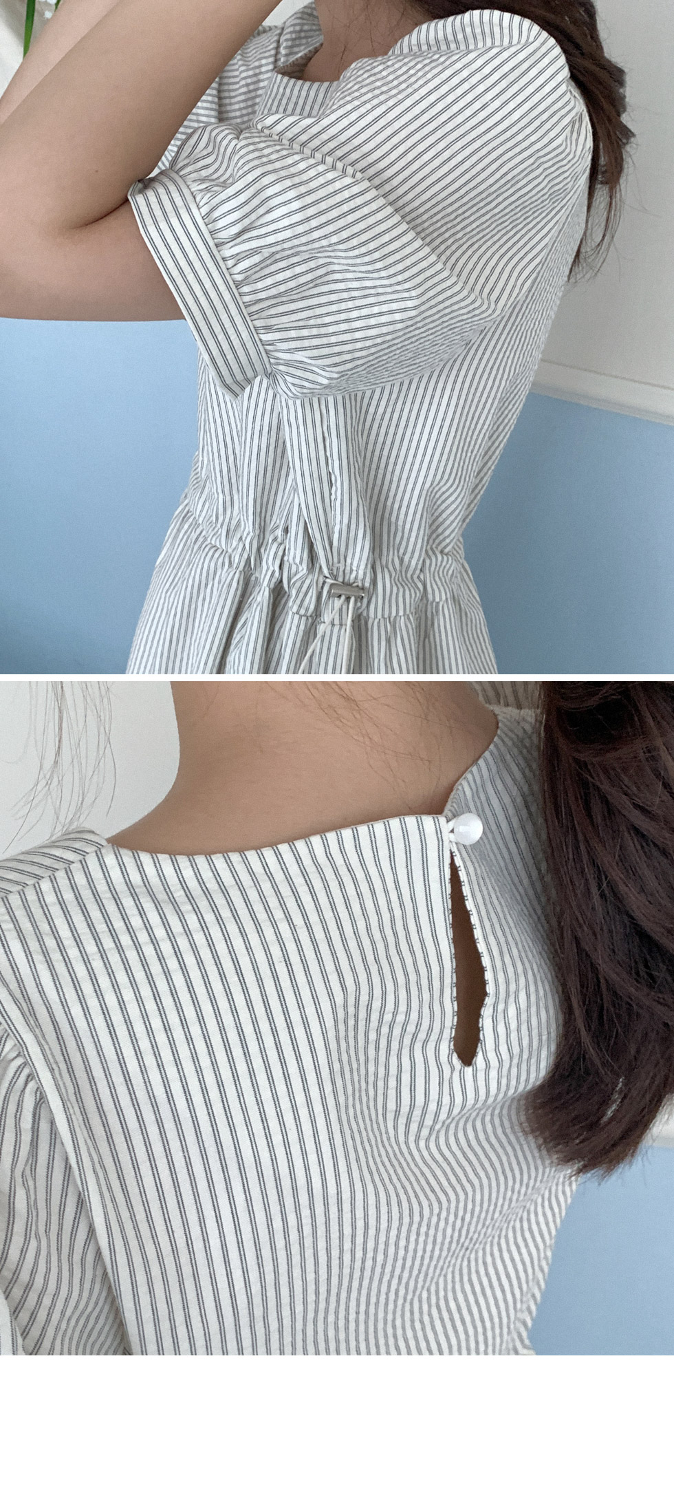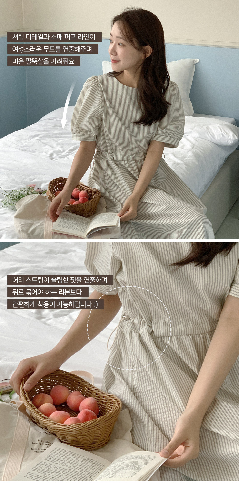 어깨라인에 셔링 디테일과 소매 퍼프 라인이