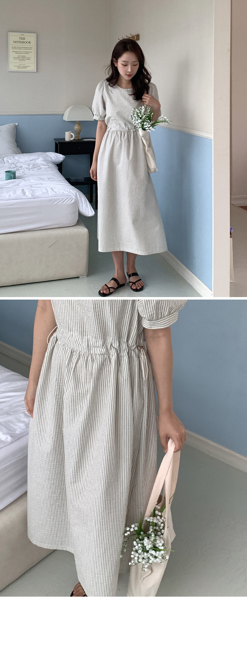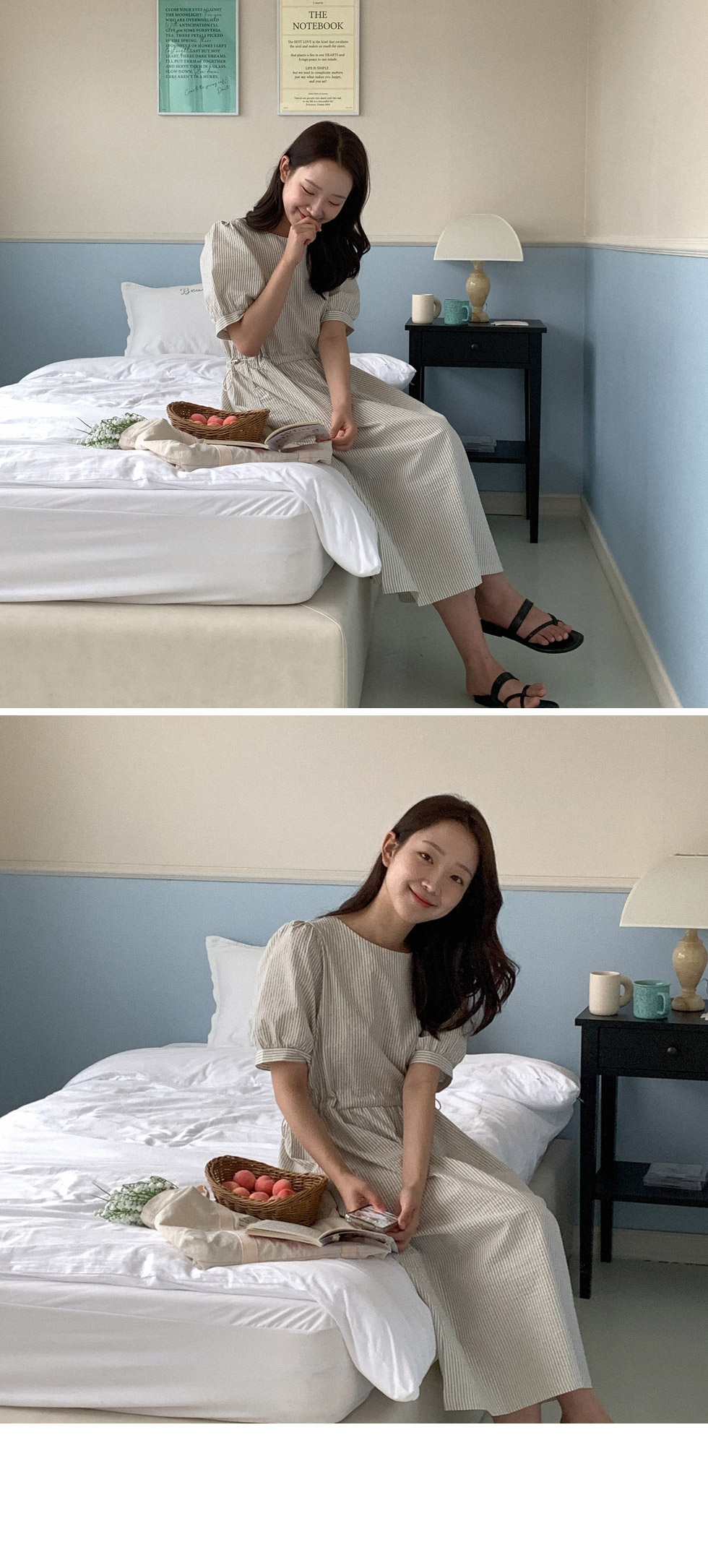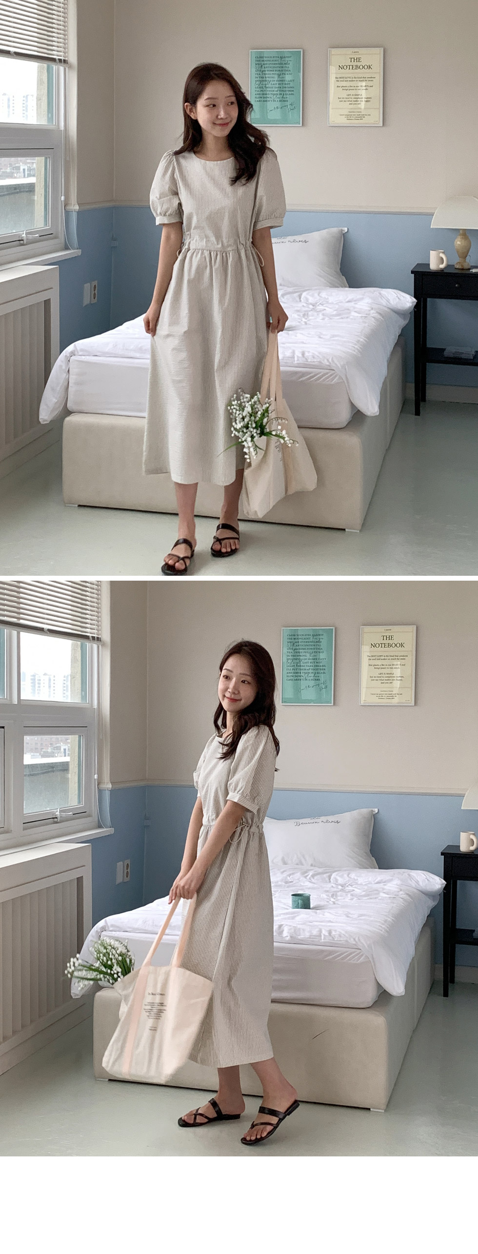 어깨라인에 셔링 디테일과 소매 퍼프 라인이
